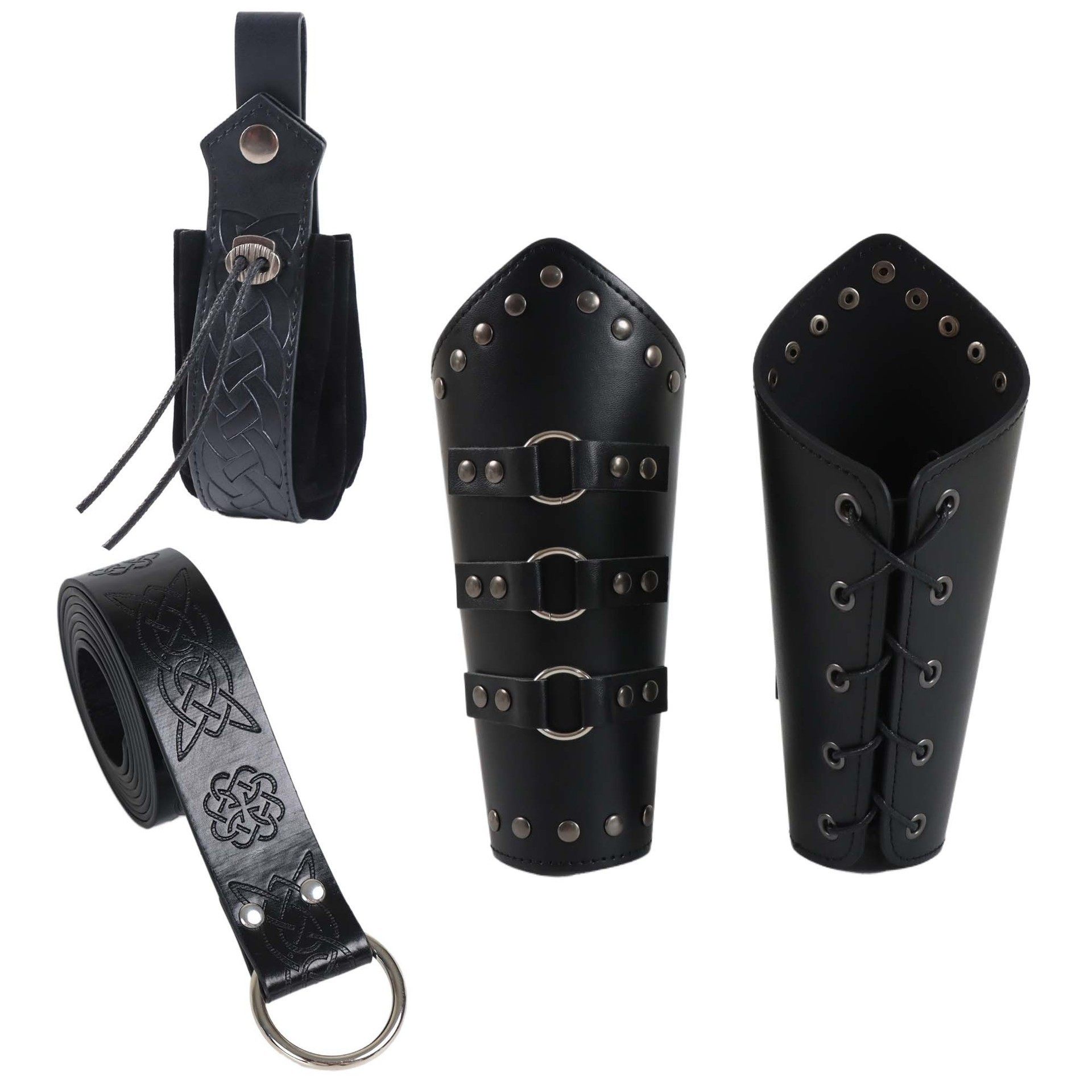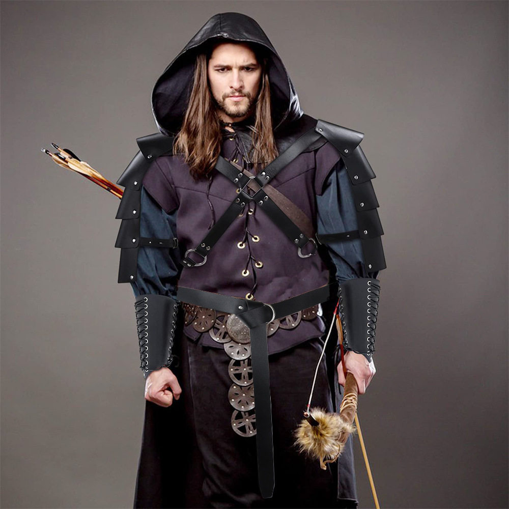 Halloween Costume Accessories Set: Shoulder Armor, Wrist Guards, Arm Guards, Waist Bag, Belt, Mask, Vintage Knight Carnival Cosplay