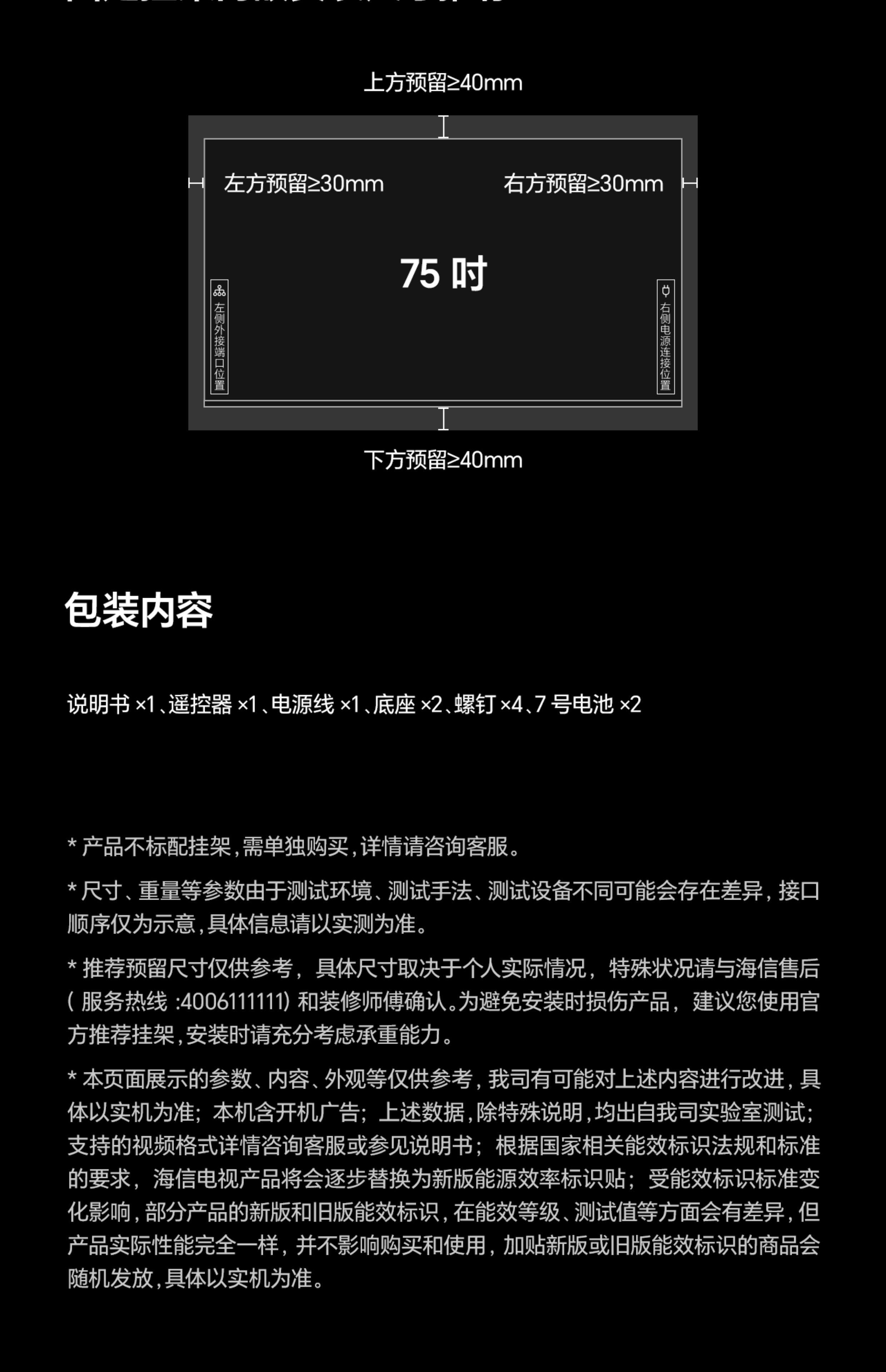 Screen size 75 inches,65 inches,55 inches