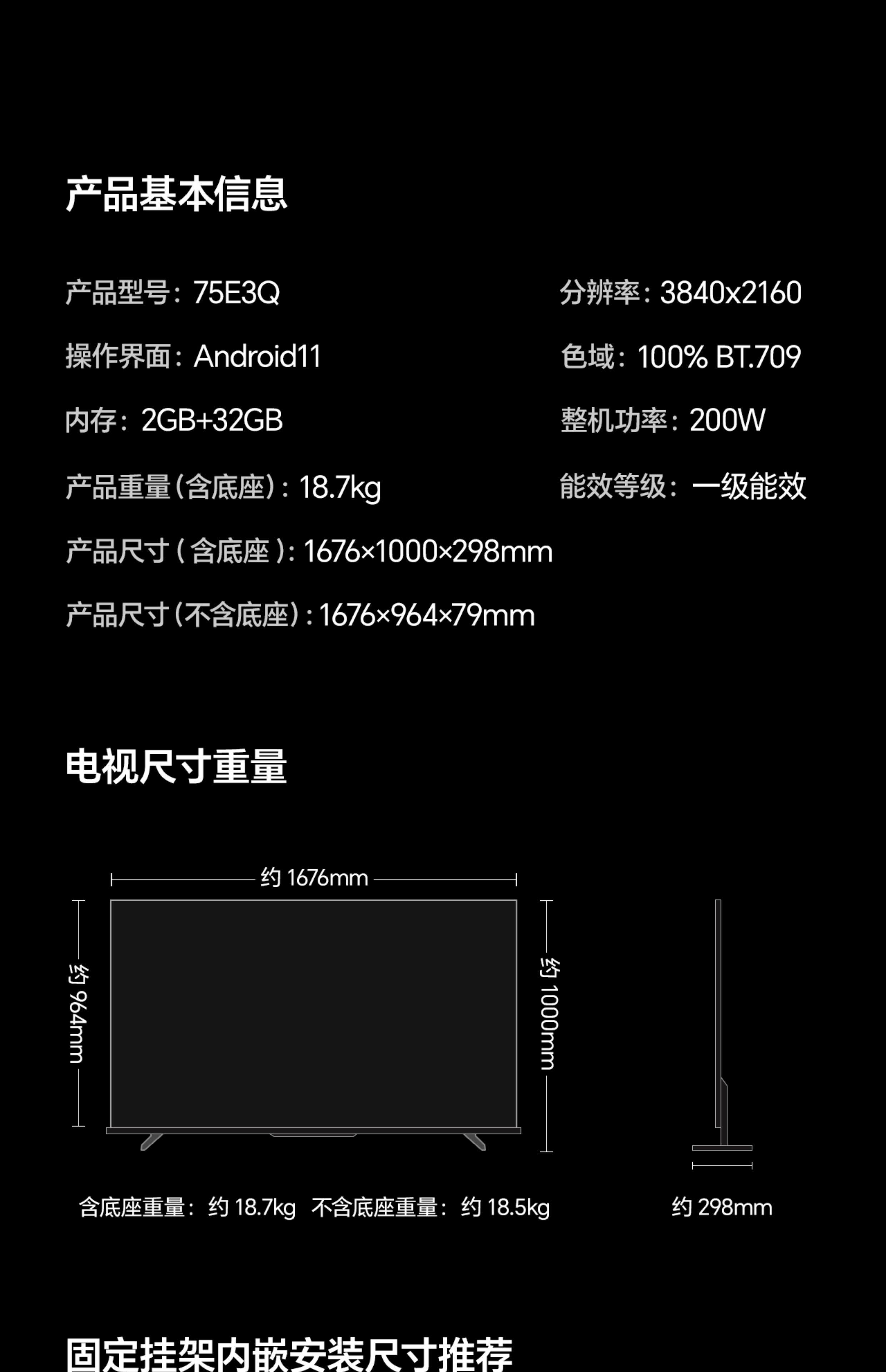 Host size (excluding base) mm 1676×964x79mm