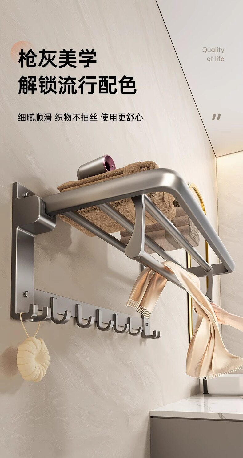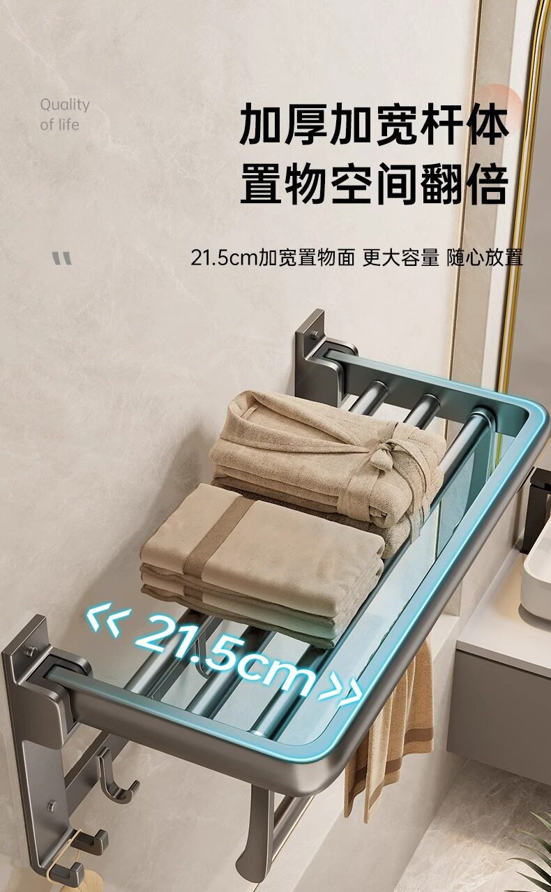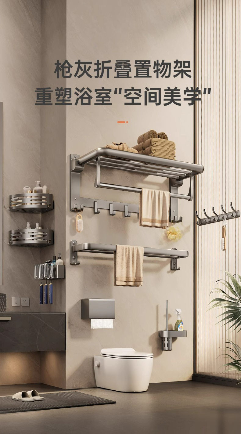 French Ziwoo Punch-Free Wall-Mounted Towel Rack, Bath Towel Rack, Storage Rack, Bathroom Shelf, Toilet Integrated Set