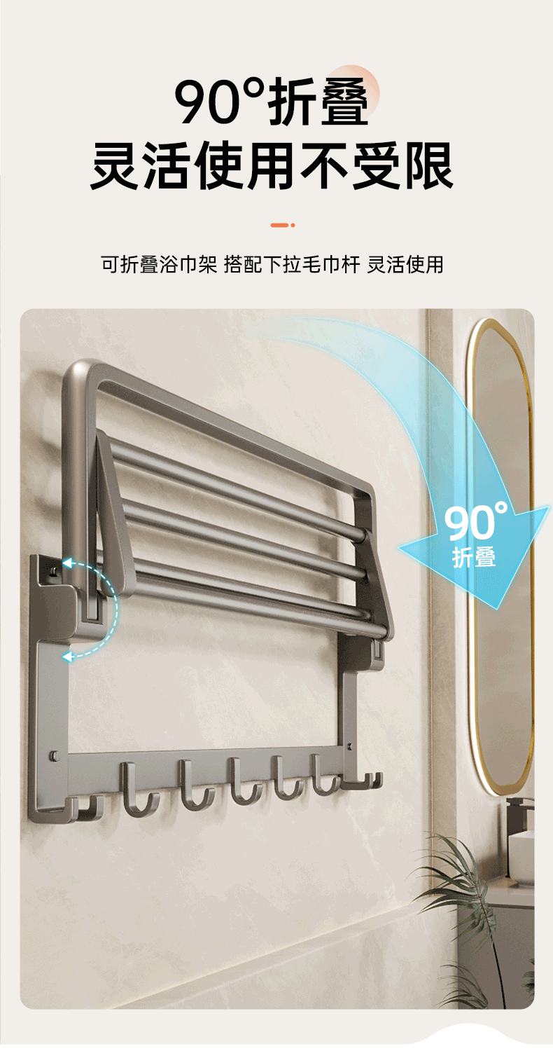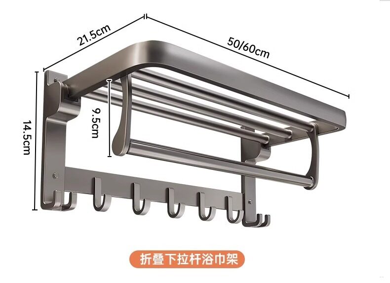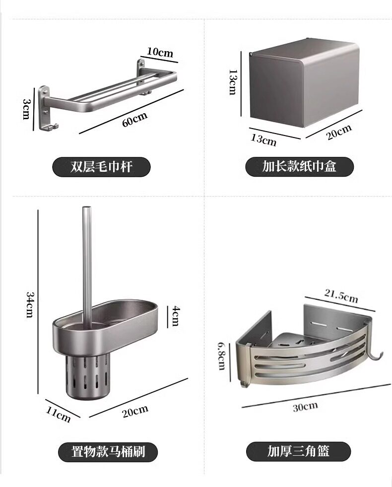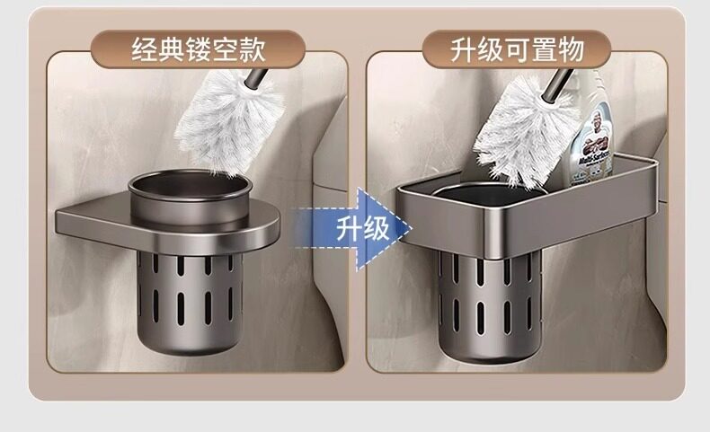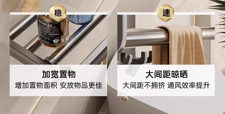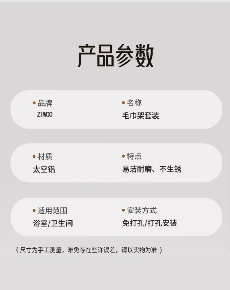 French Ziwoo Punch-Free Wall-Mounted Towel Rack, Bath Towel Rack, Storage Rack, Bathroom Shelf, Toilet Integrated Set