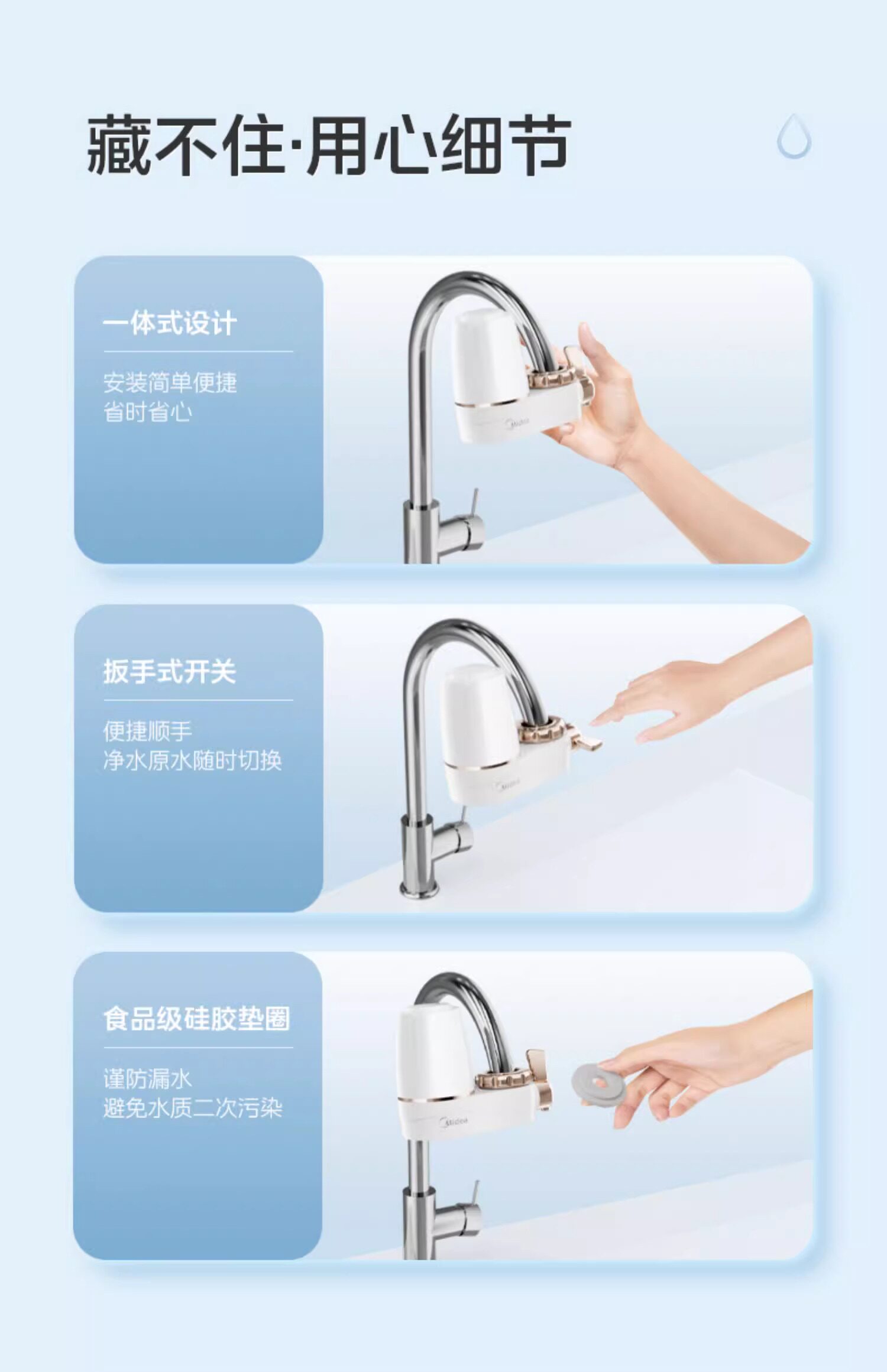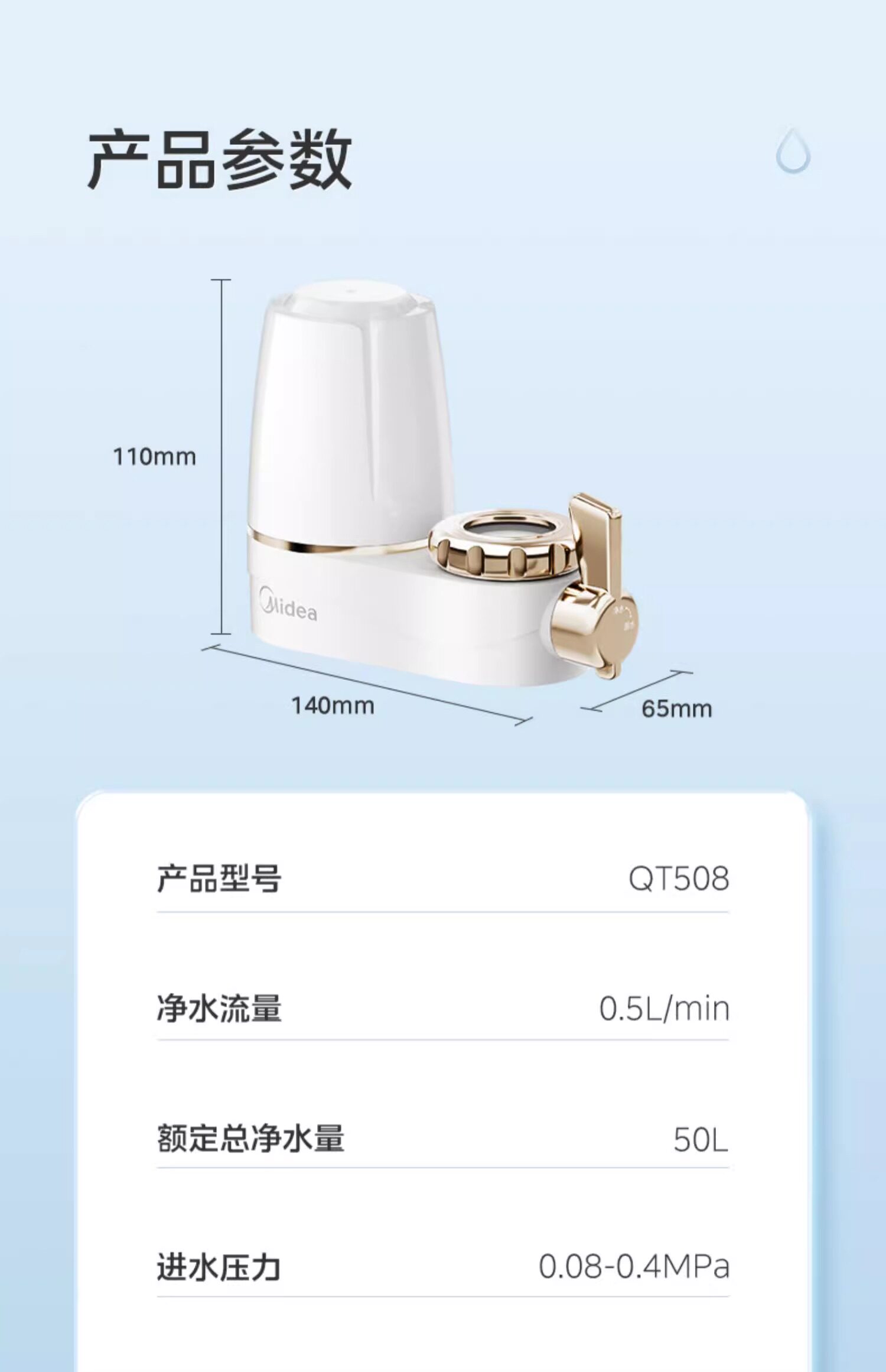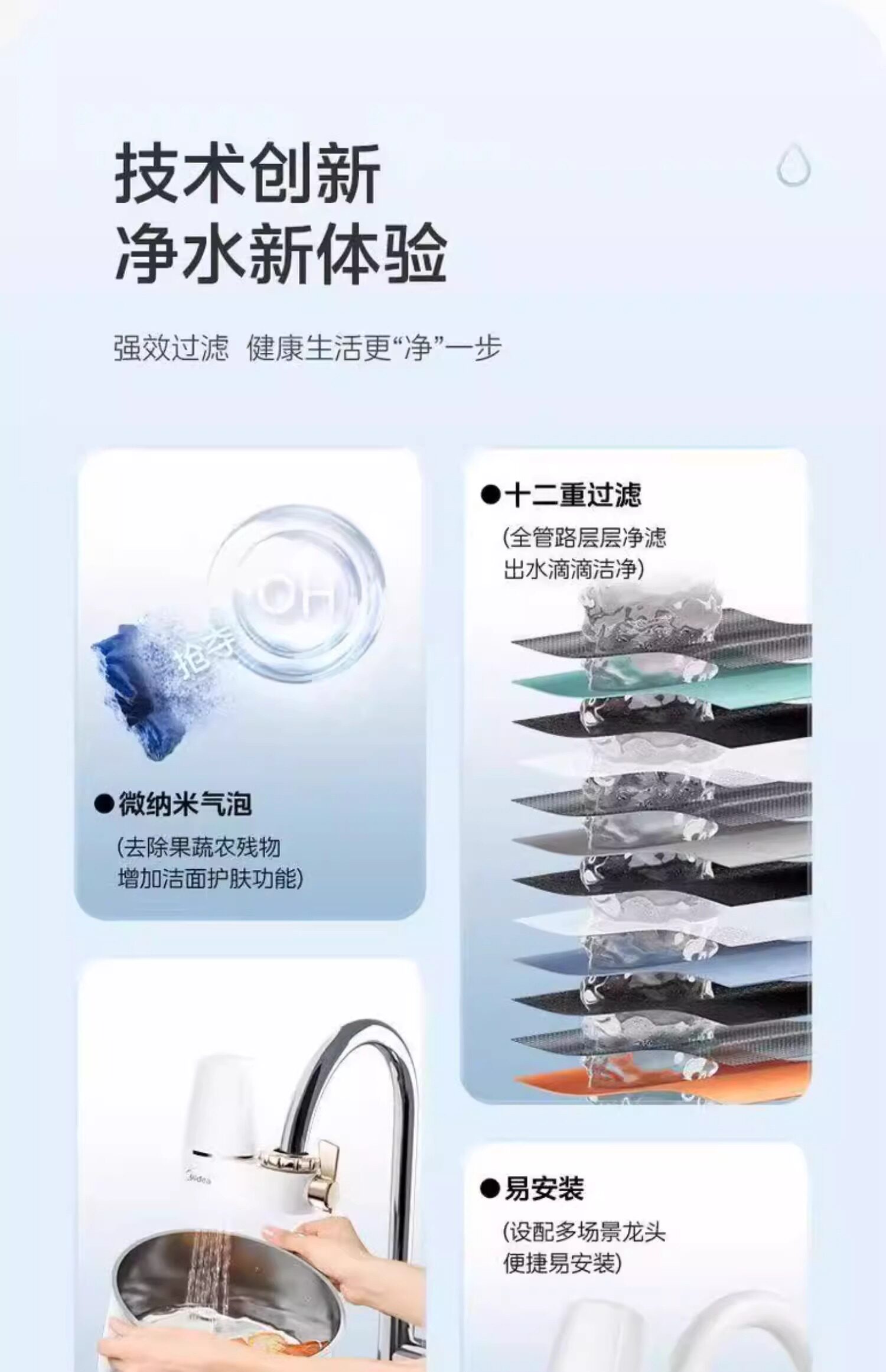Midea Water Purifier Faucet Filter Household Tap Water Filter Water Purification Kitchen Direct Drinking Pre-Filter Machine
