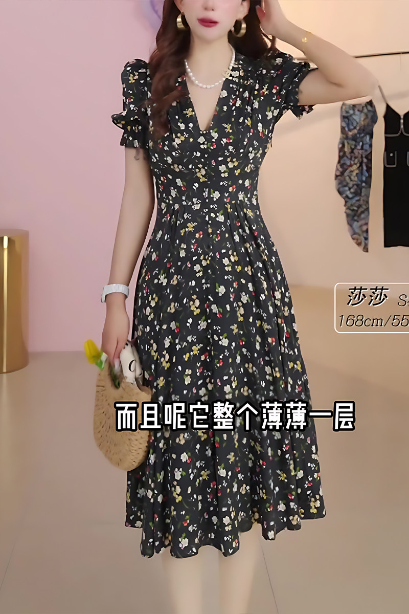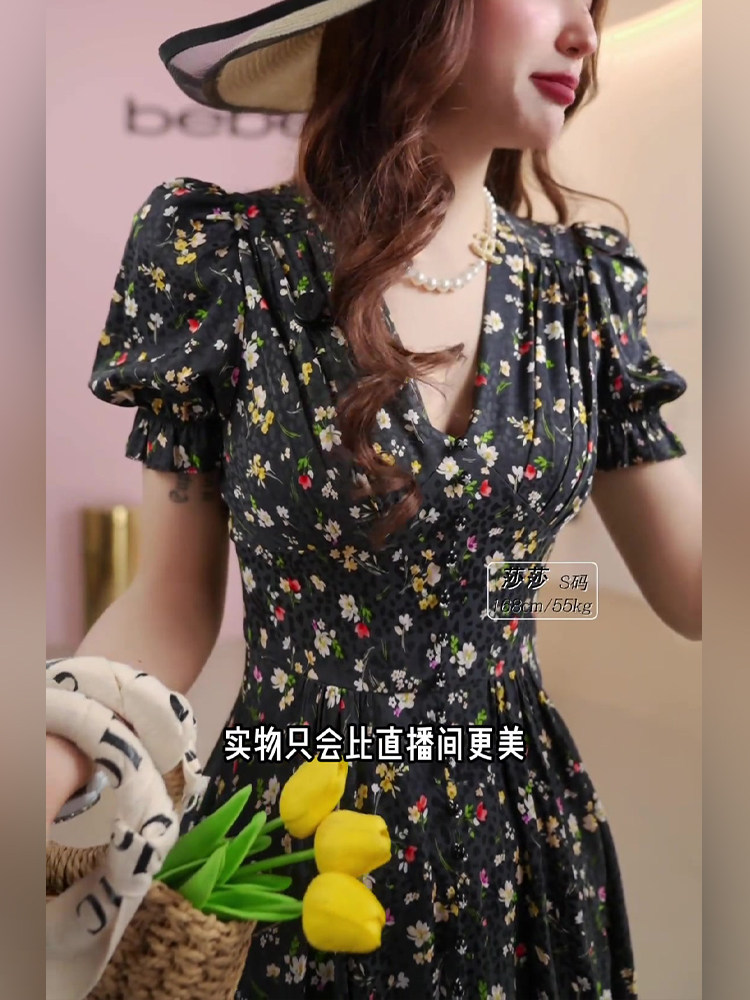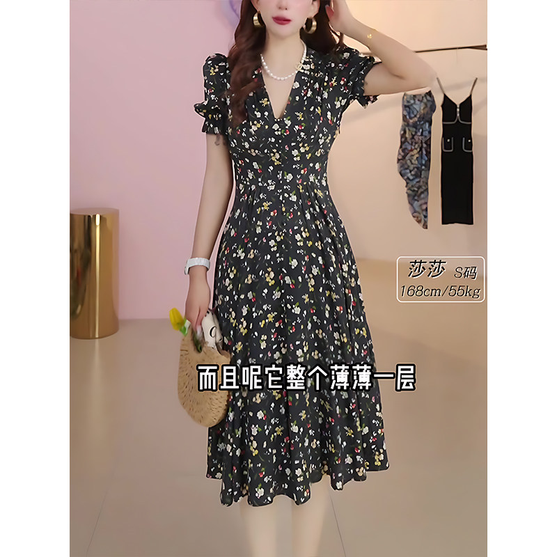 Mijie 2025 New Style High-End Waist-Cinching Slimming Dress for Women, Mid-Length Elegant Floral Print Long Dress
