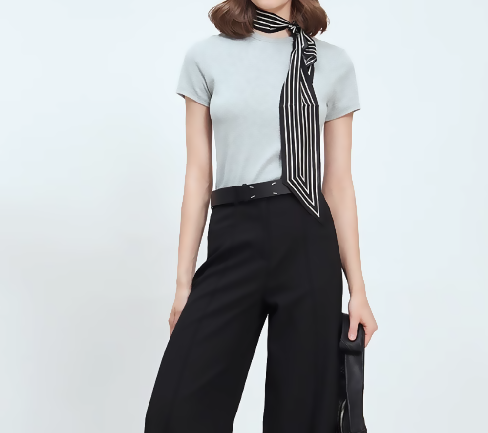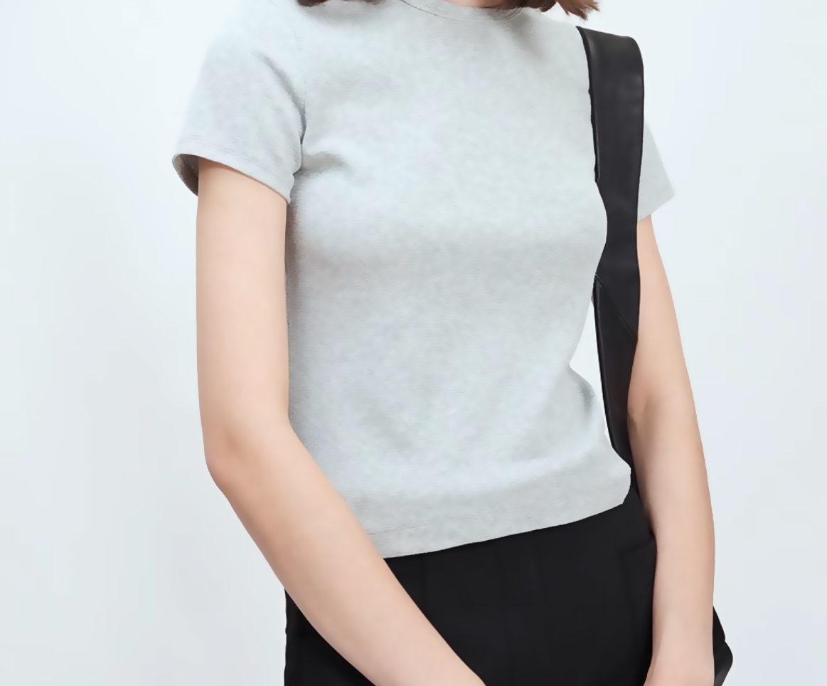 Age-Reducing Snake-Shaped Yarn Ribbed Cotton Round-Neck Short-Sleeve T-Shirt, Slim Fit, Not Tight on the Body, Regular Shoulder Women's T-Shirt