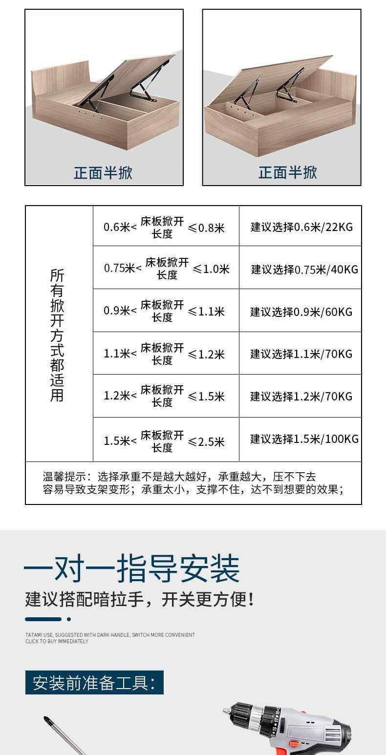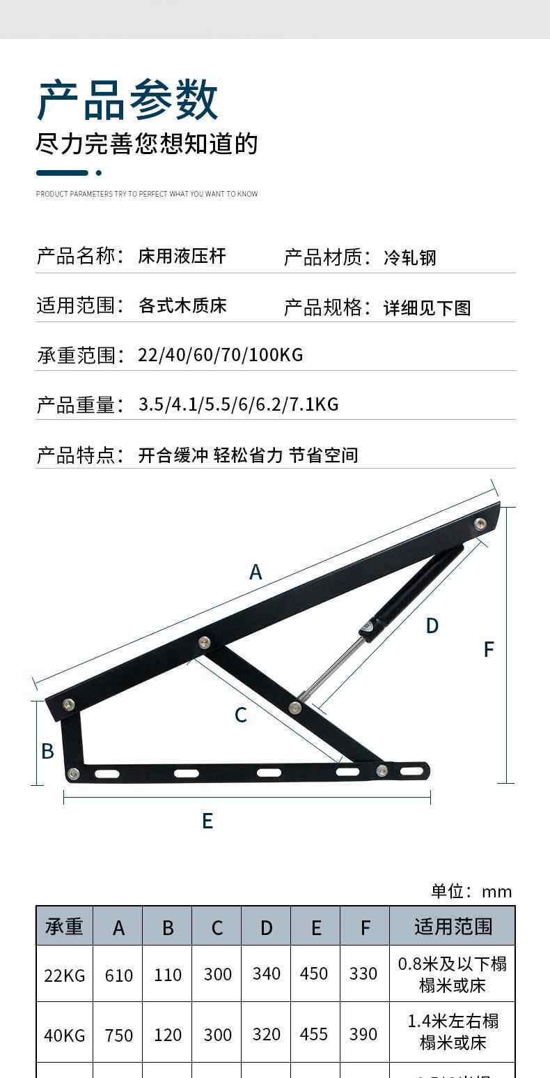 Row frame pneumatic bed frame hydraulic flip bed hardware accessories support rod bed box upper flip bed solid wood bed flip plate