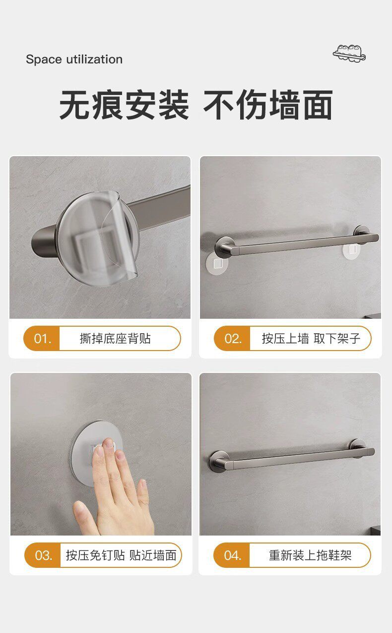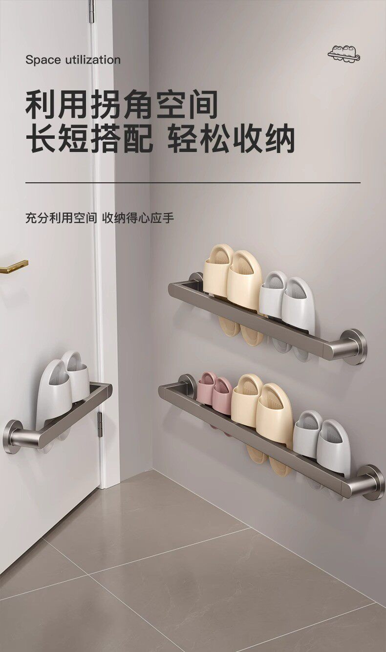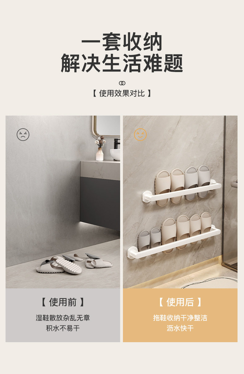 French Ziwoo Bathroom Slipper Hanger Without Punching Behind the Door Bathroom Rack Wall-Mounted Storage Artifact