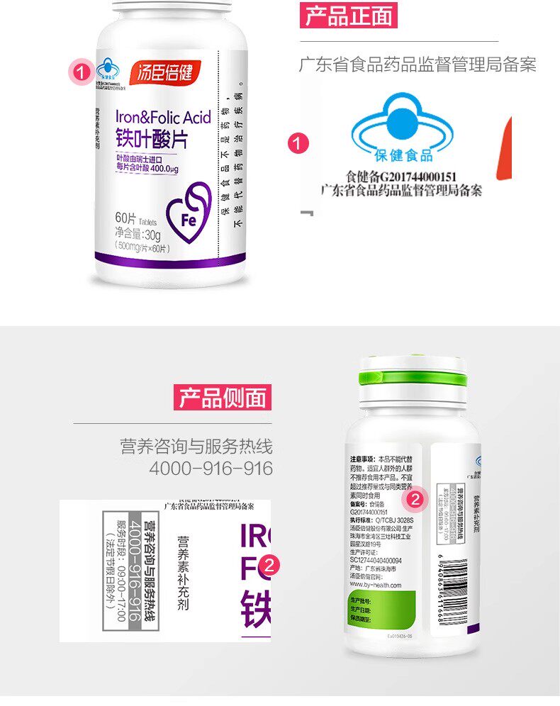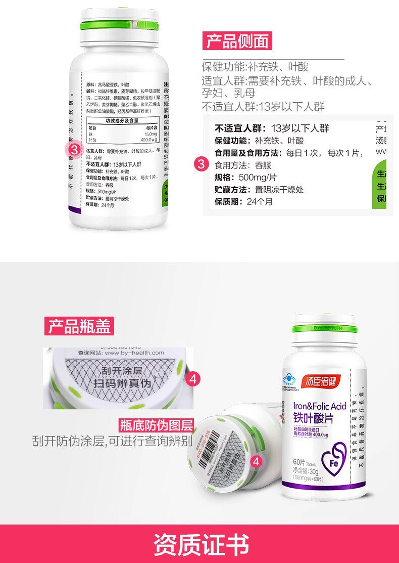 Tomson By-Health Iron and Folic Acid Tablets for Pregnant Women, Pre-Pregnancy Folic Acid and Mineral Supplement, Iron Supplement, Genuine Product for Men and Women