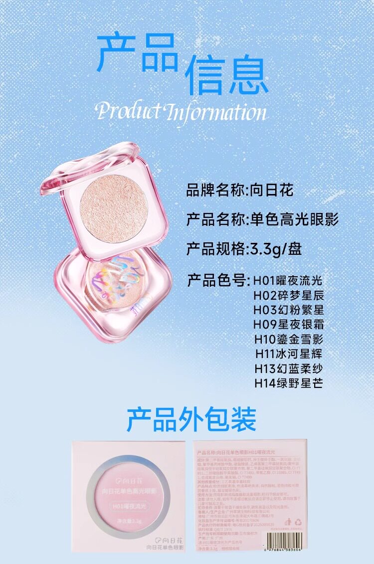 Sunflower Single Color Eyeshadow Highlighter Genuine Cowherd and Weaver Girl Fine Shimmer Overlay Brightening Flashy Little Red Book Alternative Moonlight