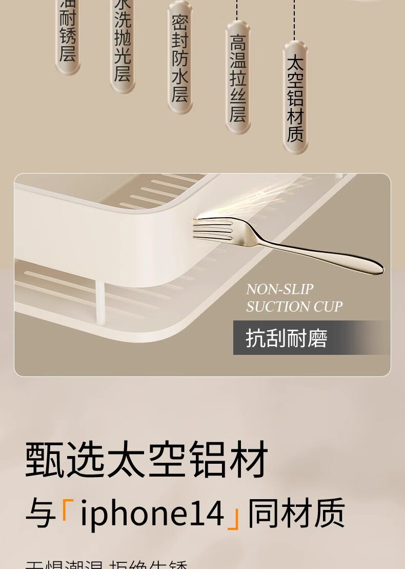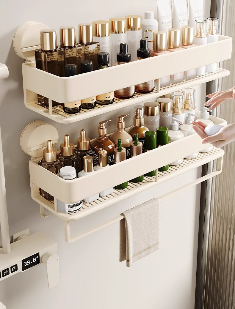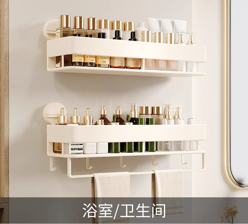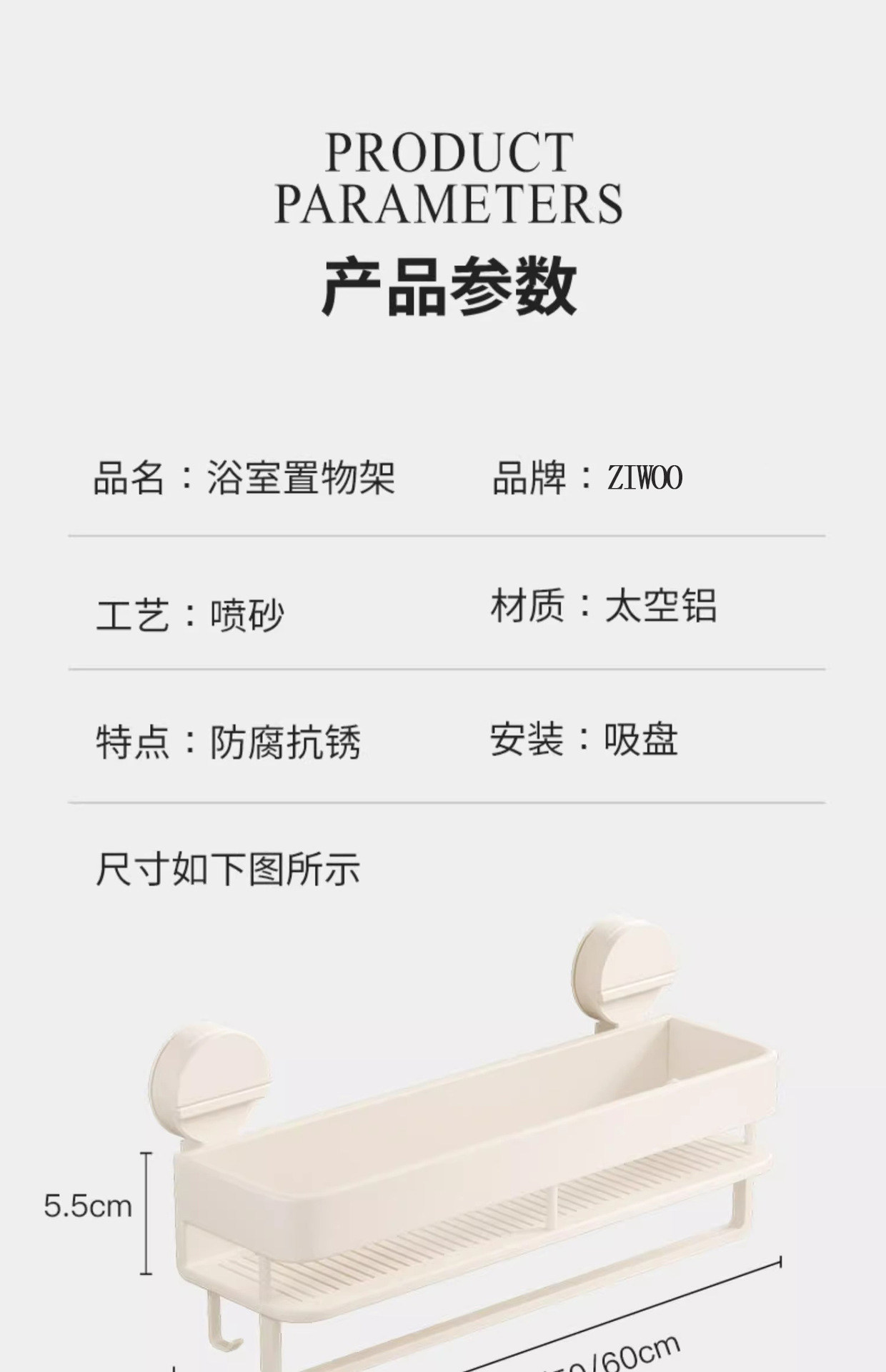 French Ziwoo Suction Cup Bathroom No-Drill Storage Rack Towel Rack Integrated Bathroom Sink Storage Rack