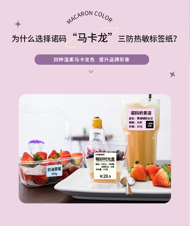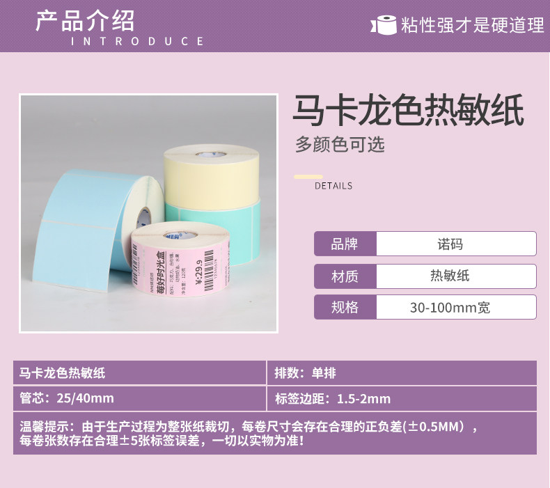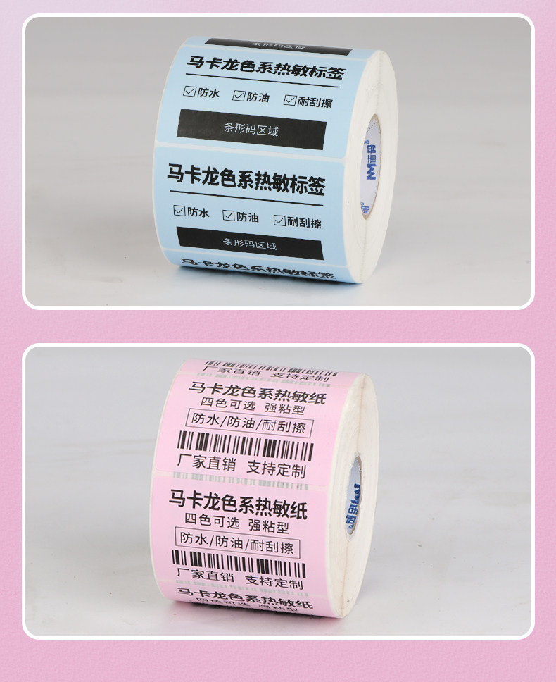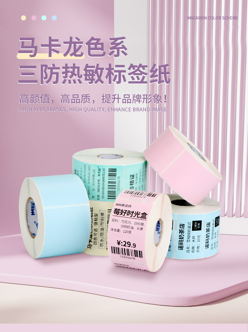 Macaron color three-proof thermal label paper self-adhesive 30-100*20 40 50 60 70 80 90 barcode printing paper sticker QR code baked milk tea sticker red green blue yellow 5 rolls