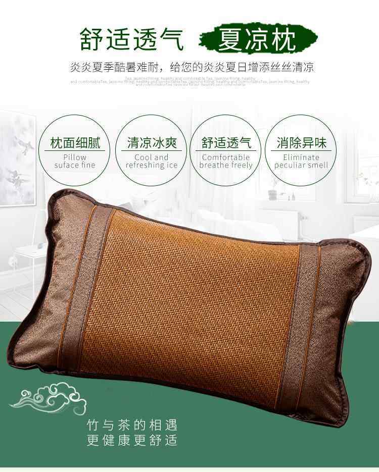 Traditional Bamboo Cooling Mat Pillow for Summer, Single-Sided Cooling Pillow for Adults, Double-Sided Household Tea Leaf Core Rattan Pillow