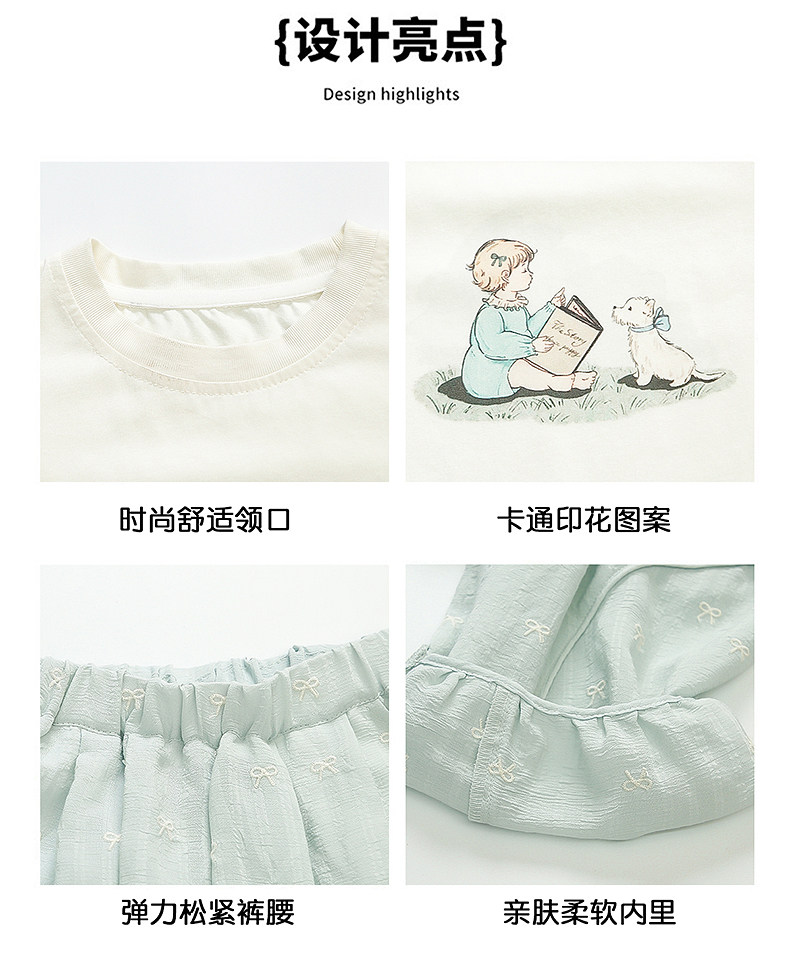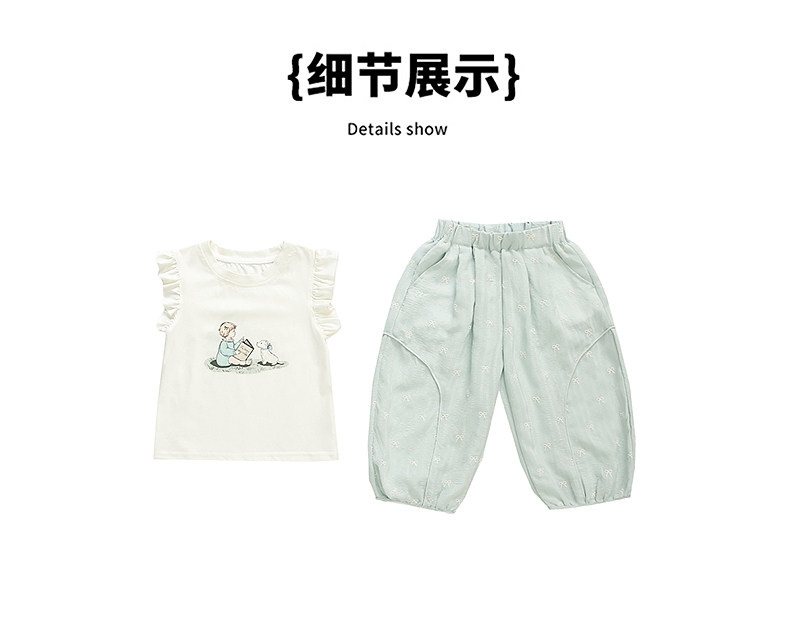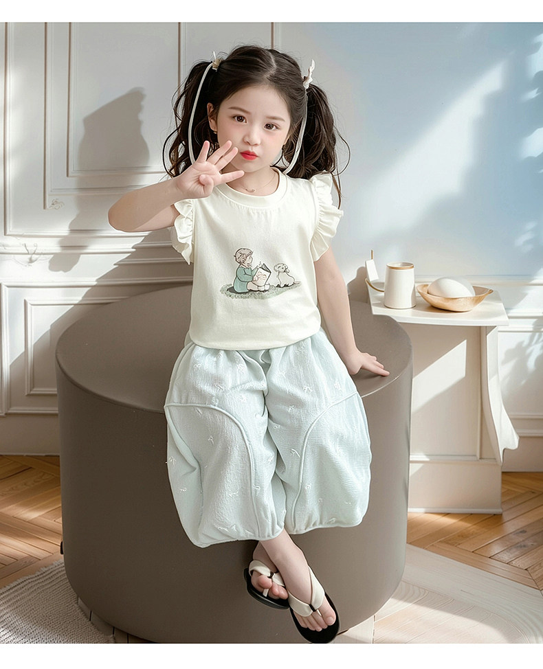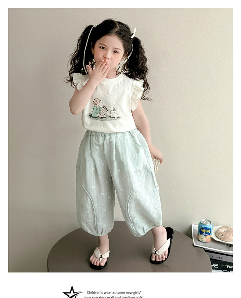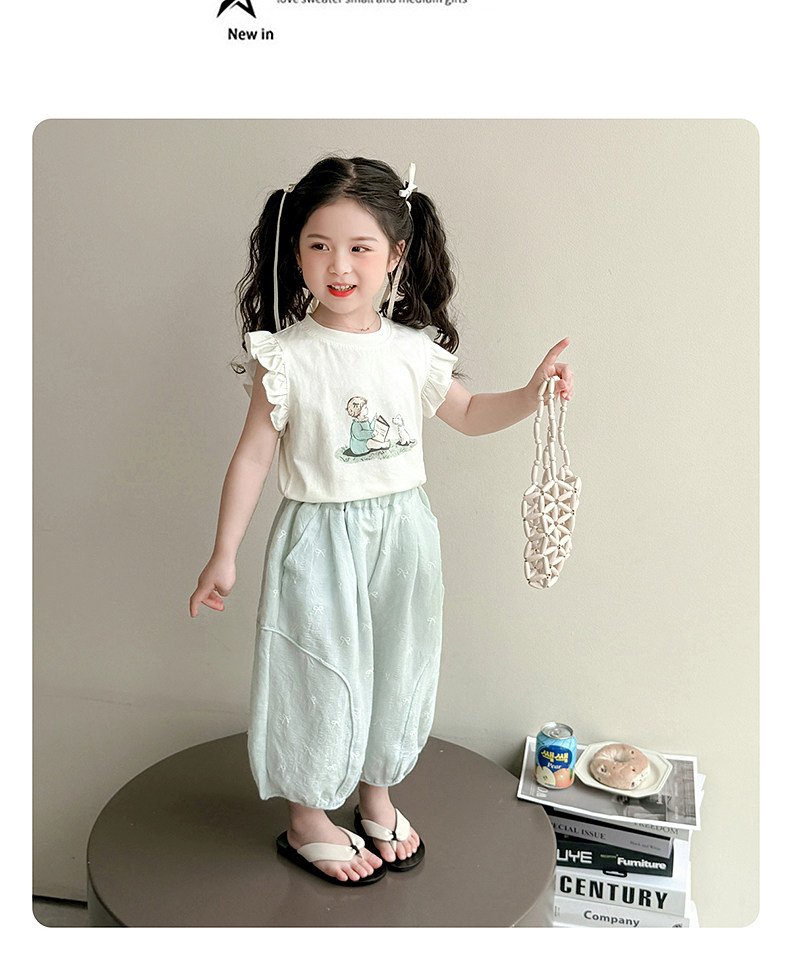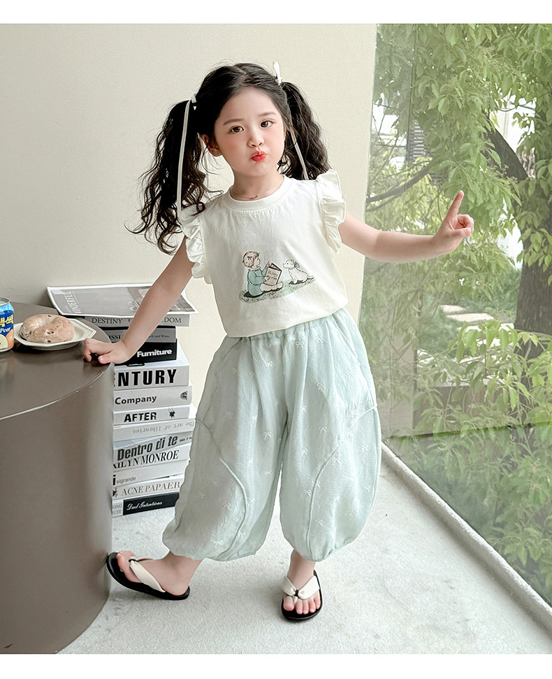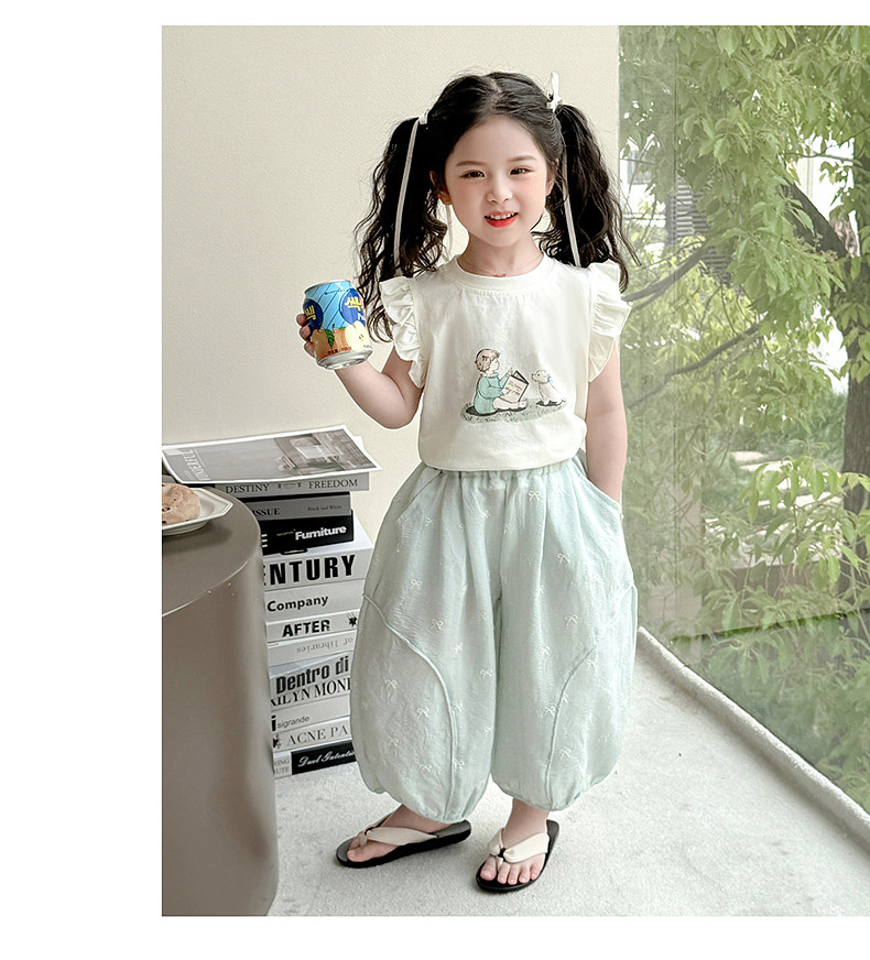 Girls Flying Sleeve Suit Summer 2025 New Children's Style Cartoon Vest Summer Clothes Baby Girl Anti-Mosquito Pants Two-Piece Set