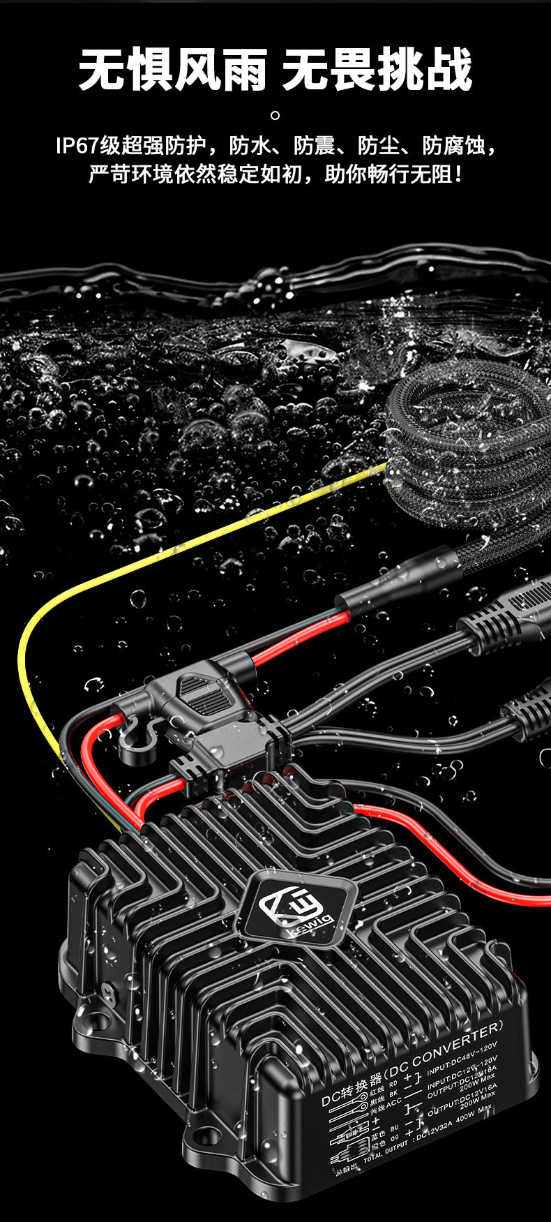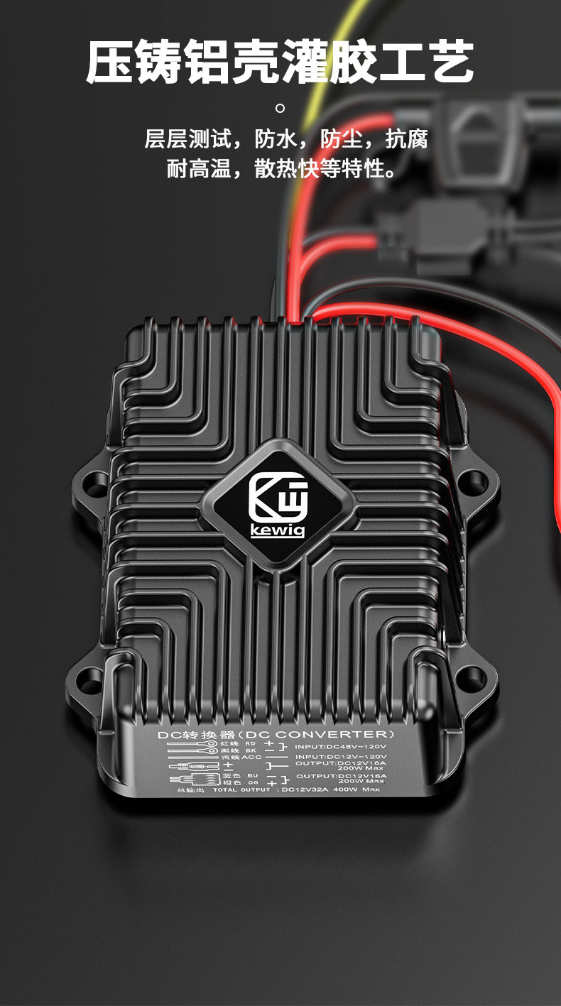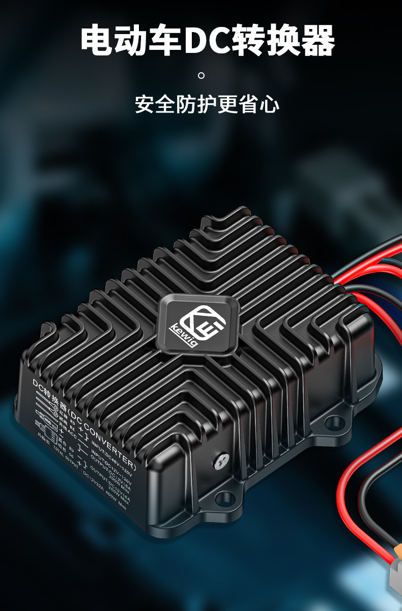 Kaiweige Electric Motorcycle DC Converter Aluminum Alloy 48-120V Voltage to 12V Buck SAE Interface