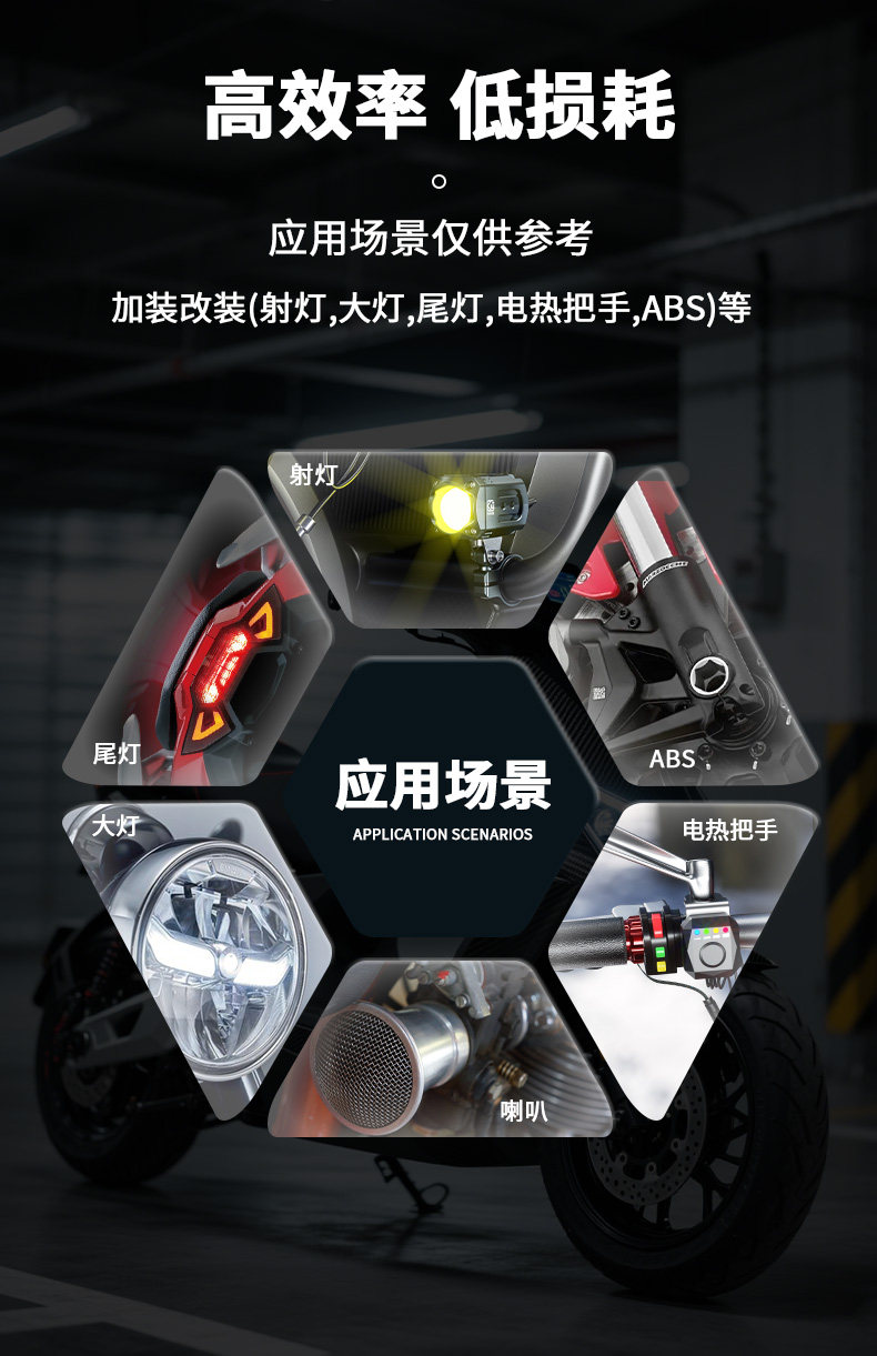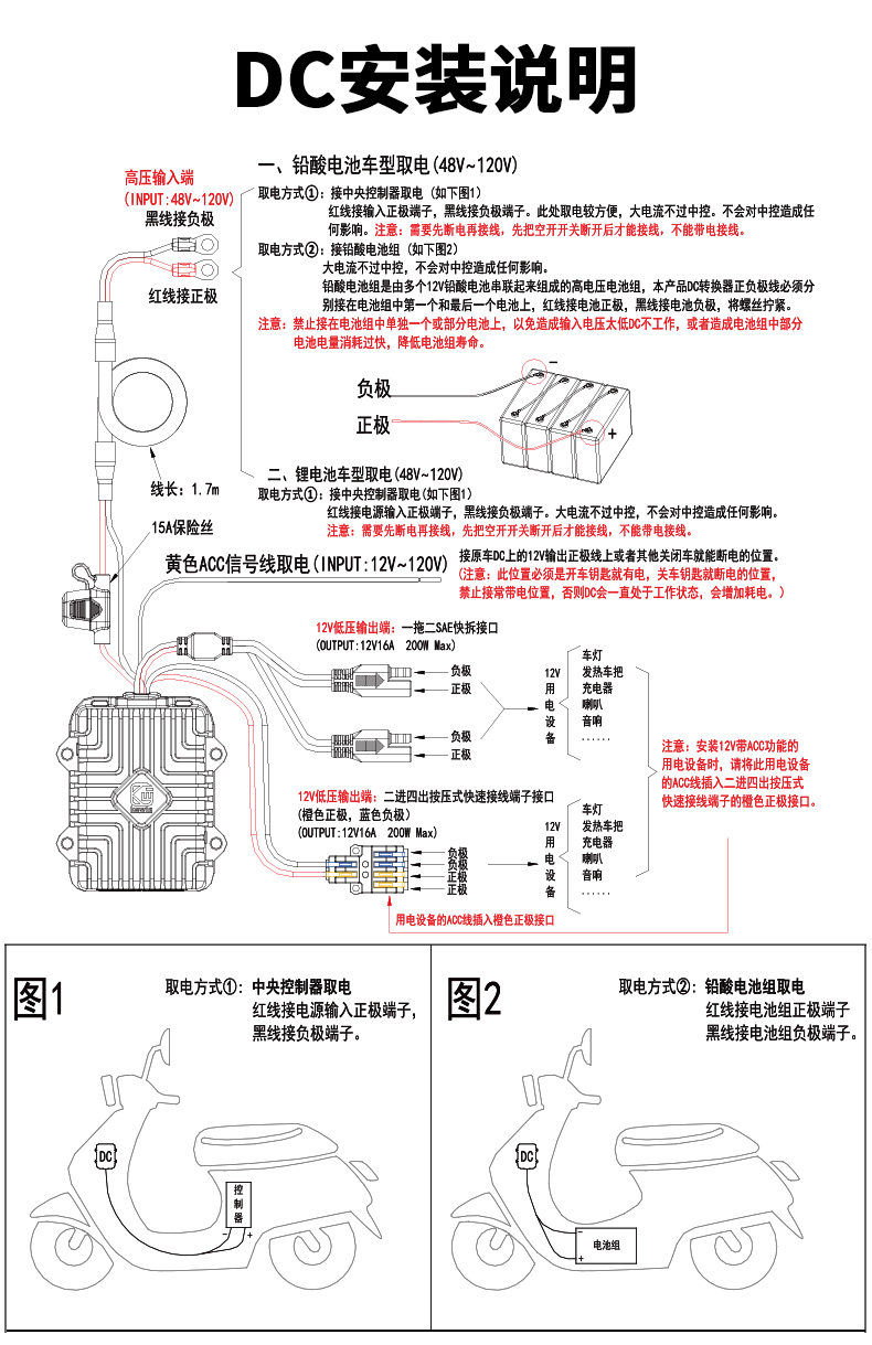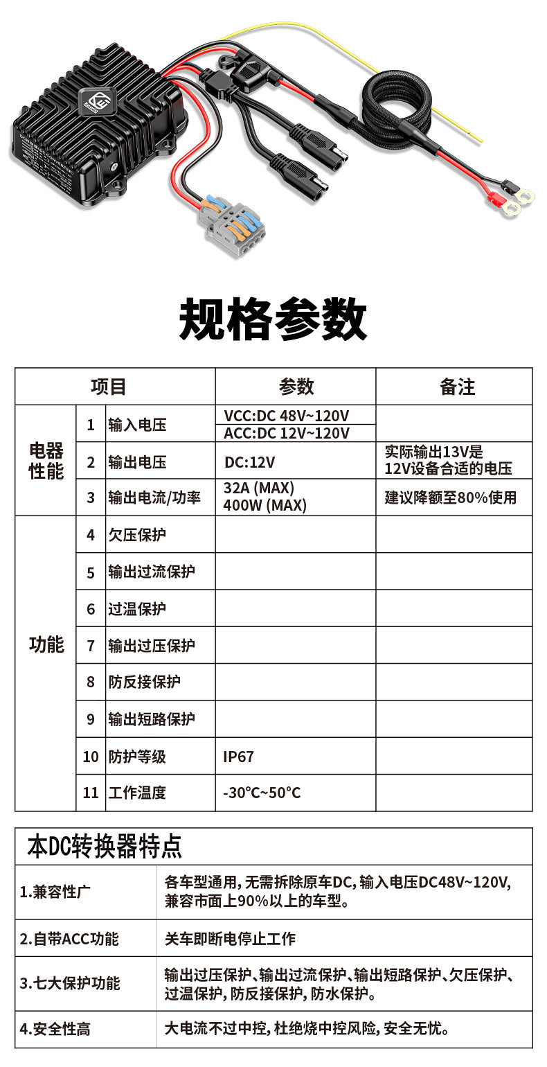Kaiweige Electric Motorcycle DC Converter Aluminum Alloy 48-120V Voltage to 12V Buck SAE Interface