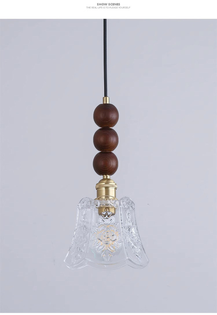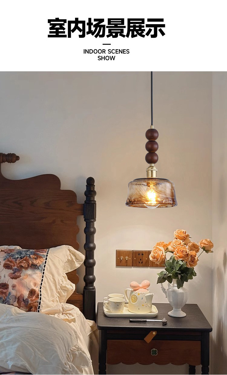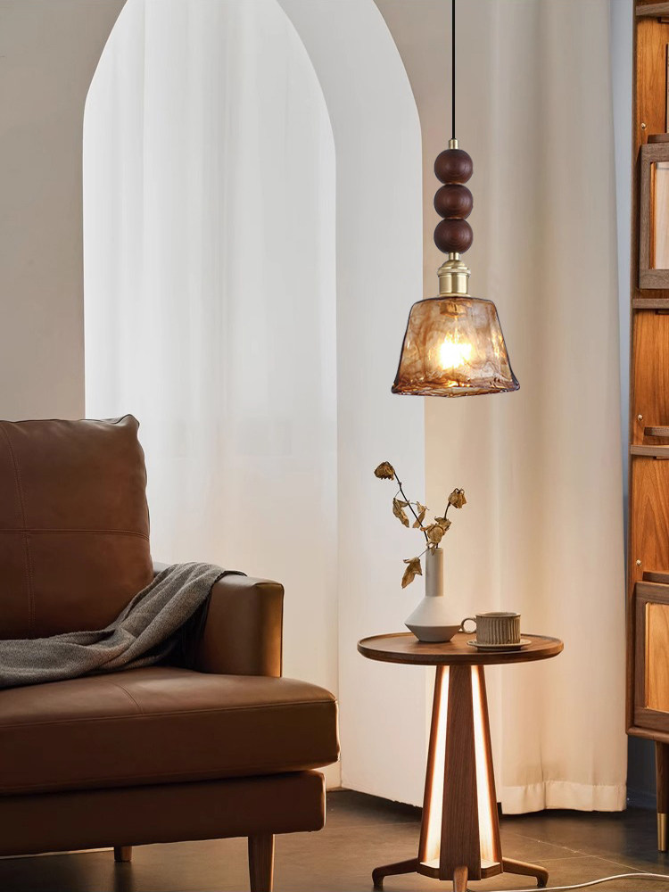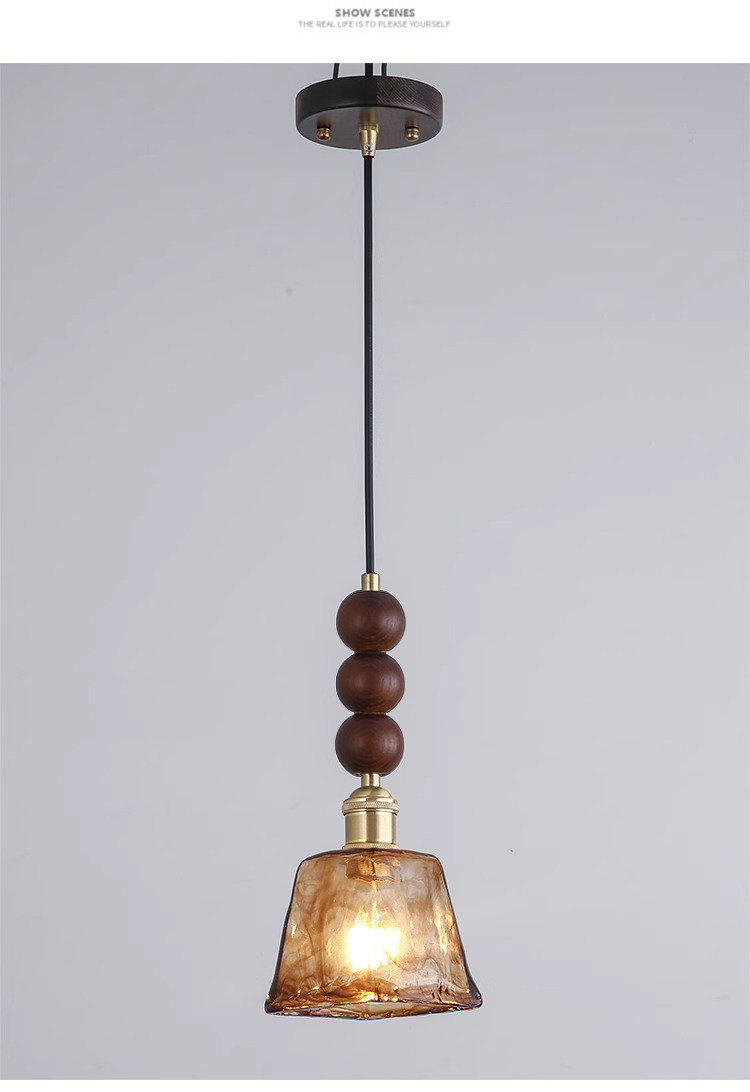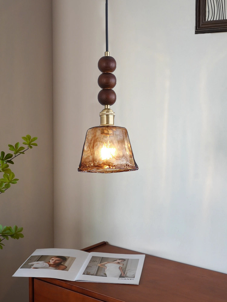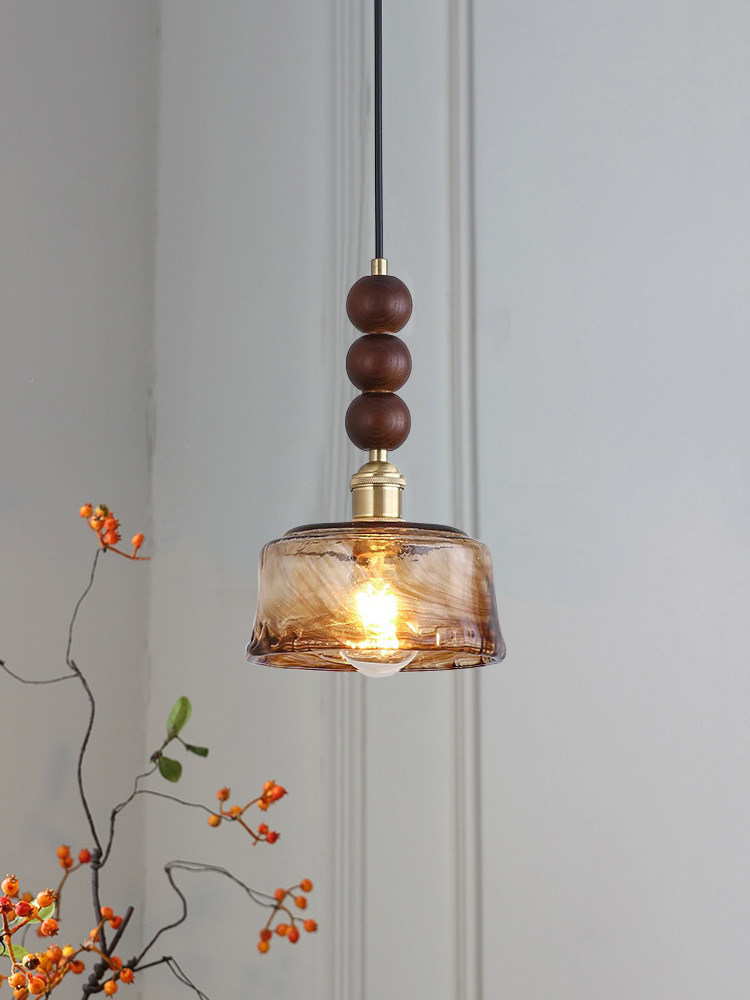 Medieval walnut bedroom bedside small chandelier wabi-sabi aesthetic amber brass glass restaurant bar single head