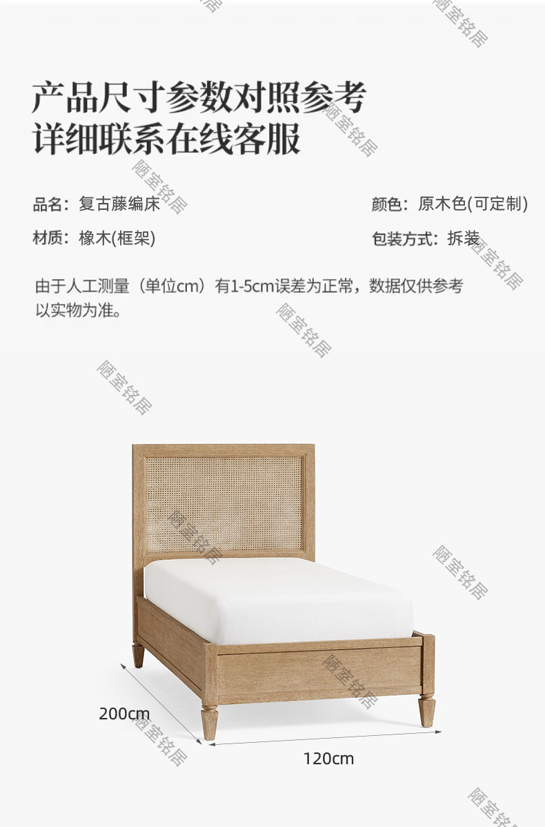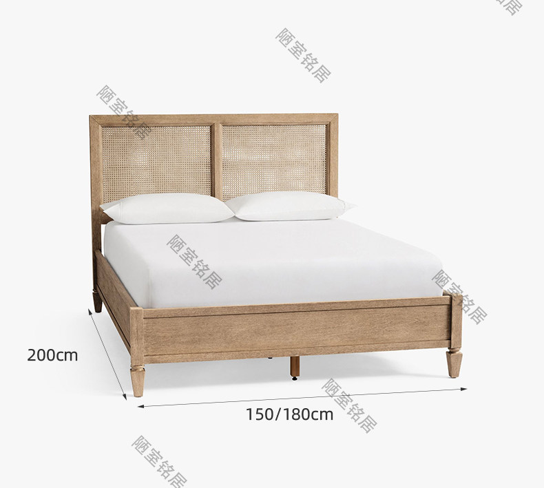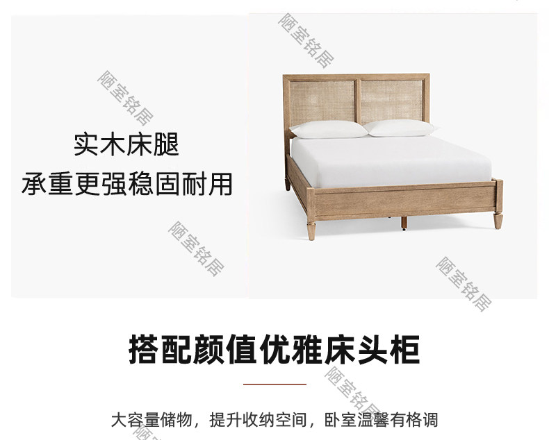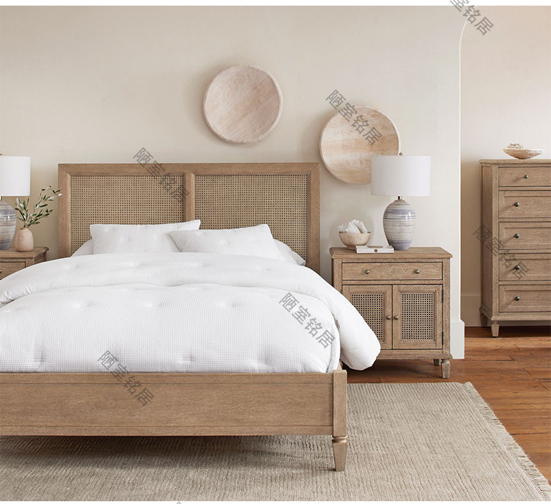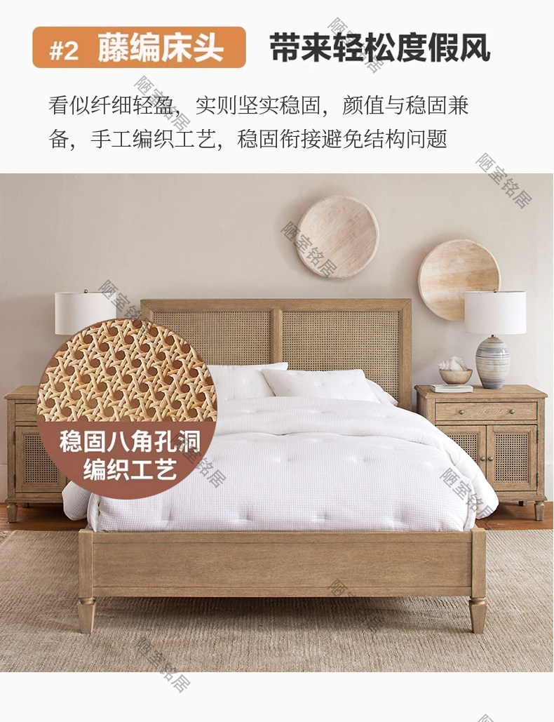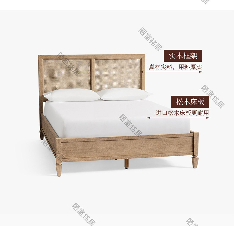 American country retro old solid wood rattan double bed Nordic simple master bedroom oak wedding bed princess bed