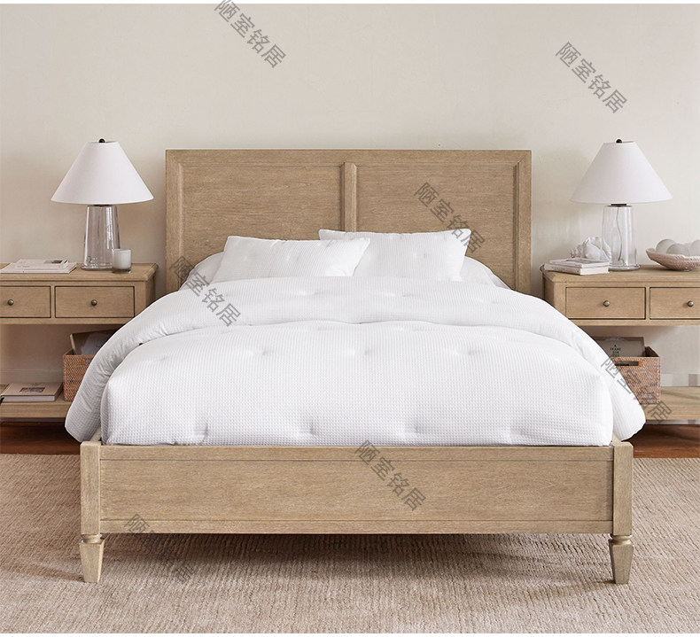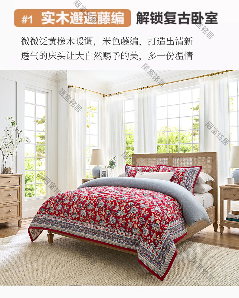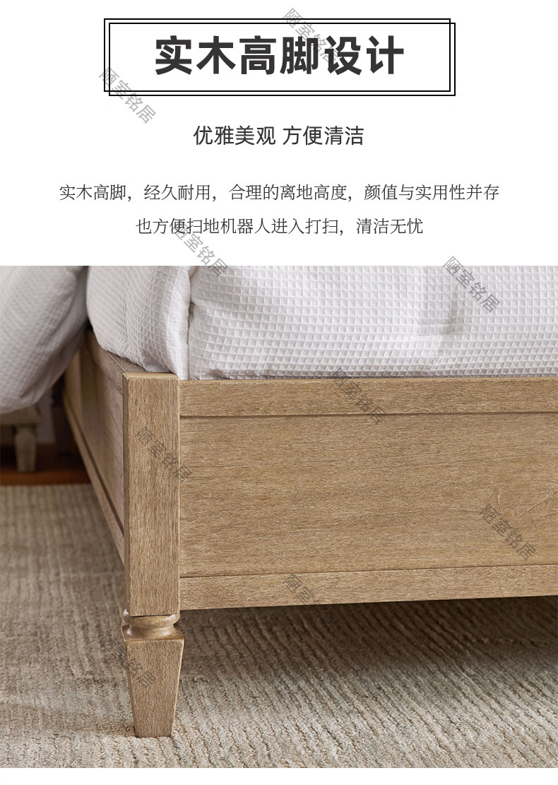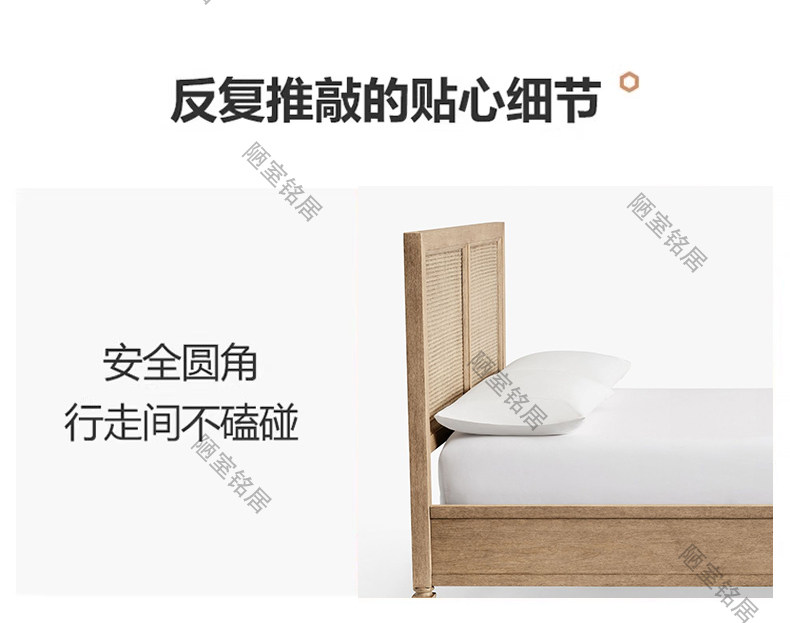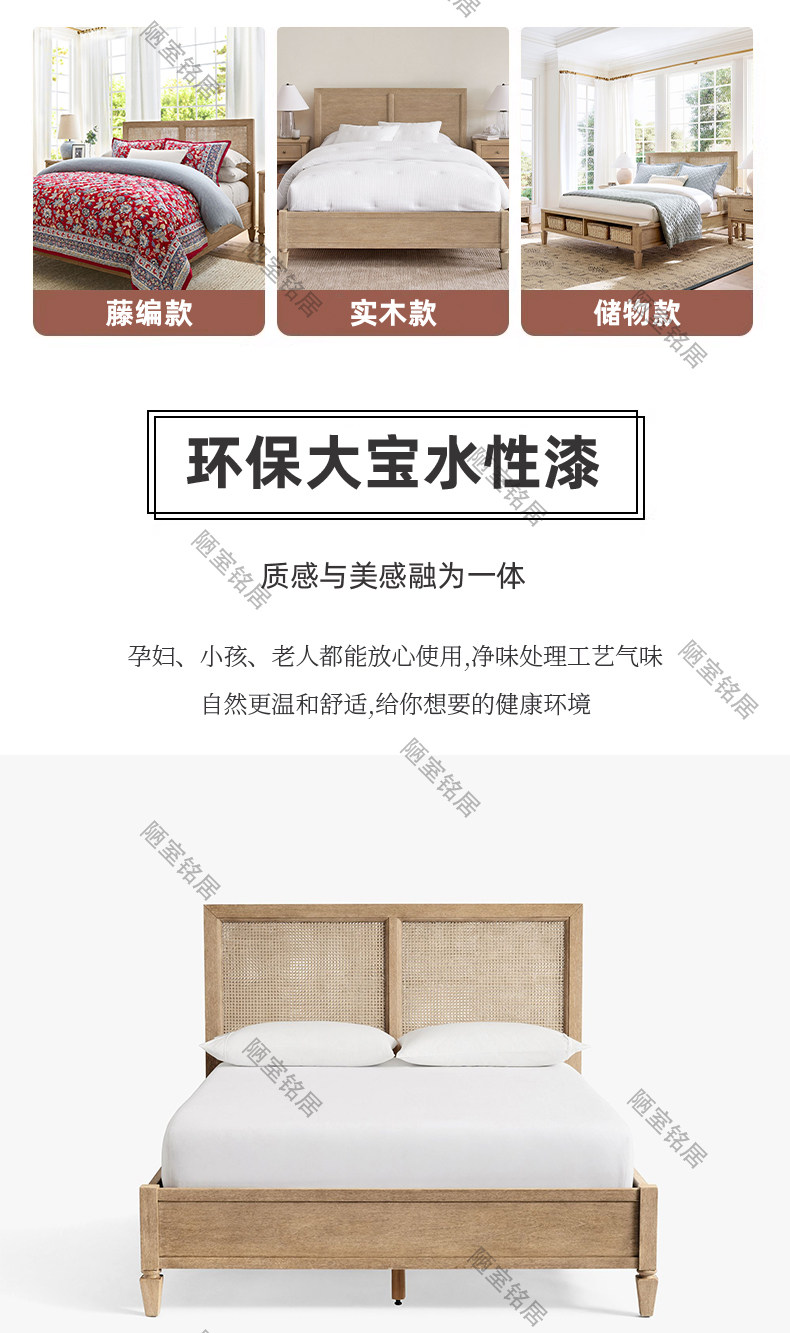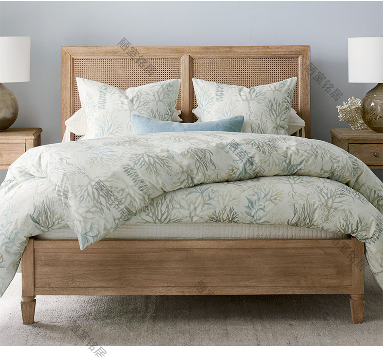 American country retro old solid wood rattan double bed Nordic simple master bedroom oak wedding bed princess bed