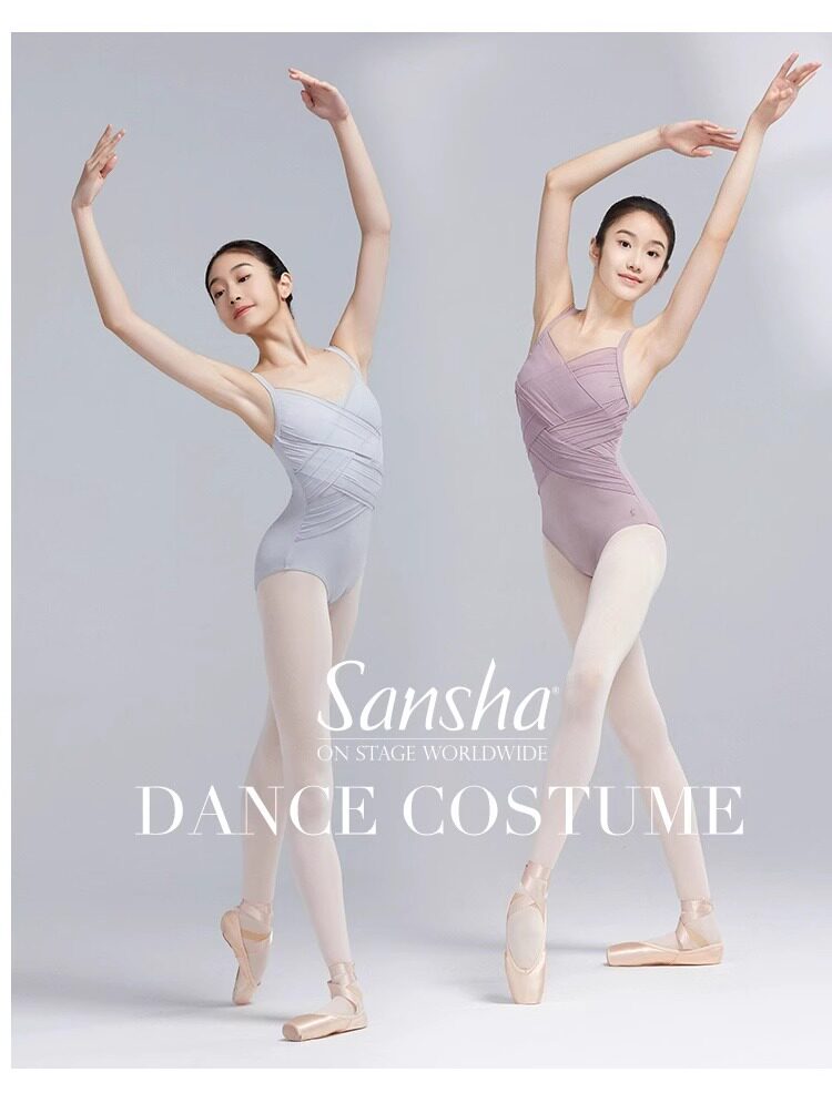 Sansha French Sansha Dance Costume for Girls, Mesh Strap Ballet Practice Outfit, Performance and Body Training Attire