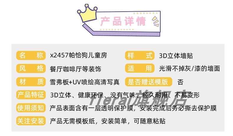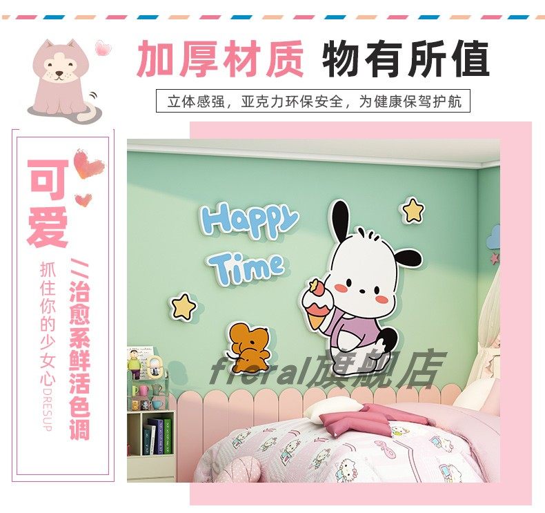 Children's Room Decoration Pacha Dog Cute Cartoon 3D Wall Stickers for Boys and Girls Bedroom Bedside Background Wall Decoration