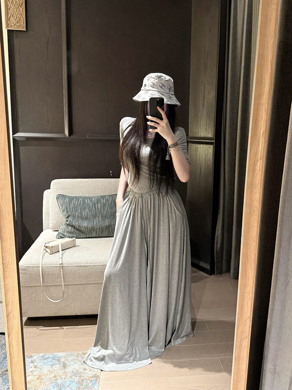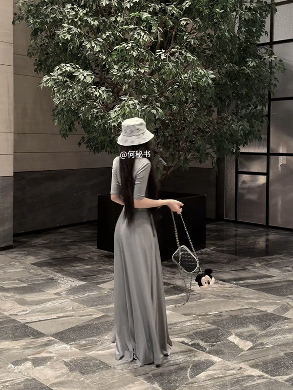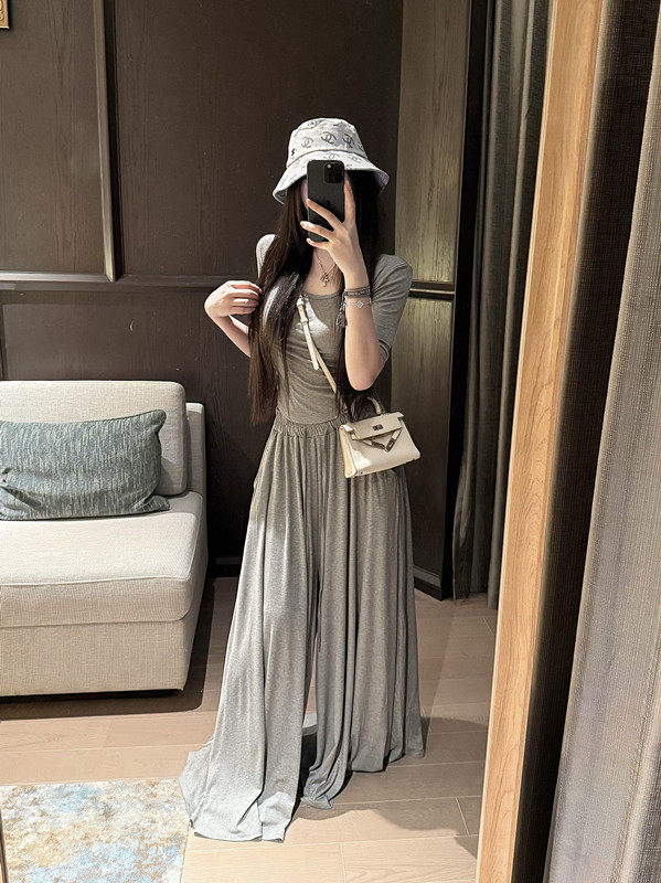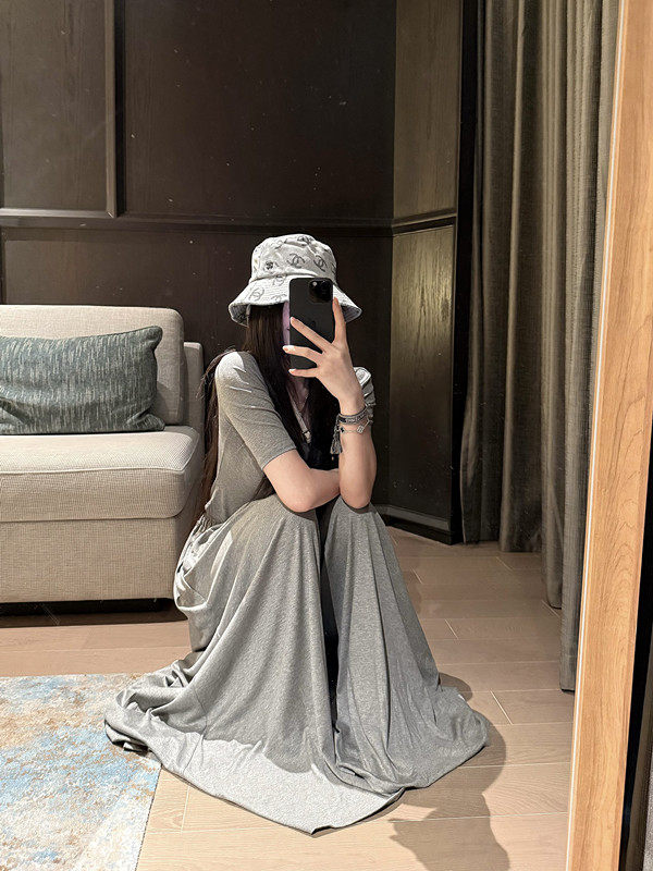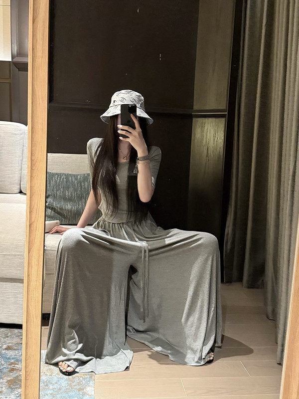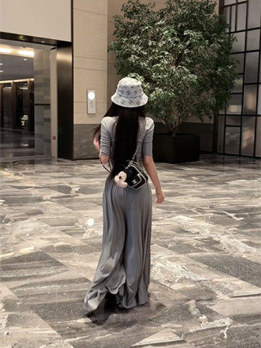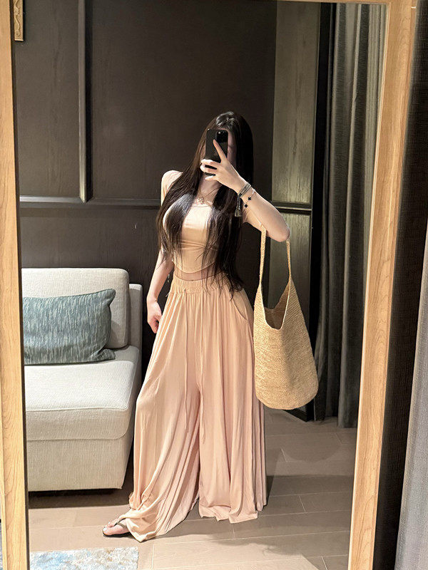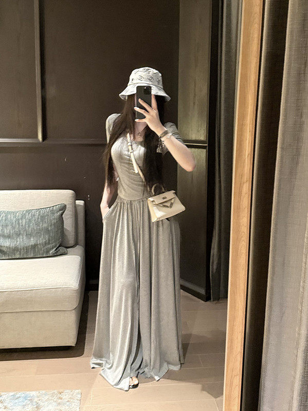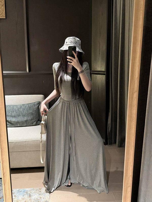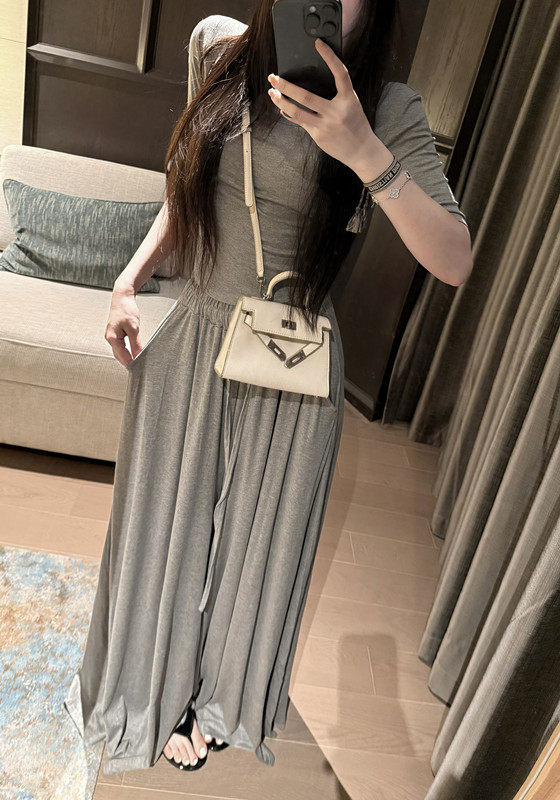 Popw Gentle and Elegant Ballet-Style Mid-Sleeve Round-Neck Slim-Fit Top + Elastic Skirt Pants Two-Piece Set for Women