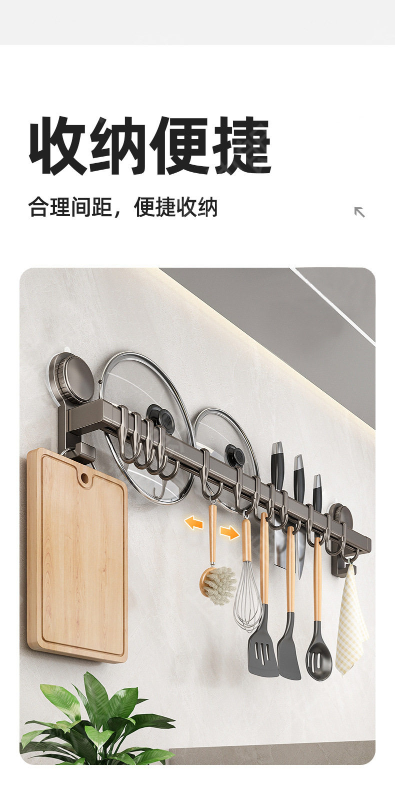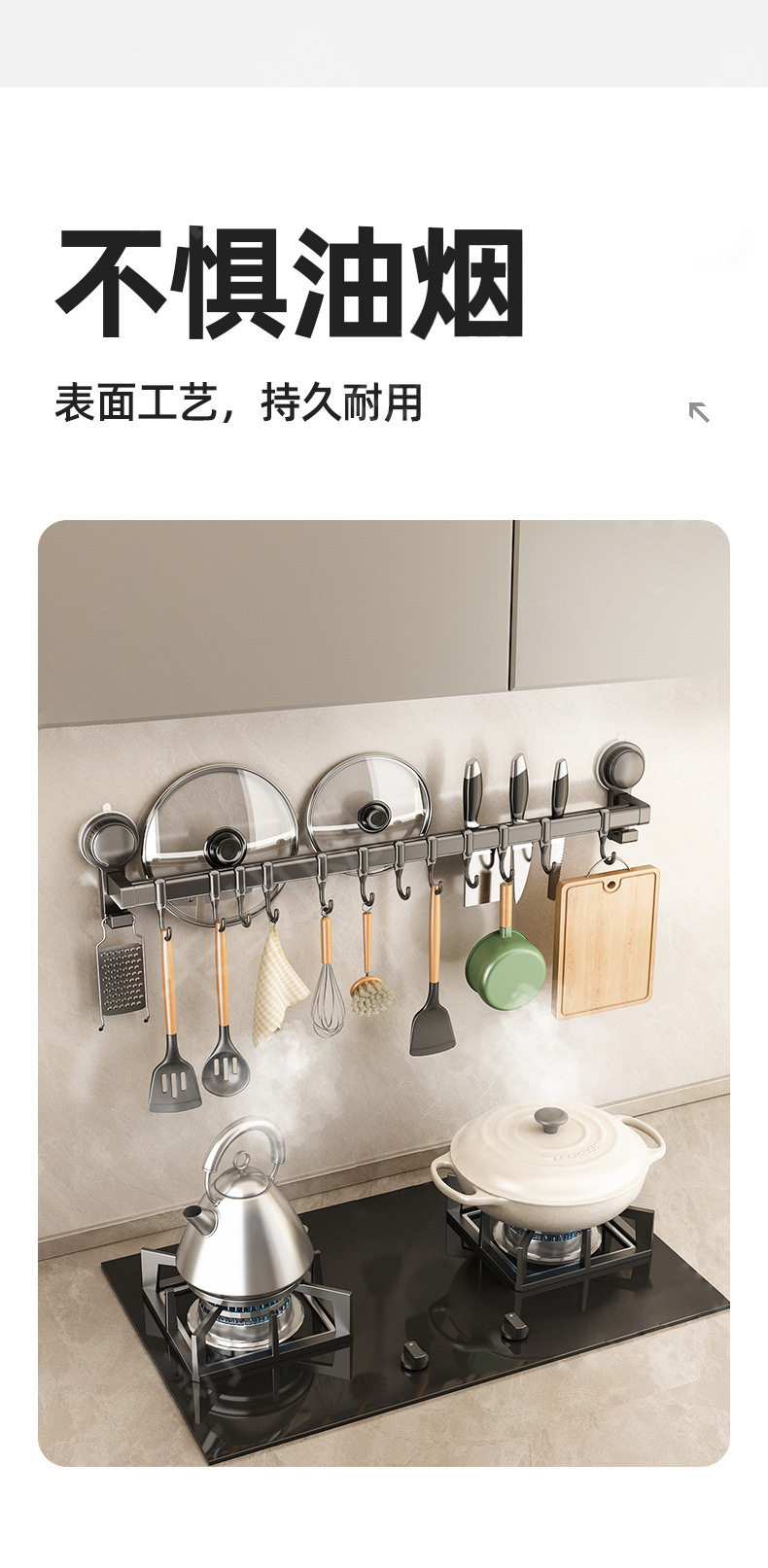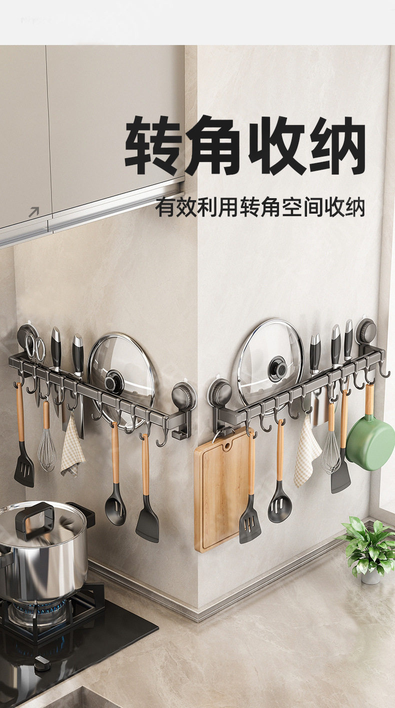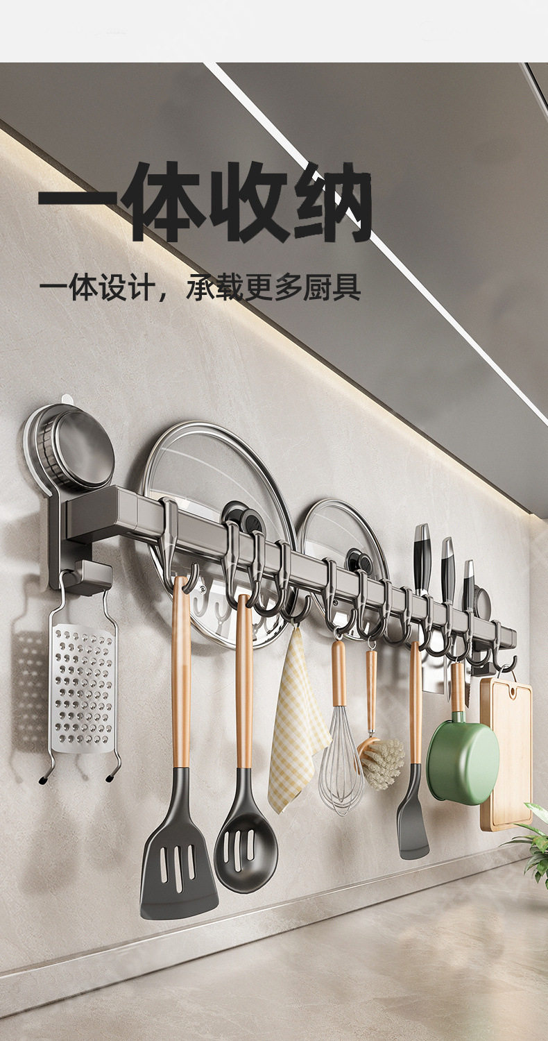 French Ziwoo Kitchen Suction Cup Hook, Punch-Free Hanging Rod, Spoon Shovel Hanger, Multi-Functional Wall-Mounted Storage Rack