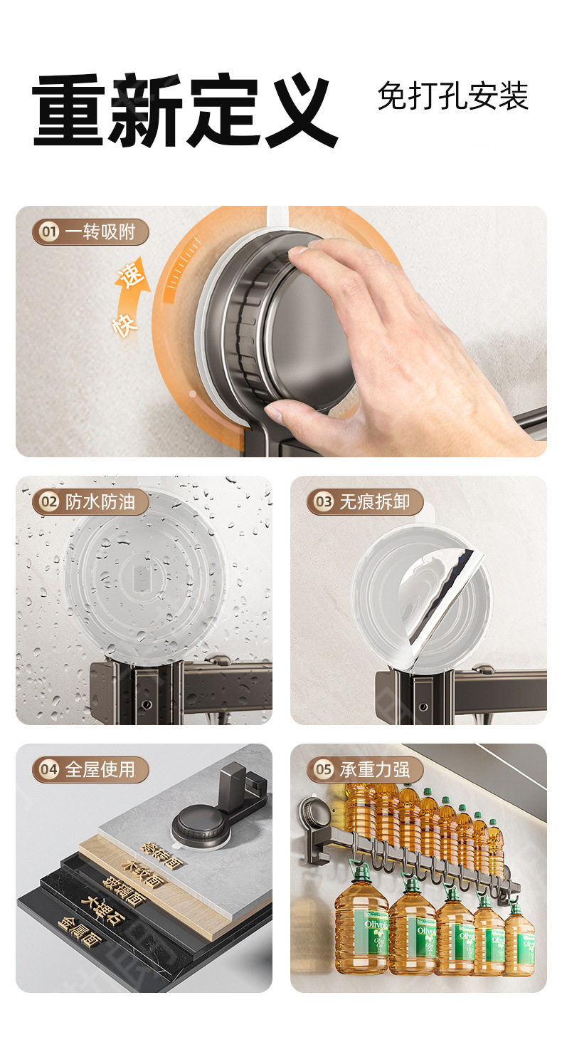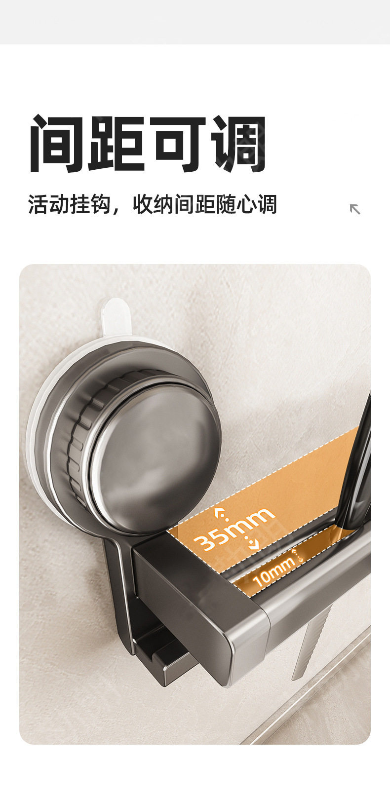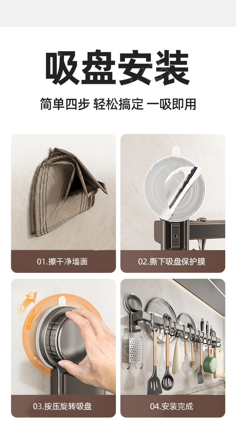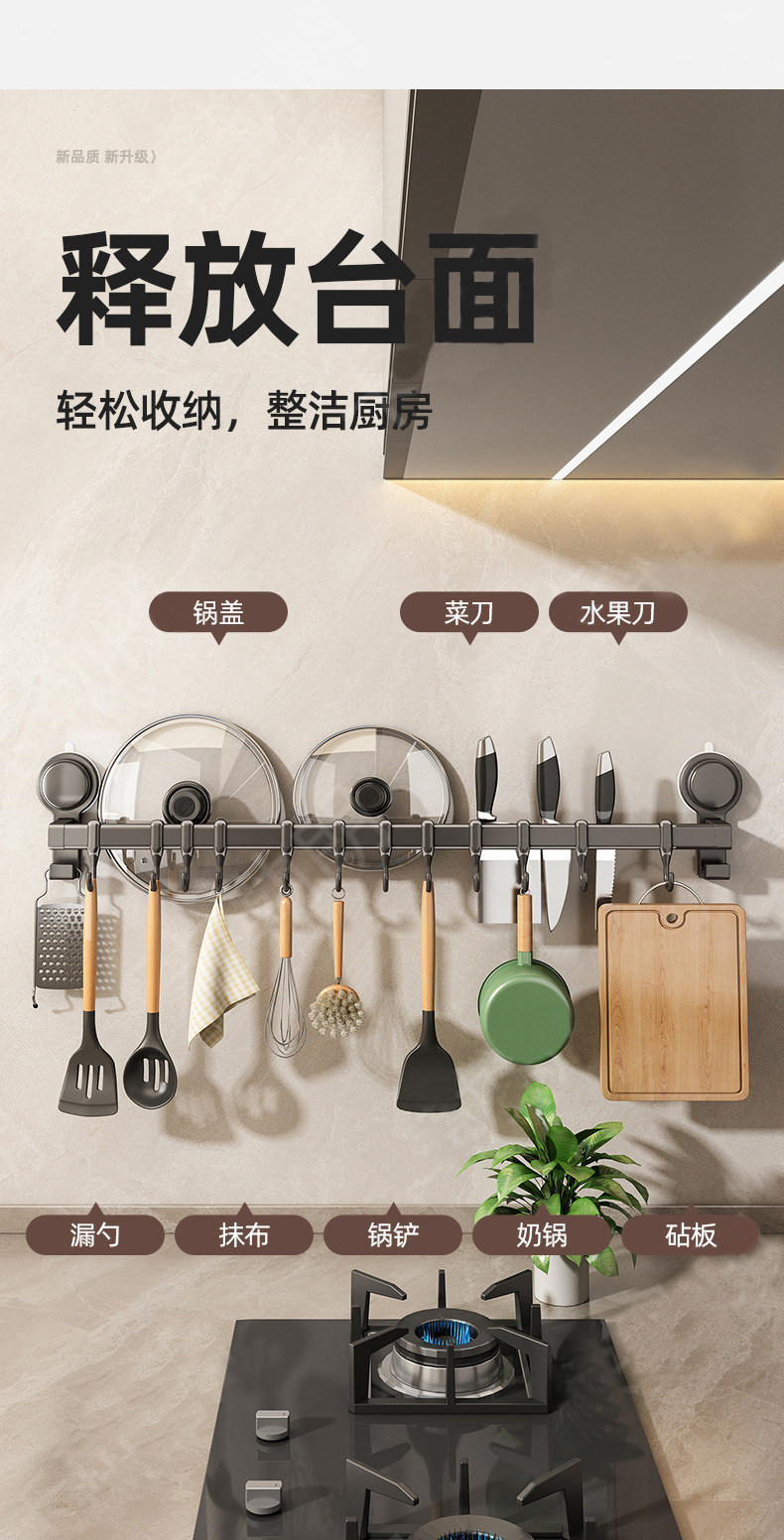 French Ziwoo Kitchen Suction Cup Hook, Punch-Free Hanging Rod, Spoon Shovel Hanger, Multi-Functional Wall-Mounted Storage Rack