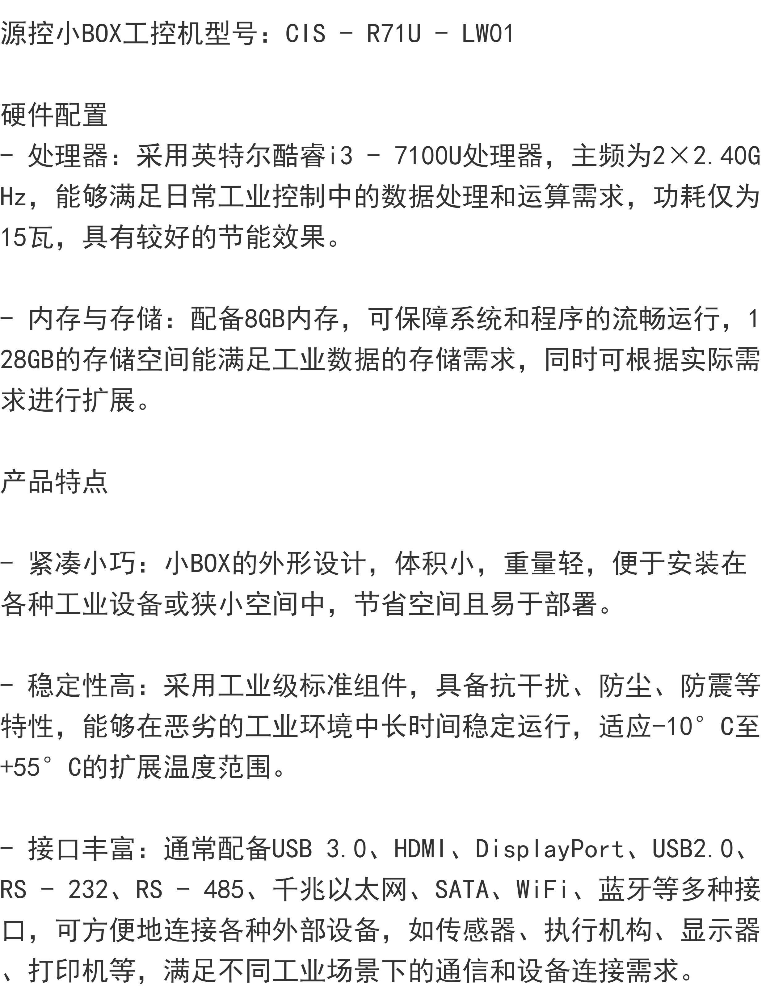 Spes Tech Source-Controlled Embedded Small Box Industrial Computer Cis-R71U-Lw01
