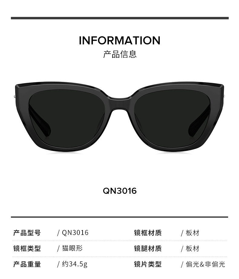 QINA Qina glasses and sunglasses for women 2025 new cat eye large frame polarized sunglasses for men QN3016