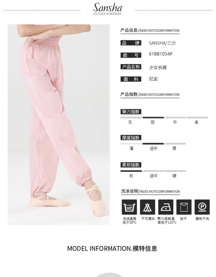 Sansha Sansha Girls' Fitness Wear Dance Exercise Sweat-Wicking Warm-Up Pants Practice Trousers Ballet Training Pants