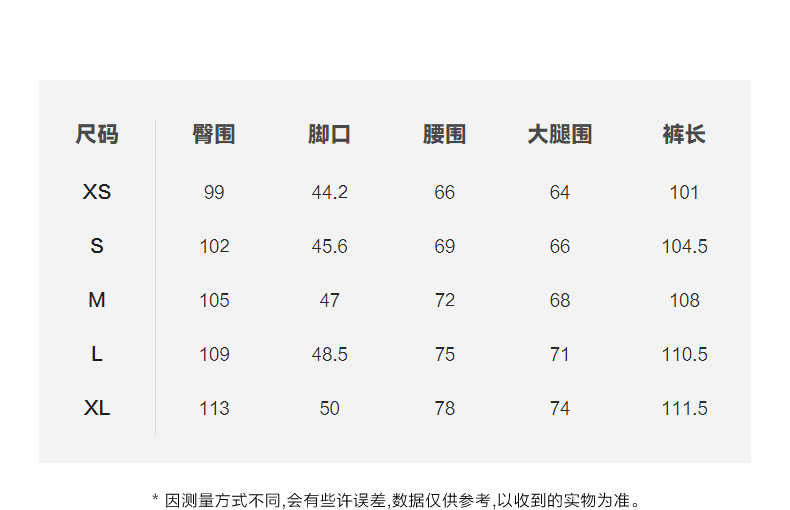 Outseam (cm) 99 cm 101.5 cm 104 cm 106.5 cm 109 cm