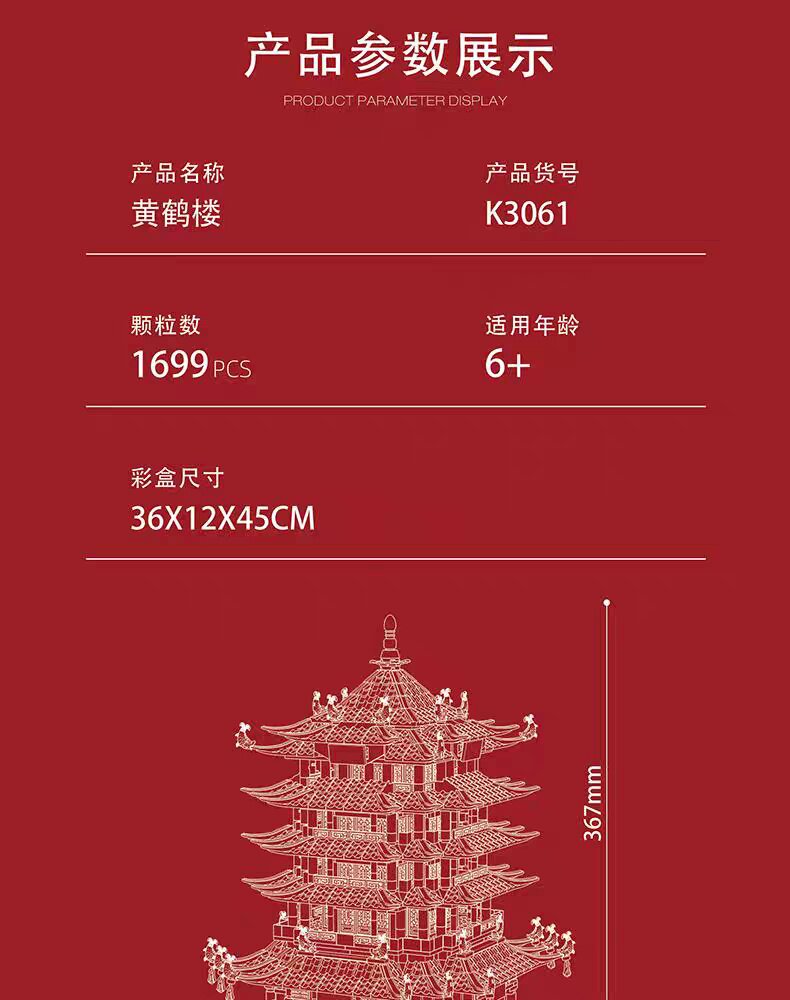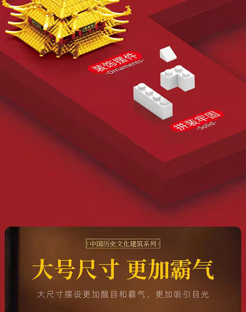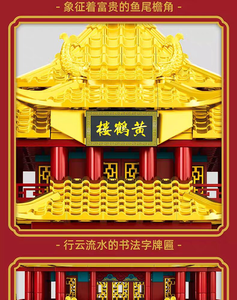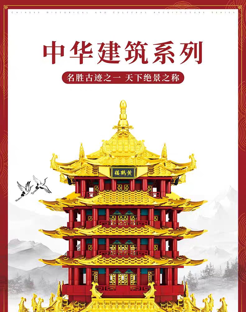 Mindy China Yellow Crane Tower building blocks 8-12 years old and above boys and girls construction assembly toys four famous building blocks