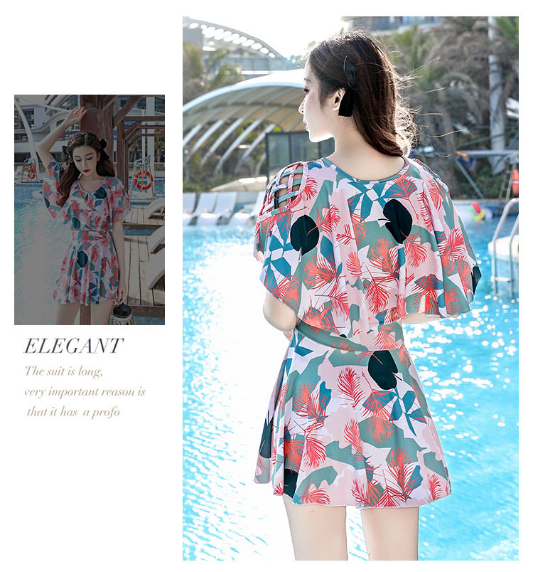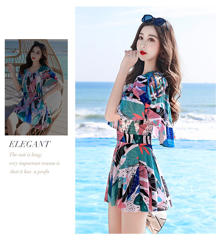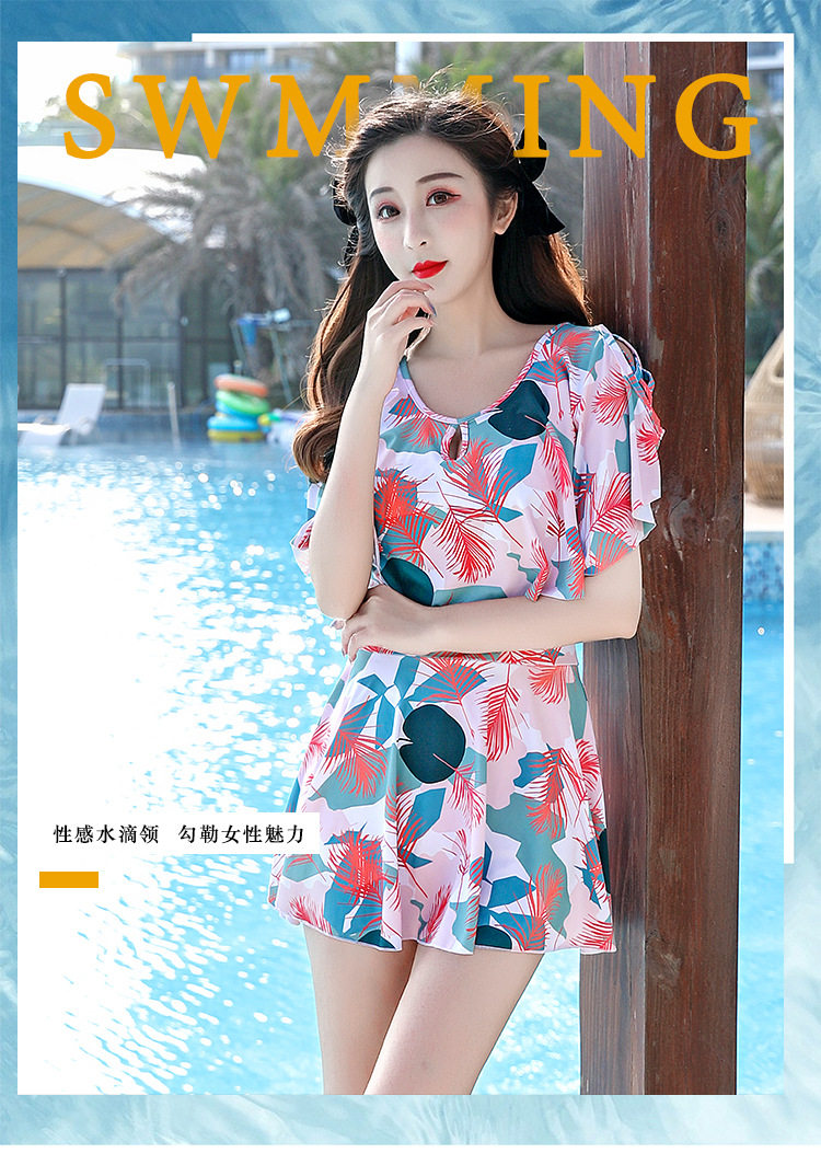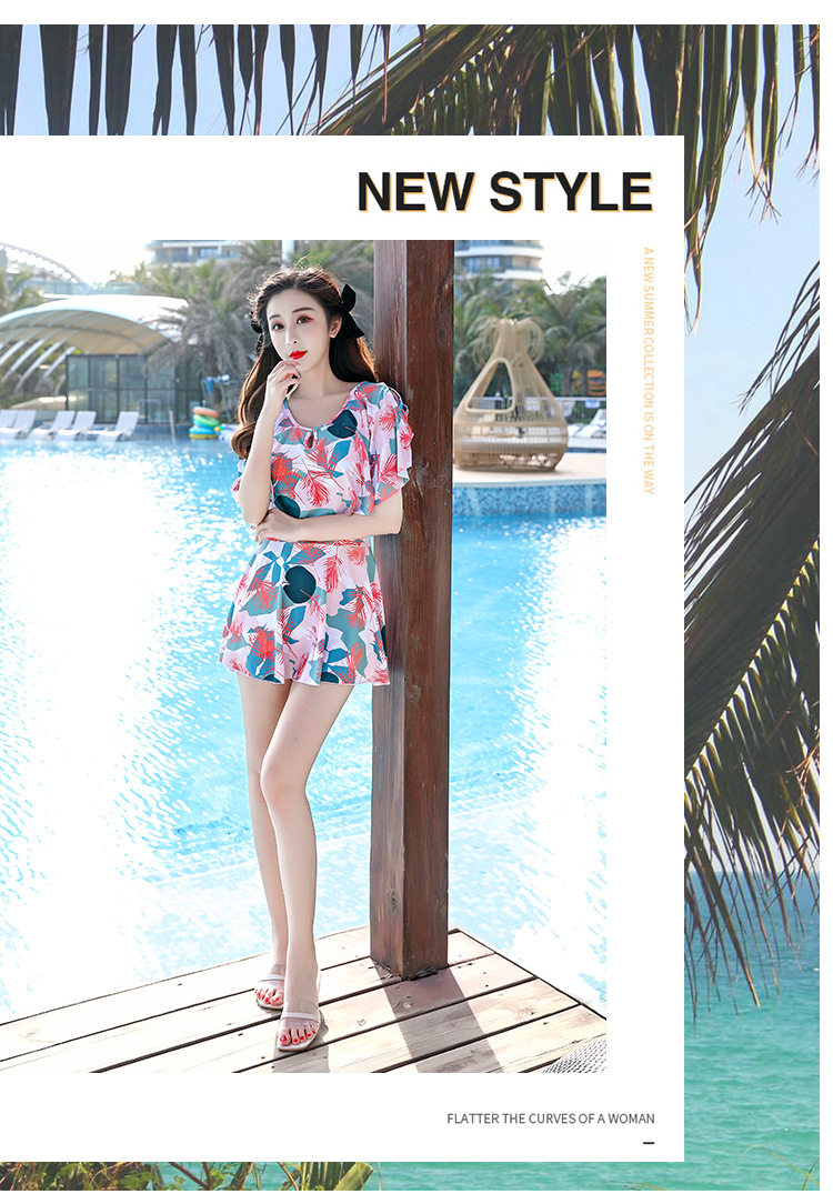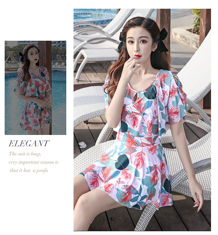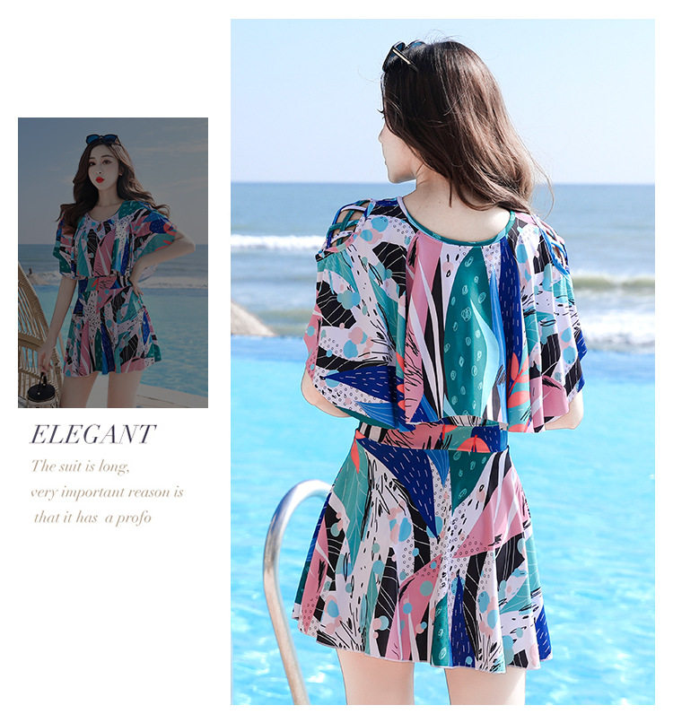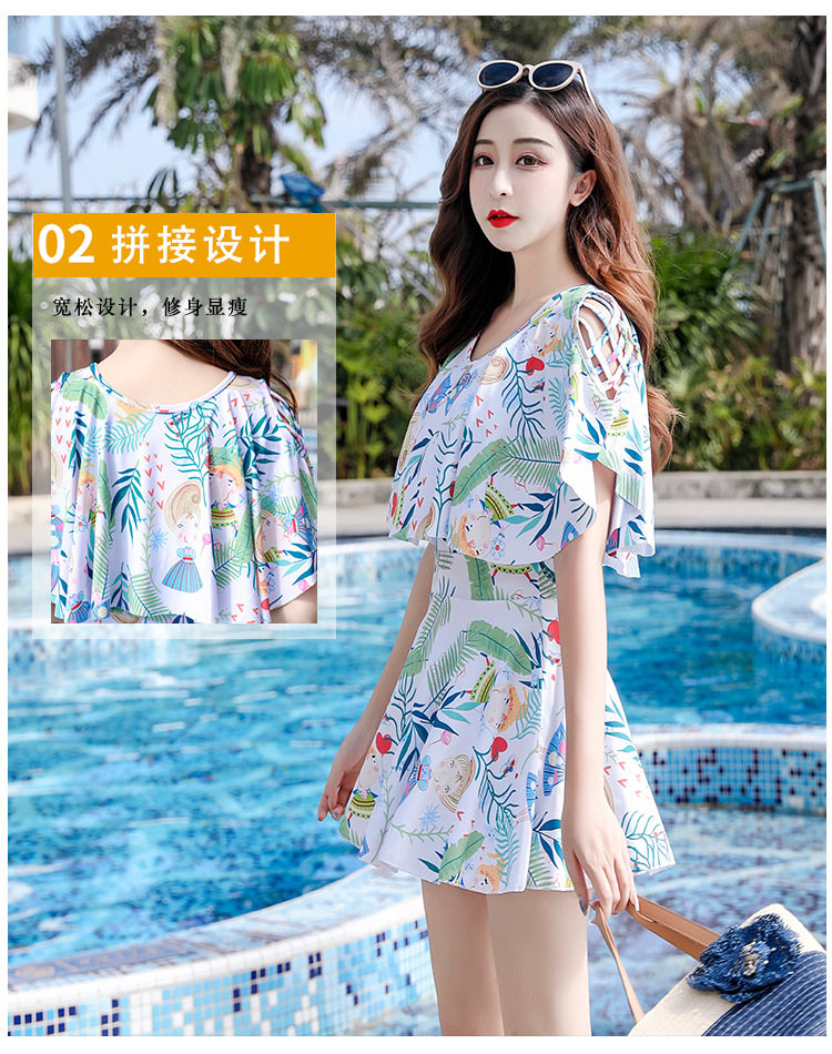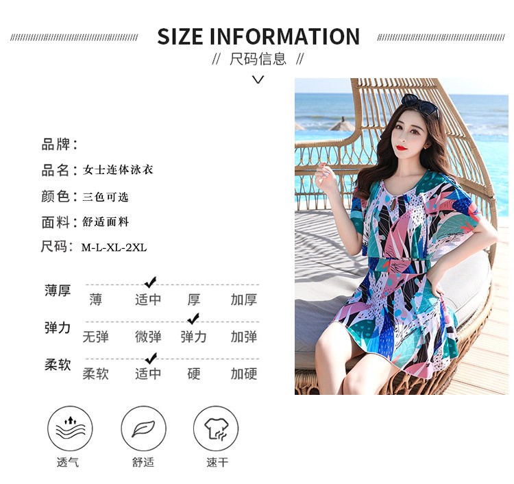 Swimsuit for Female Students, Fashionable, Slim, Loose, Conservative One-Piece, Large Size, Fat Mm, Sleeves, Belly-Covering, Quick-Drying Swimsuit