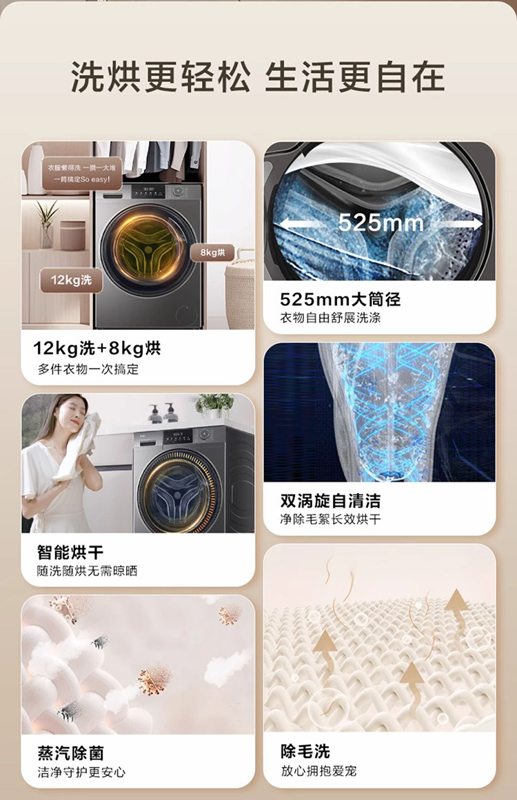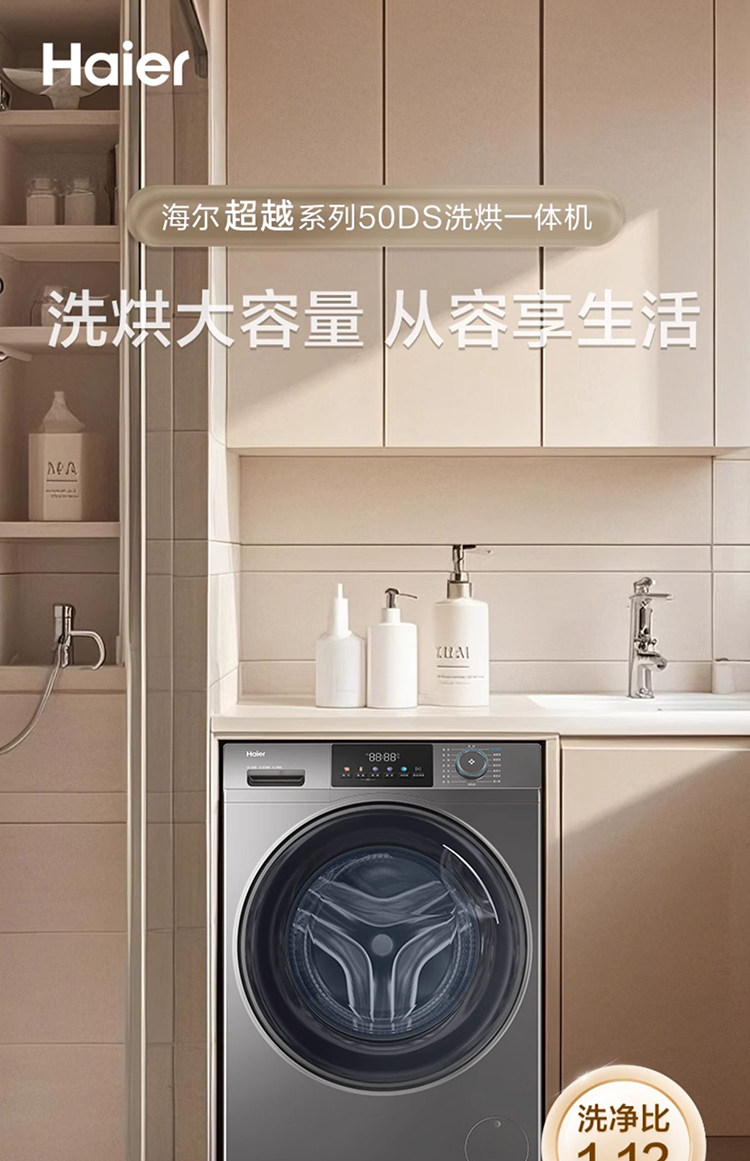 Haier/Haier Xqg120-Hl50Ds Drum Washing Machine for Home Use, Fully Automatic, Super Large Capacity, Washing and Drying Integrated