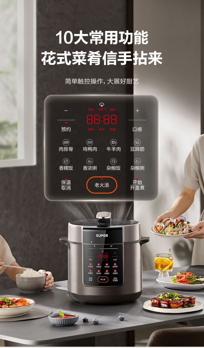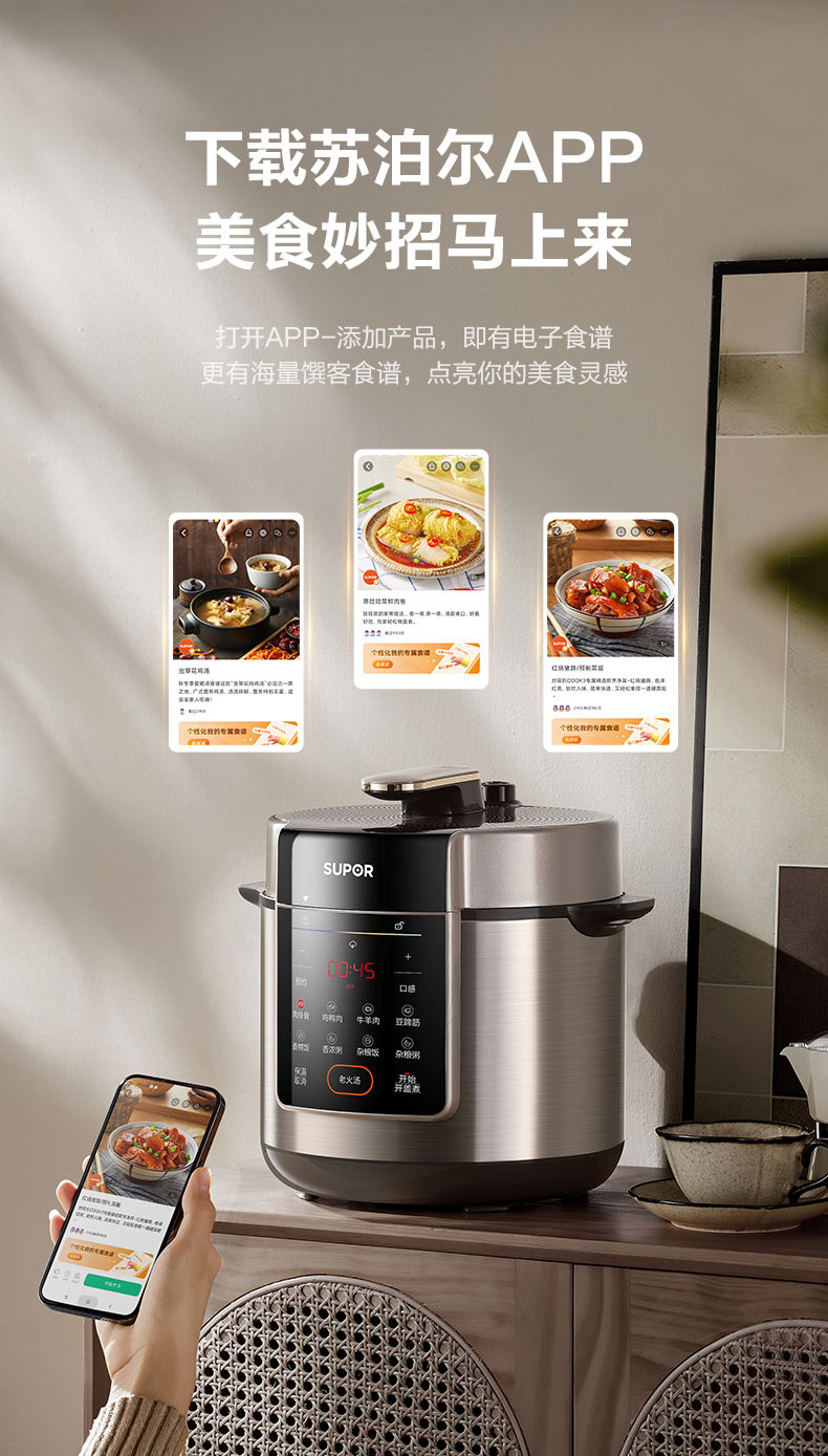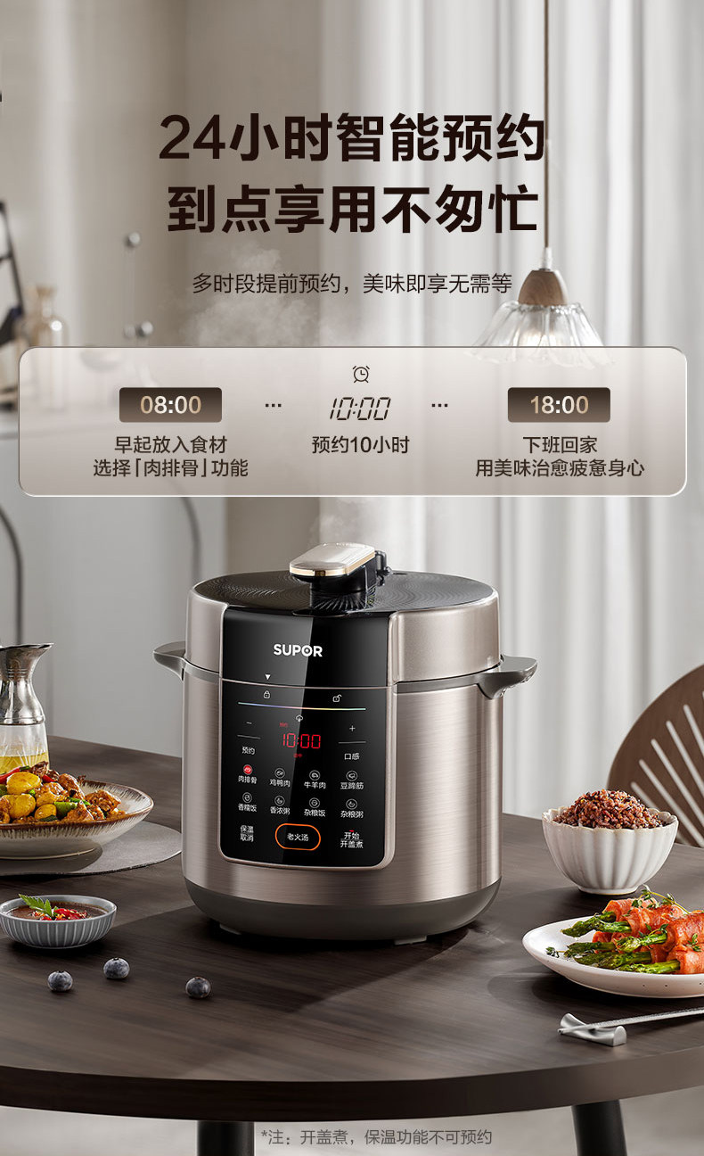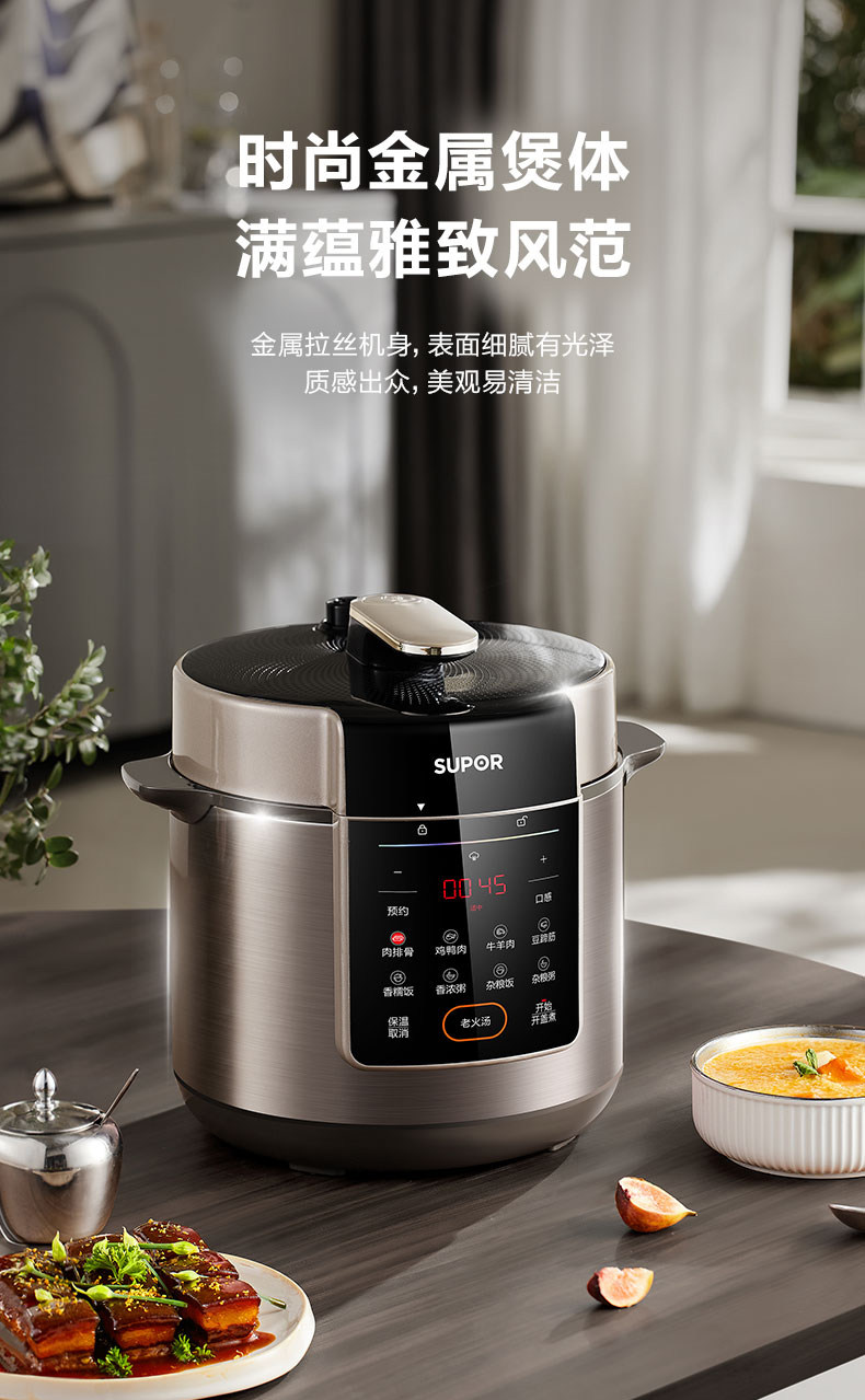 Supor Electric Pressure Cooker for Home Use, 6L Stainless Steel, Non-Coating, Smart New Model, Dual Pot Rice Cooker
