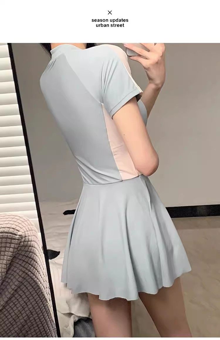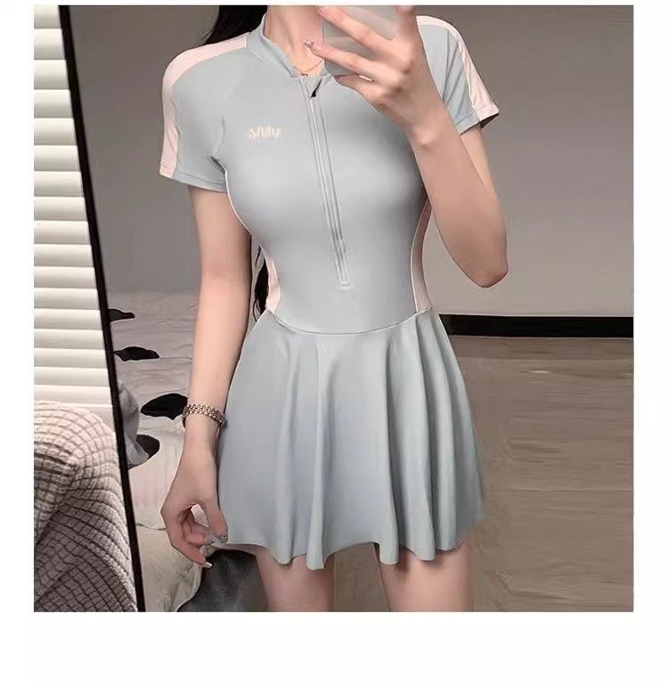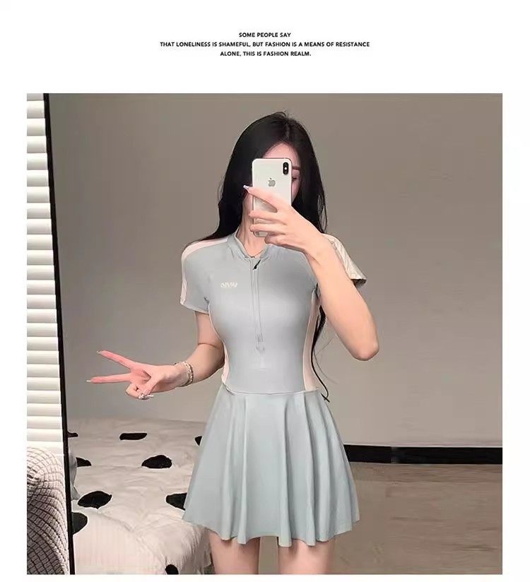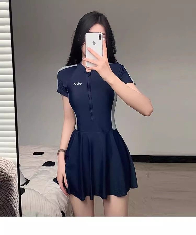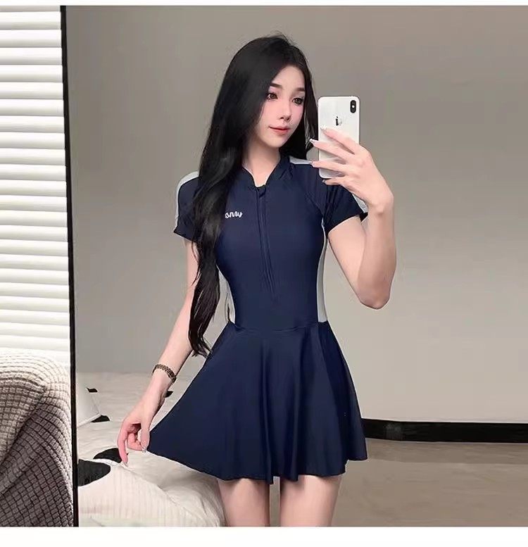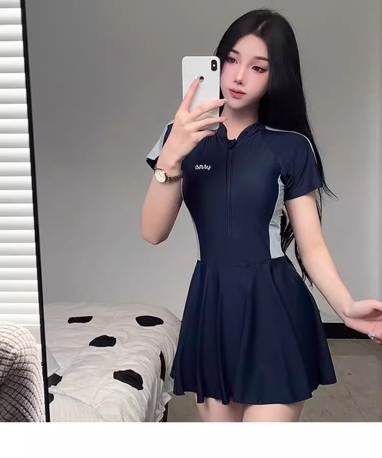 New Style Swimsuit for Women, Summer Conservative One-Piece Skirt Style, Sporty Style ins Covers Belly, Slimming, Outdoor Student Hot Spring Swimwear