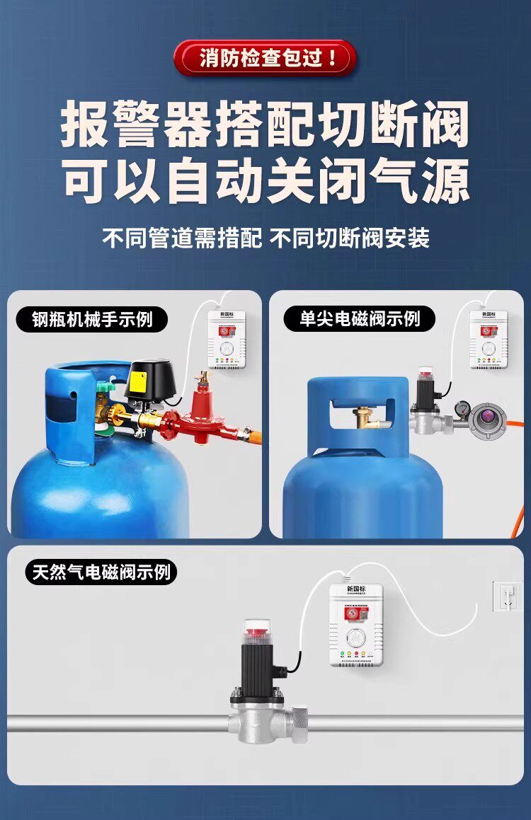 Color Classification Fire Protection Recommended: Automatic Shut-Off Gas Alarm,Natural Gas Detector + Dn20 3/4" Straight Connector Valve,New National Standard [Natural Gas Alarm] +Dn25 1inch Port Straight-Through Valve,New National Standard [Natural Gas Alarm] + Direct Pipe Manipulator,New National Standard Natural Gas Detector + Wireless 1/2" Direct Valve,New National Standard Natural Gas Detector + 2-Wire 1/2" Direct Connect Valve,New National Standard Natural Gas Detector + 3-Wireless 1/2" Direct Valve