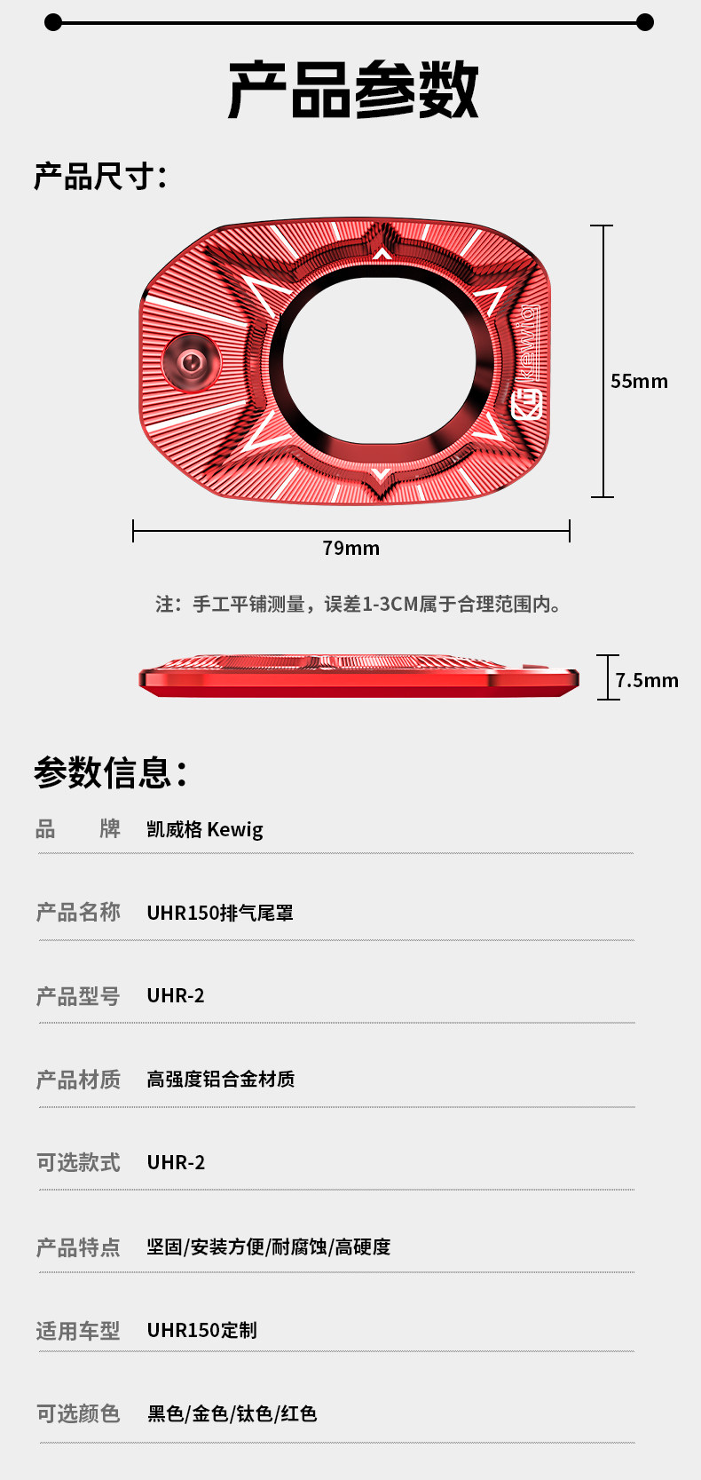 Sort by color UHR-150 electric door lock decorative cover (black),UHR-150 electric door lock decorative cover (red),UHR-150 electric door lock decorative cover (gold),UHR-150 electric door lock decorative cover (titanium color),UHR-150 exhaust port protective cover (black),UHR-150 exhaust port protective cover (red),UHR-150 exhaust port protective cover (gold),UHR-150 exhaust port protective cover (titanium color),UHR-150 exhaust port side protective cover (black),UHR-150 exhaust port side protective cover (red),UHR-150 exhaust port side protective cover (gold),UHR-150 exhaust port side protective cover (titanium color),UHR-150 foot support (black),UHR-150 foot support (red),UHR-150 foot support (gold),UHR-150 foot support (titanium color)