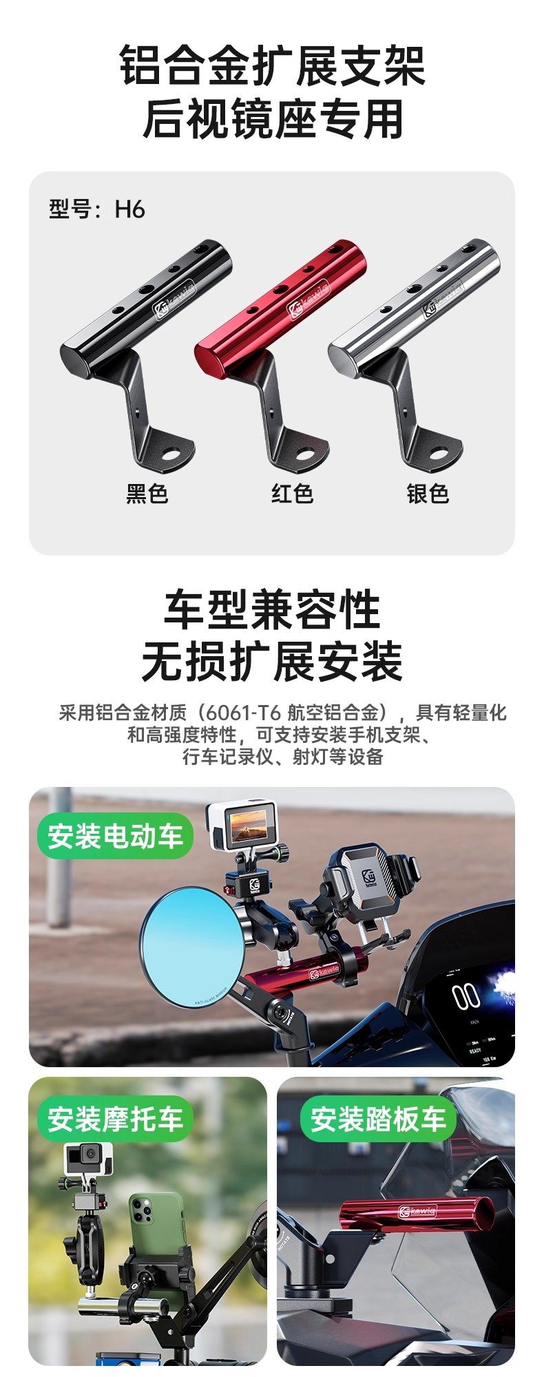 Kaiweige Rearview Mirror Mount Bracket Aluminum Alloy Extension Base Crossbar Pedal Electric Vehicle Rearview Mirror Expansion Bracket