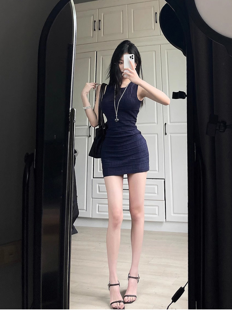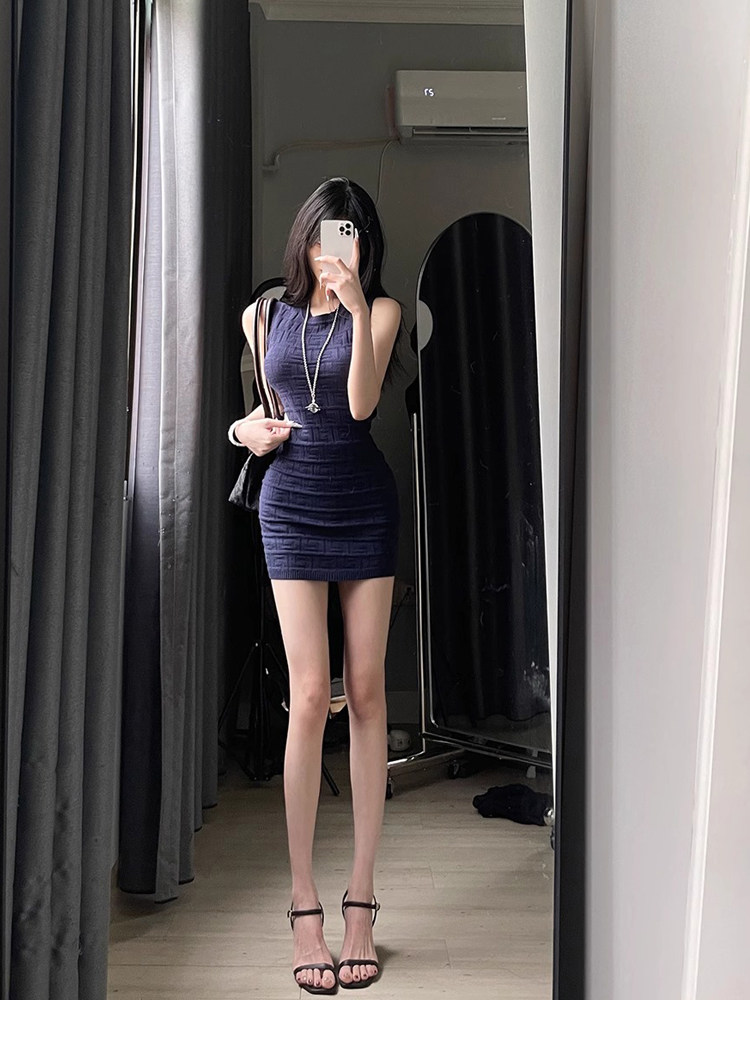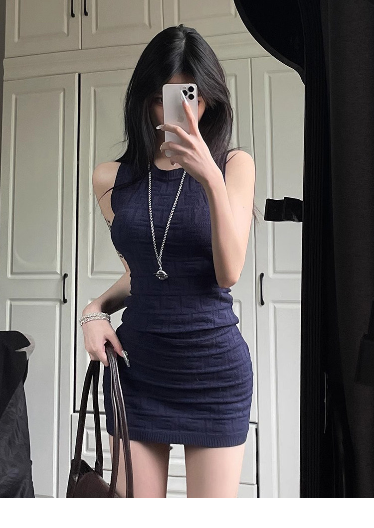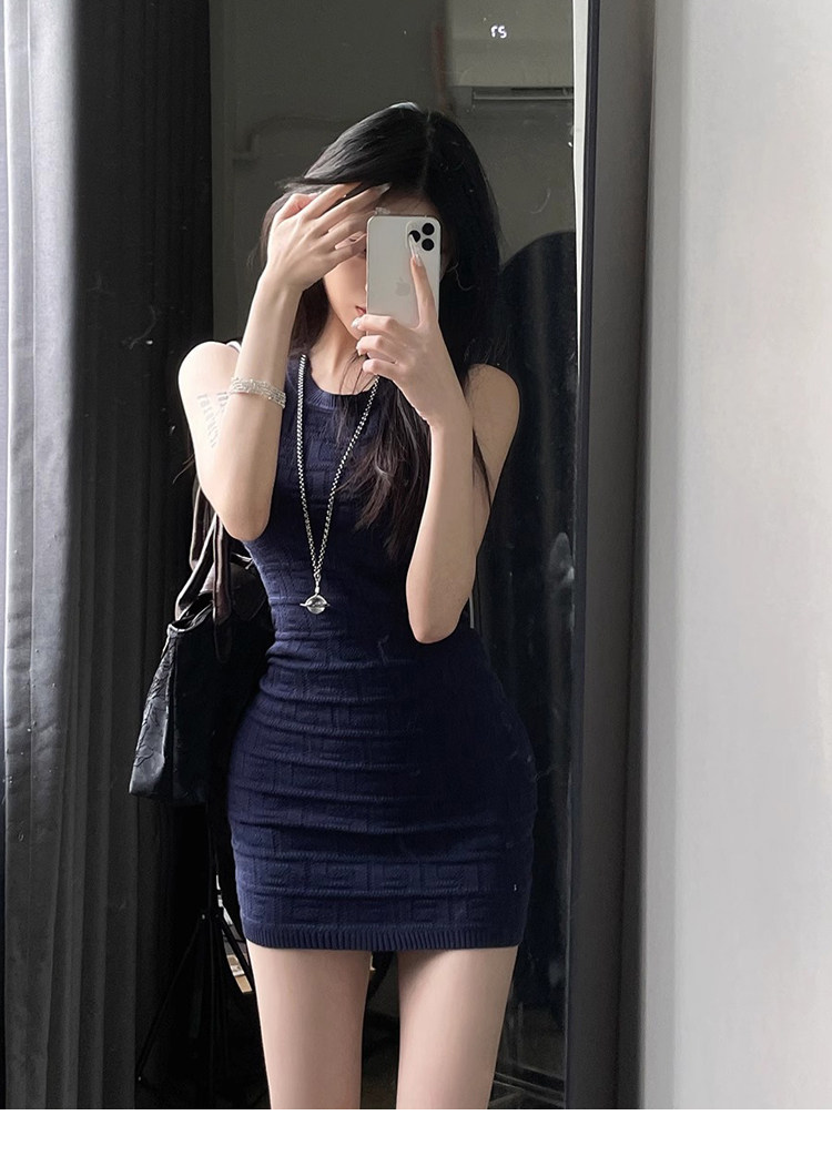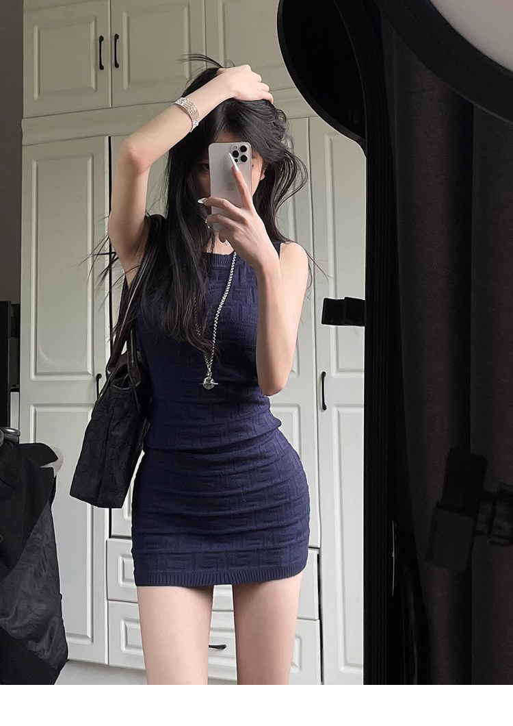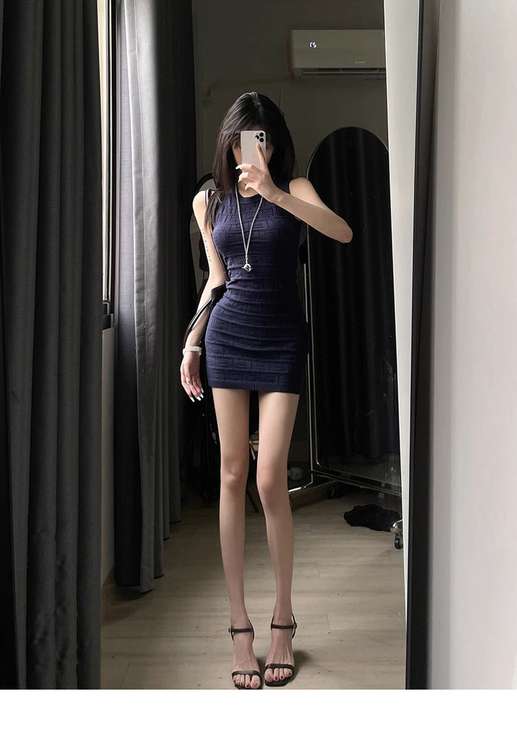 Hot Girl Petite Waist-Slimming Knit Dress Women's Summer High-End Sleeveless Tank Dress Bodycon Short Skirt