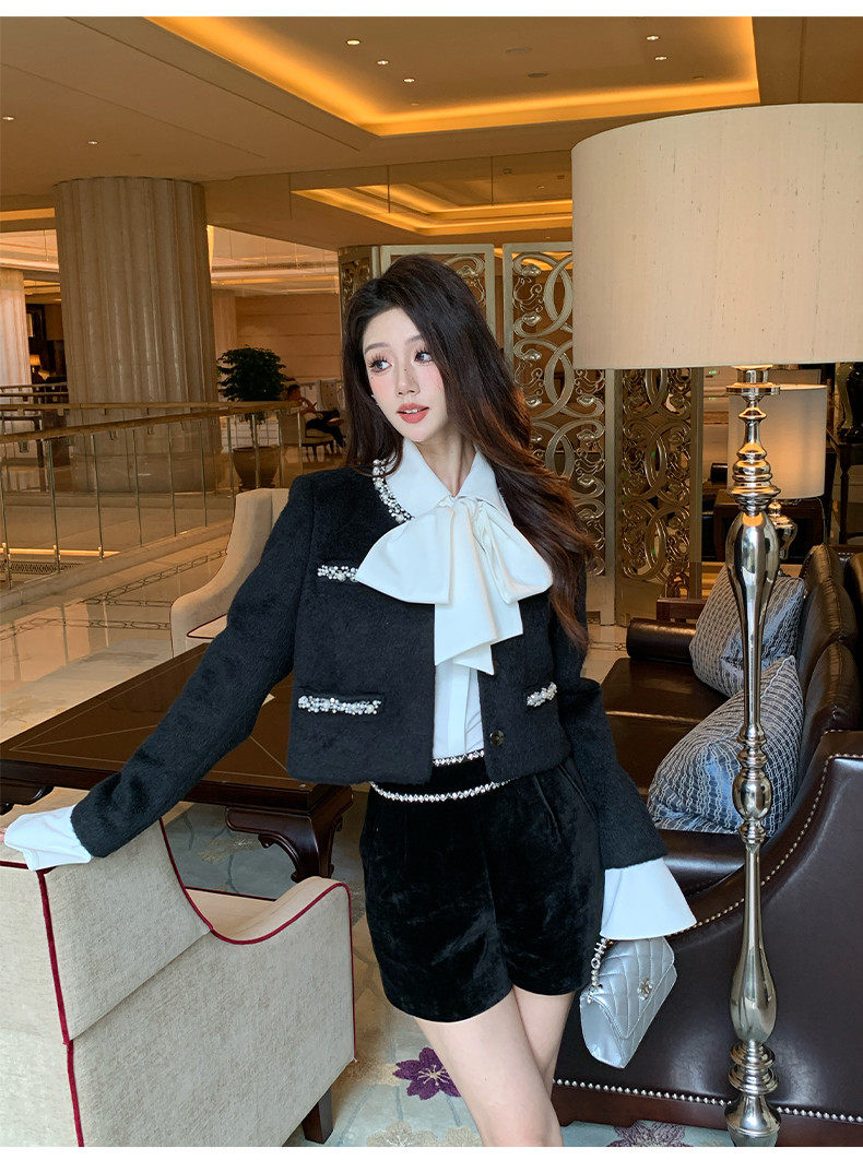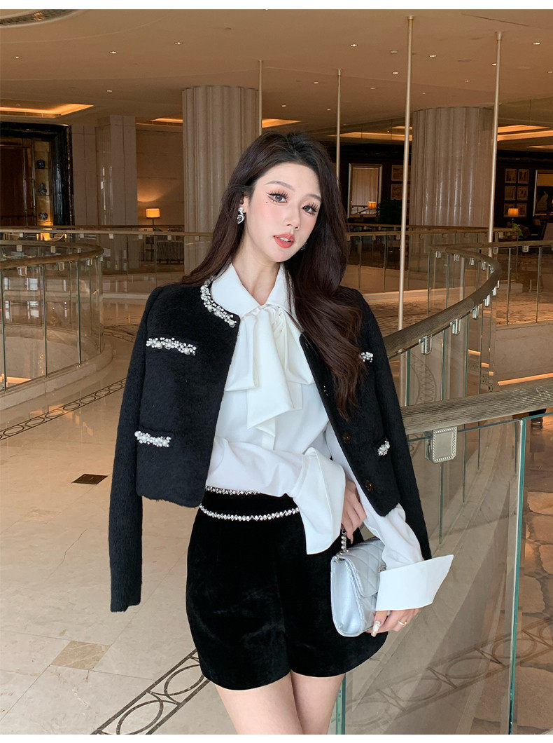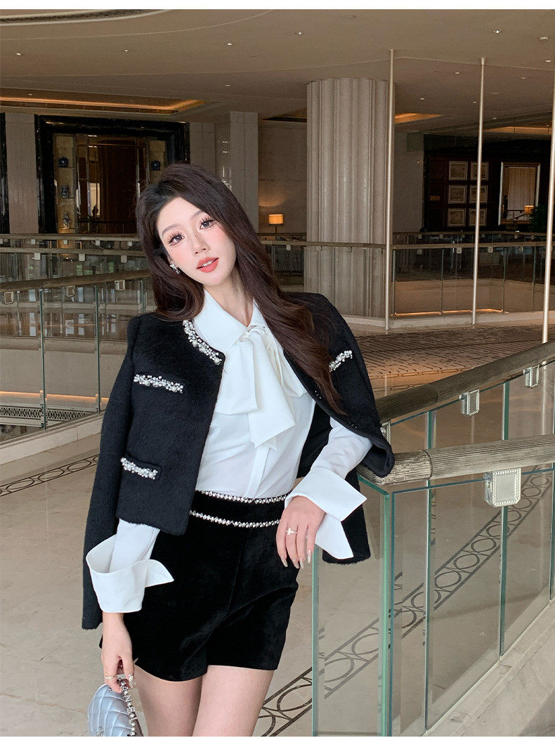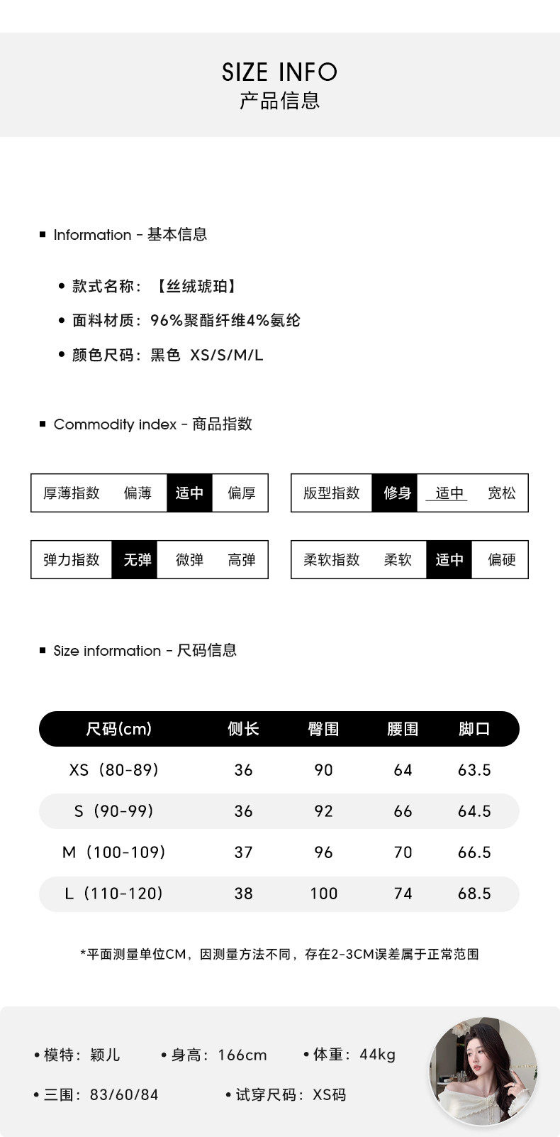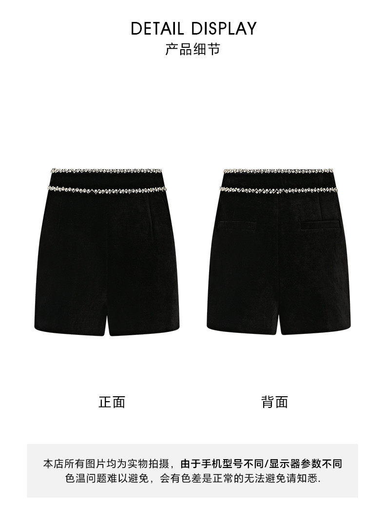 Hollinna Diamond Chain Black Velvet Woolen Shorts for Women, Autumn and Winter 2025 New Style, Petite High-Waisted Straight Pants