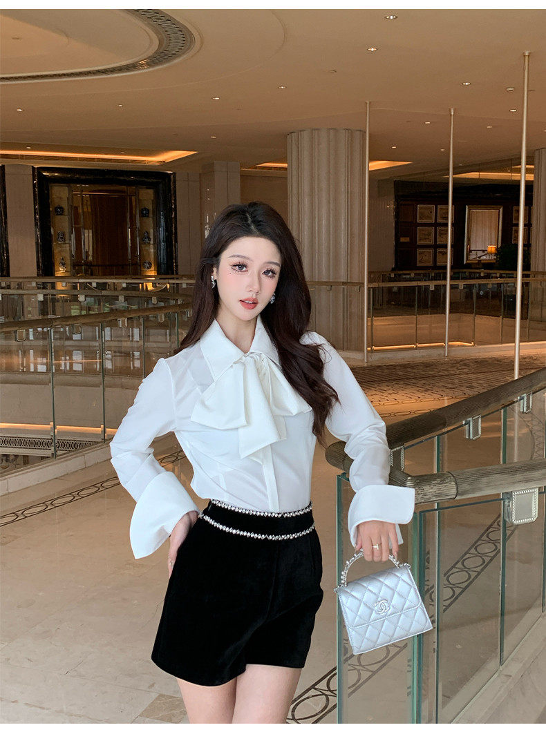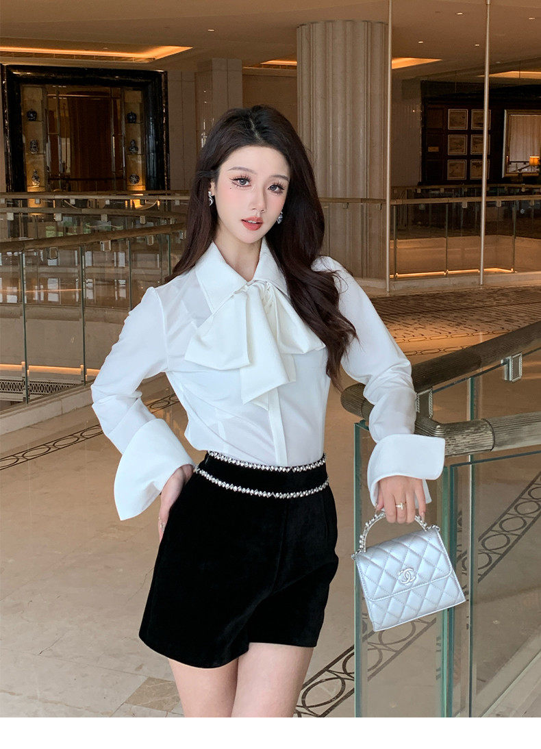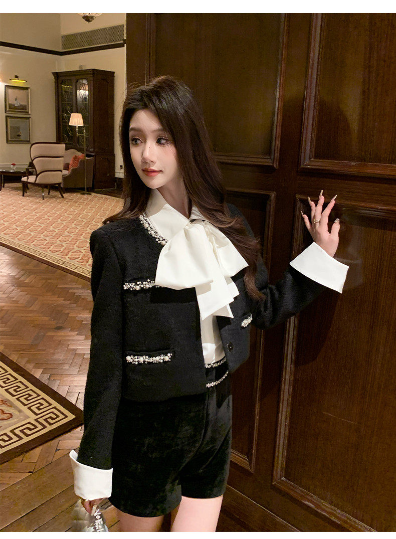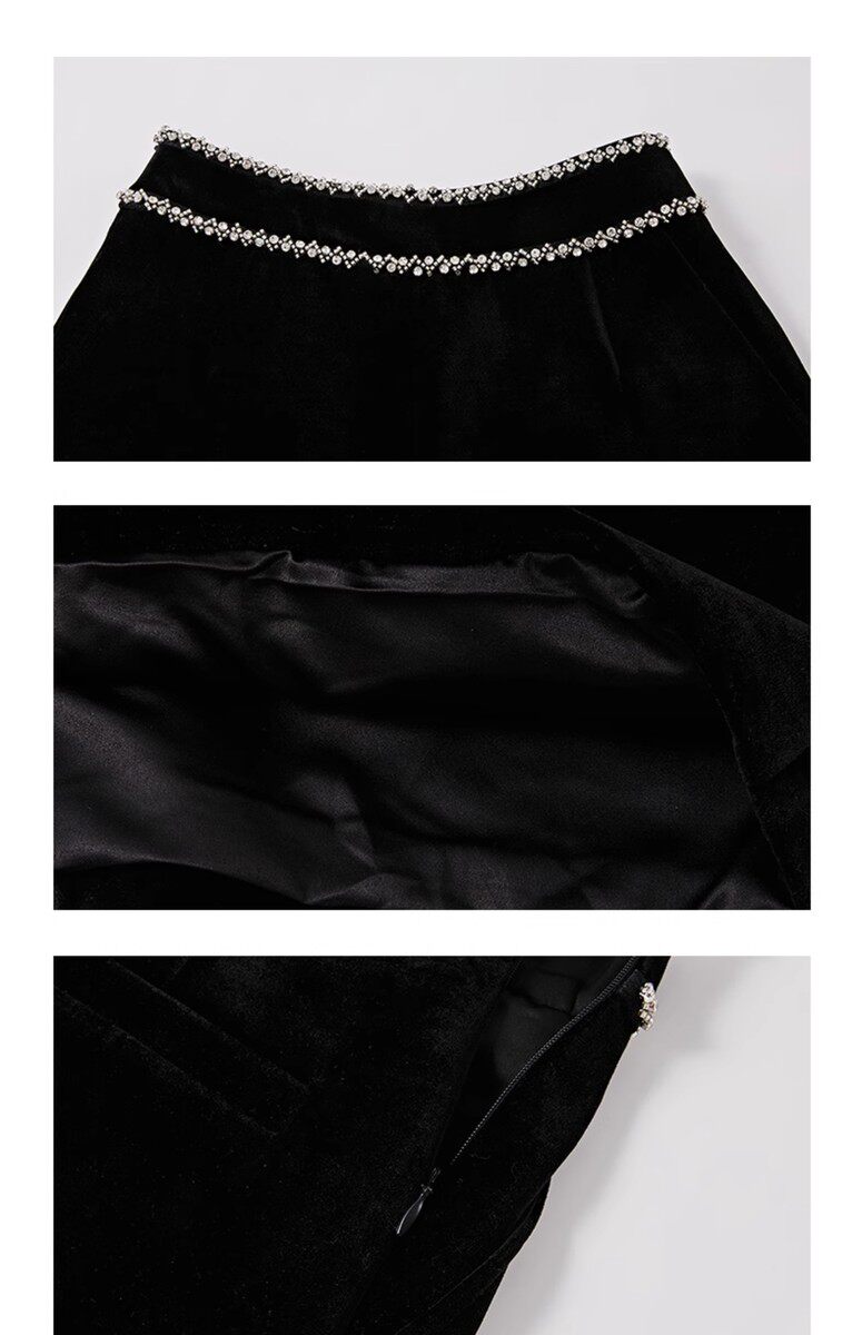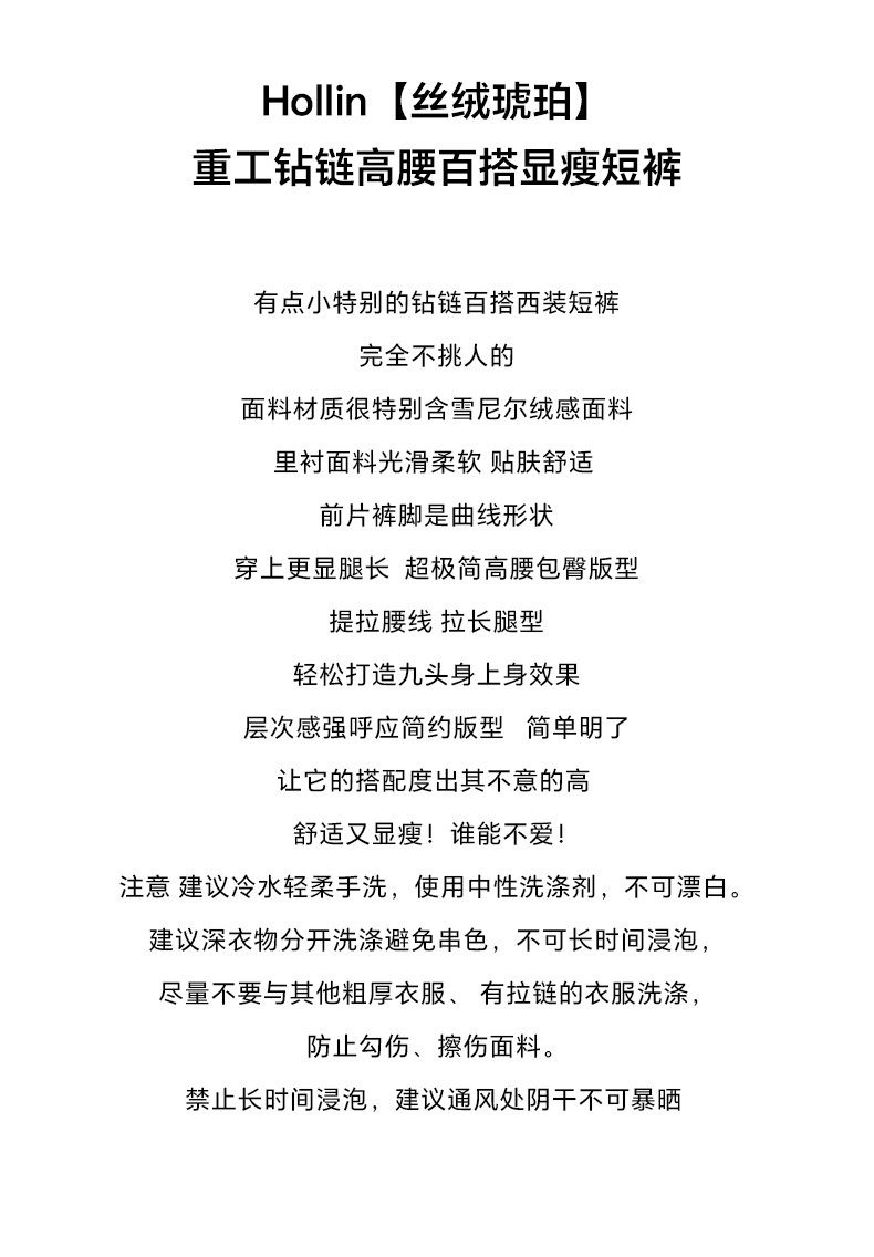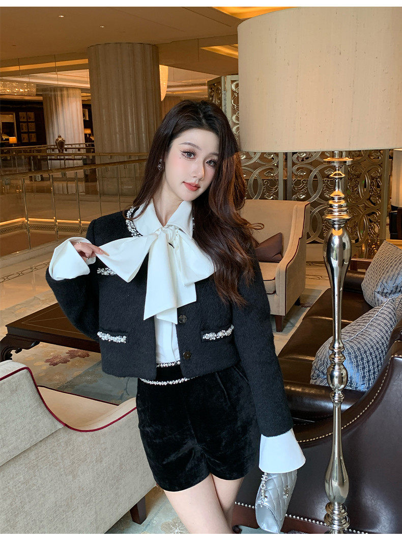 Hollinna Diamond Chain Black Velvet Woolen Shorts for Women, Autumn and Winter 2025 New Style, Petite High-Waisted Straight Pants