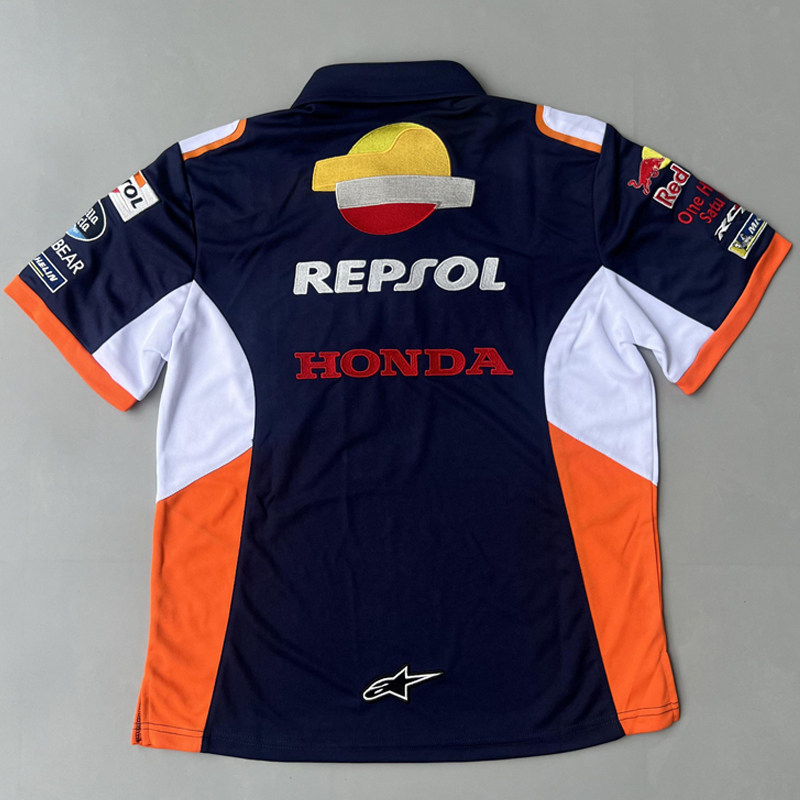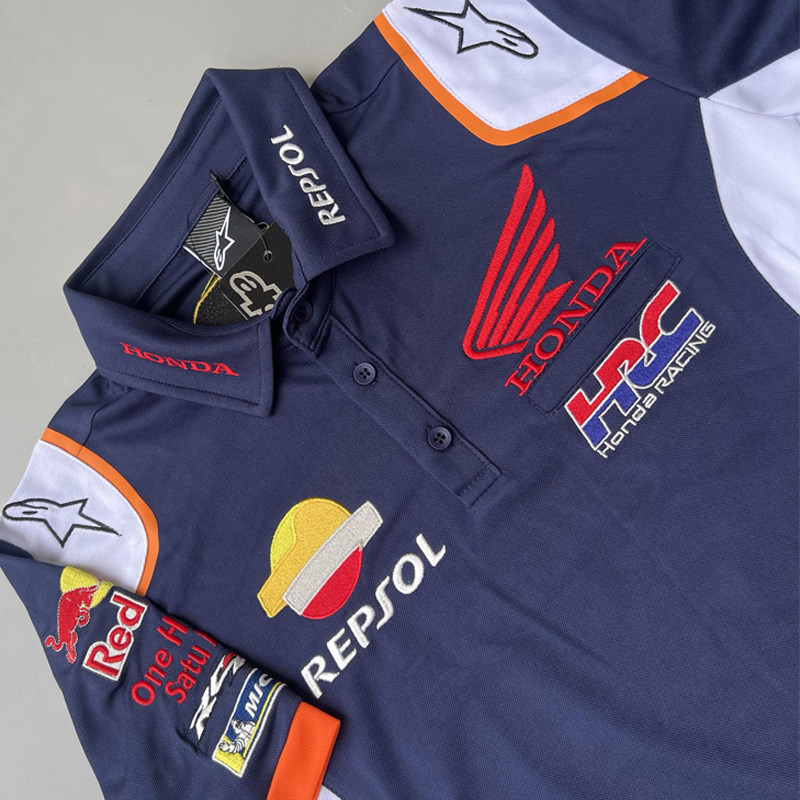 Suitable for a Xingwei Shuang Motorcycle Short-Sleeve Marquez Hrc Lapel Fully Embroidered Factory Team Uniform Motogp Quick-Drying Summer