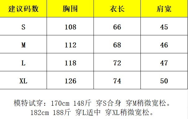 China (cm) 165 / 88-90 170 / 96-98 175 / 108-110 180 / 118-122 185 / 126-130