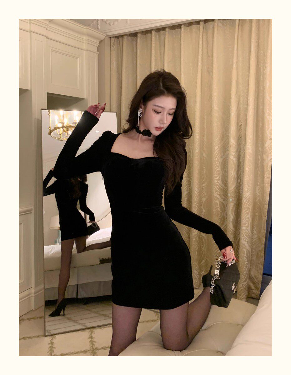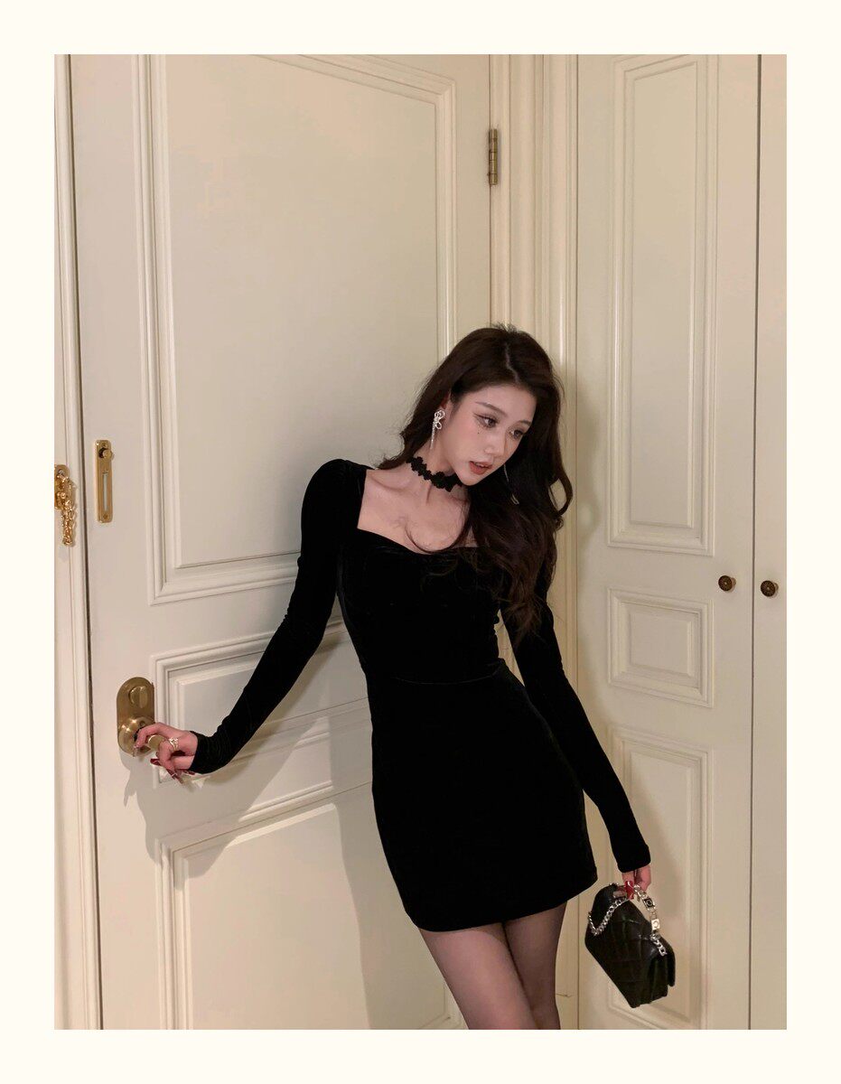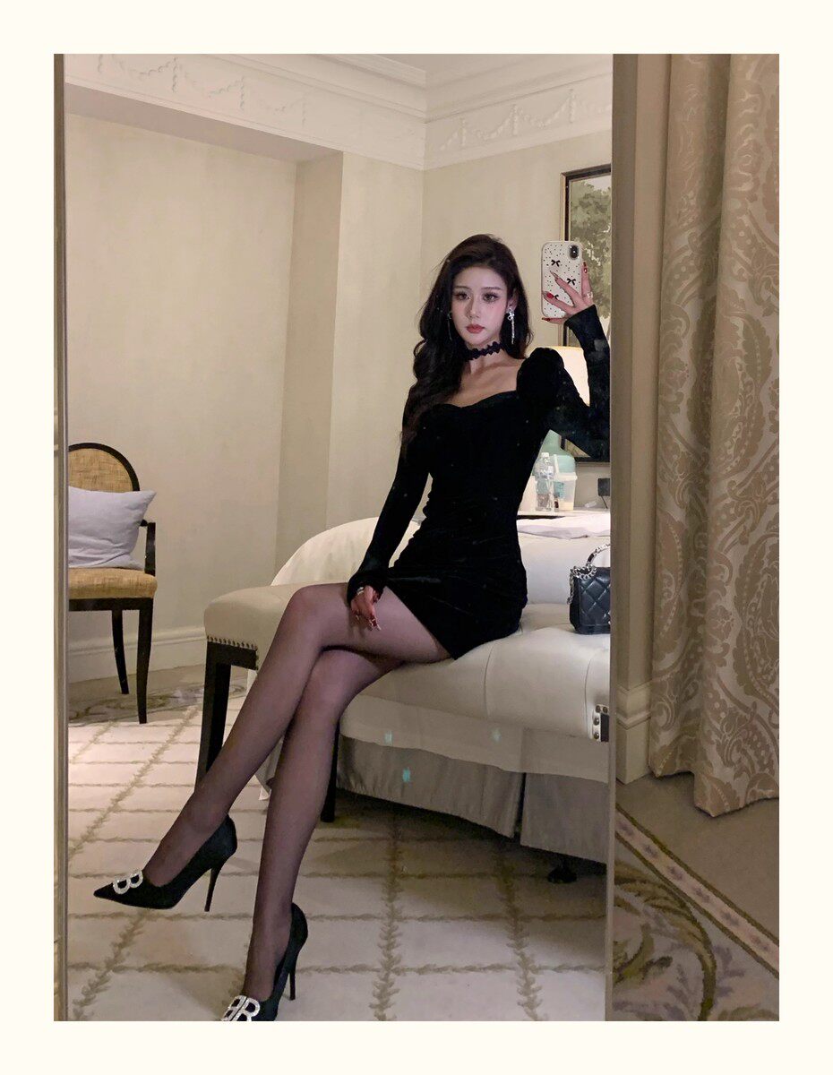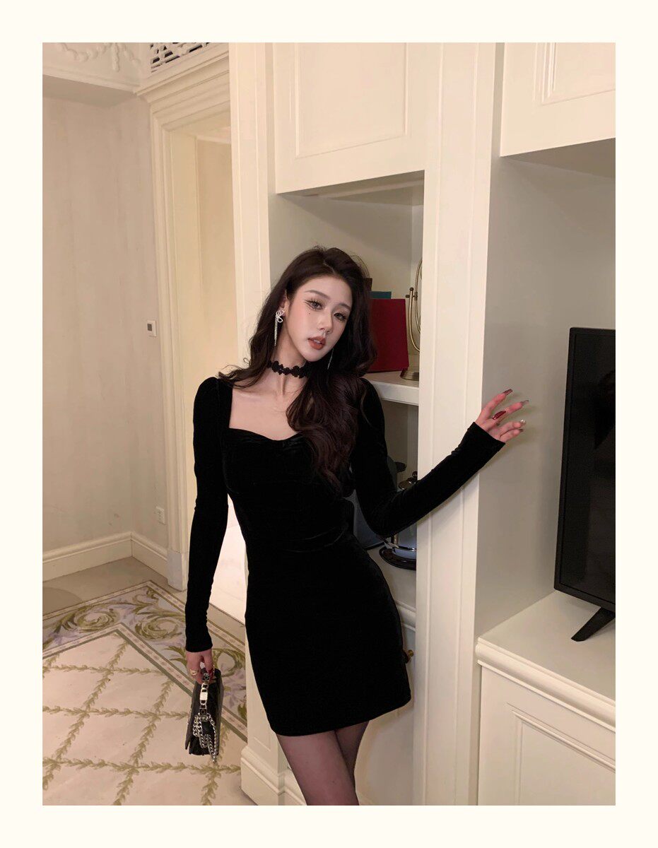 Hollinna Black Dress for Women, Autumn and Winter 2025 New Model, Elegant High-End Velvet Bodycon Slip Dress
