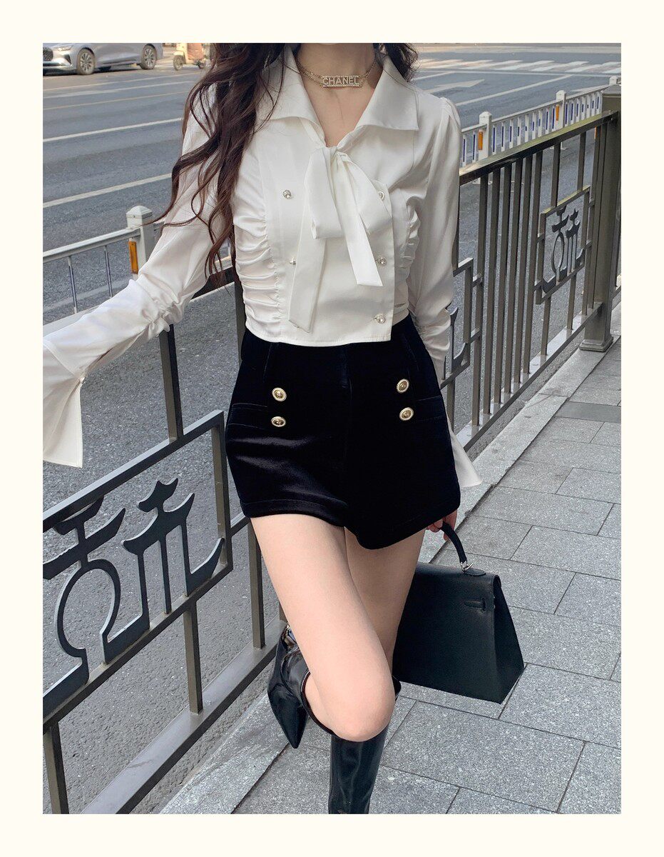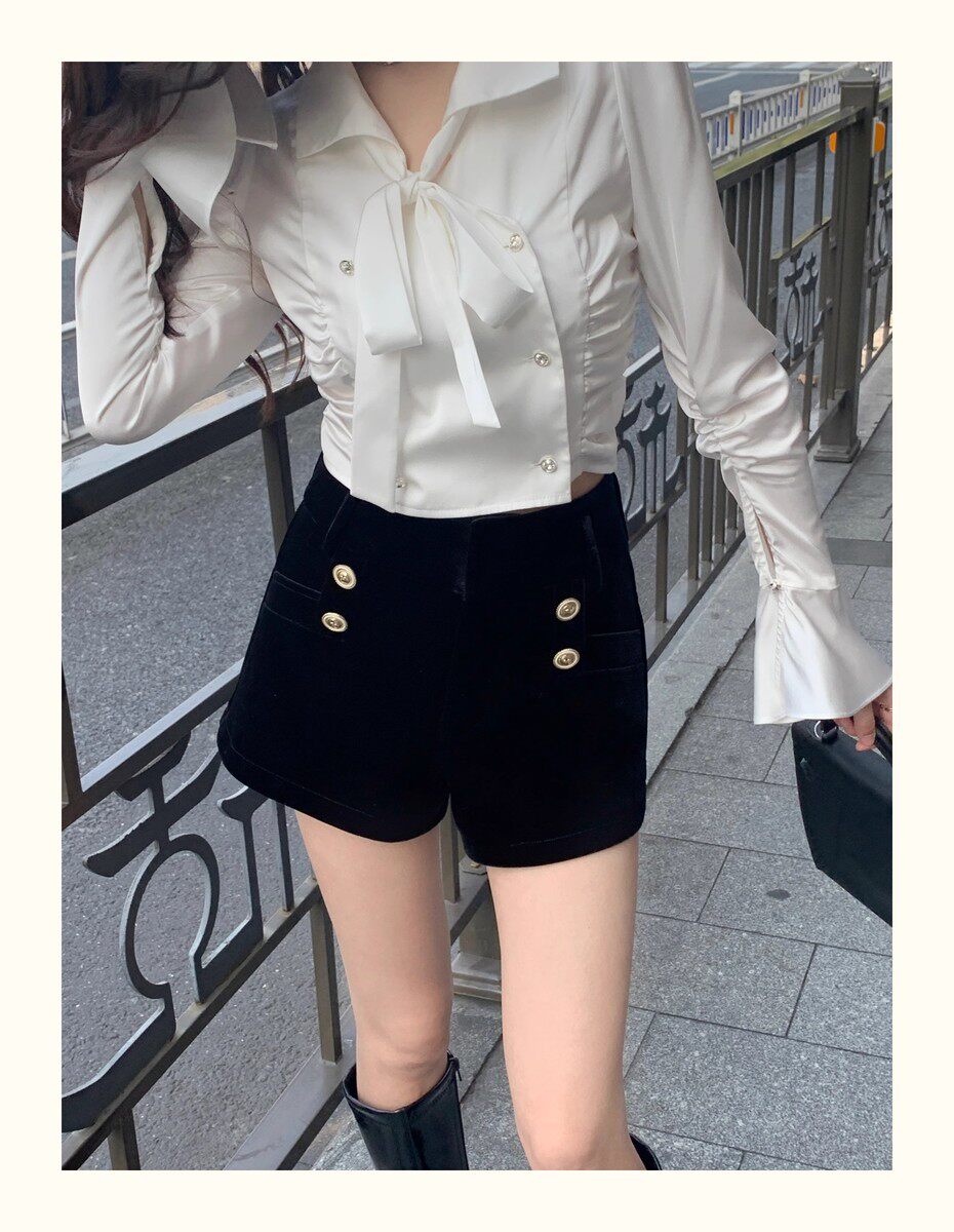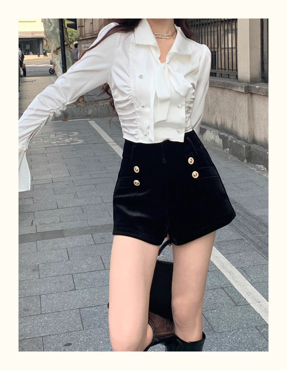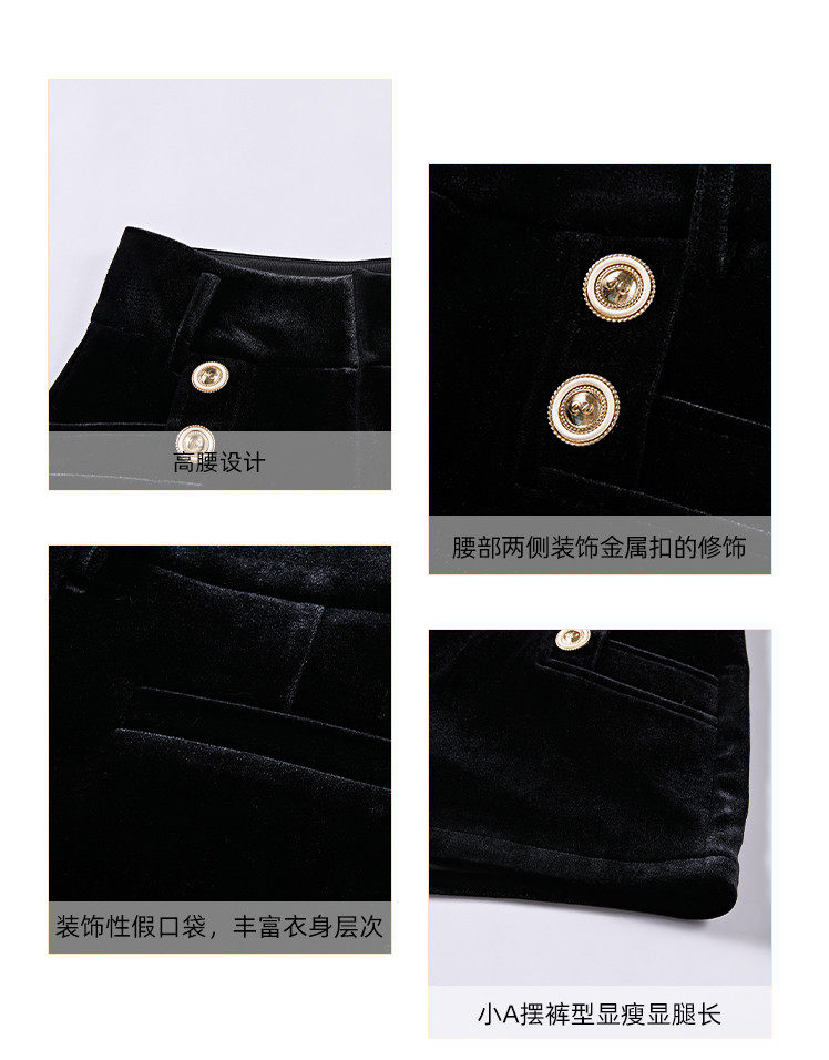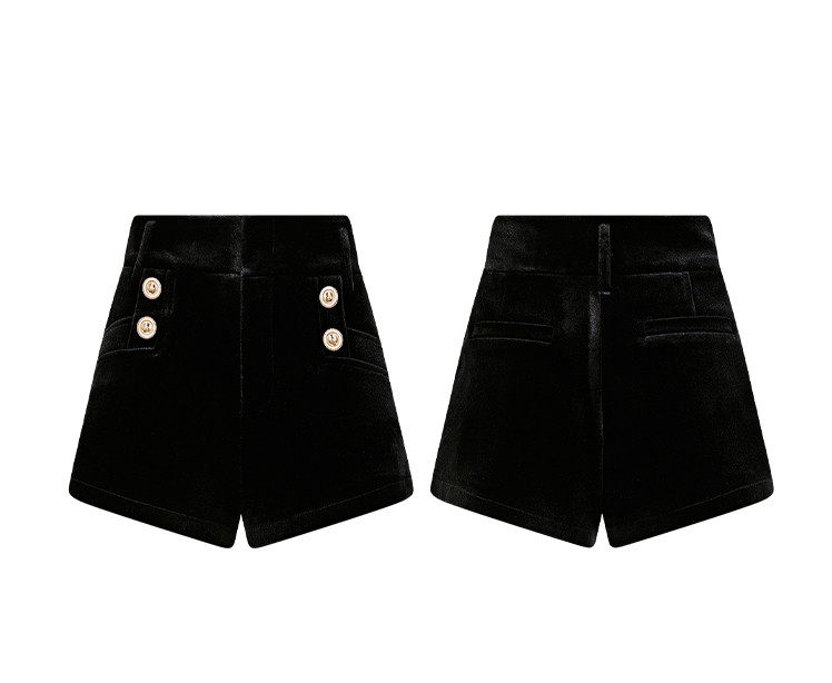 Hollinna High-Waisted Velvet Shorts for Women, Spring and Autumn 2025 New Style, Straight-Leg, Slimming, Trendy, Winter Black, High-End, Versatile