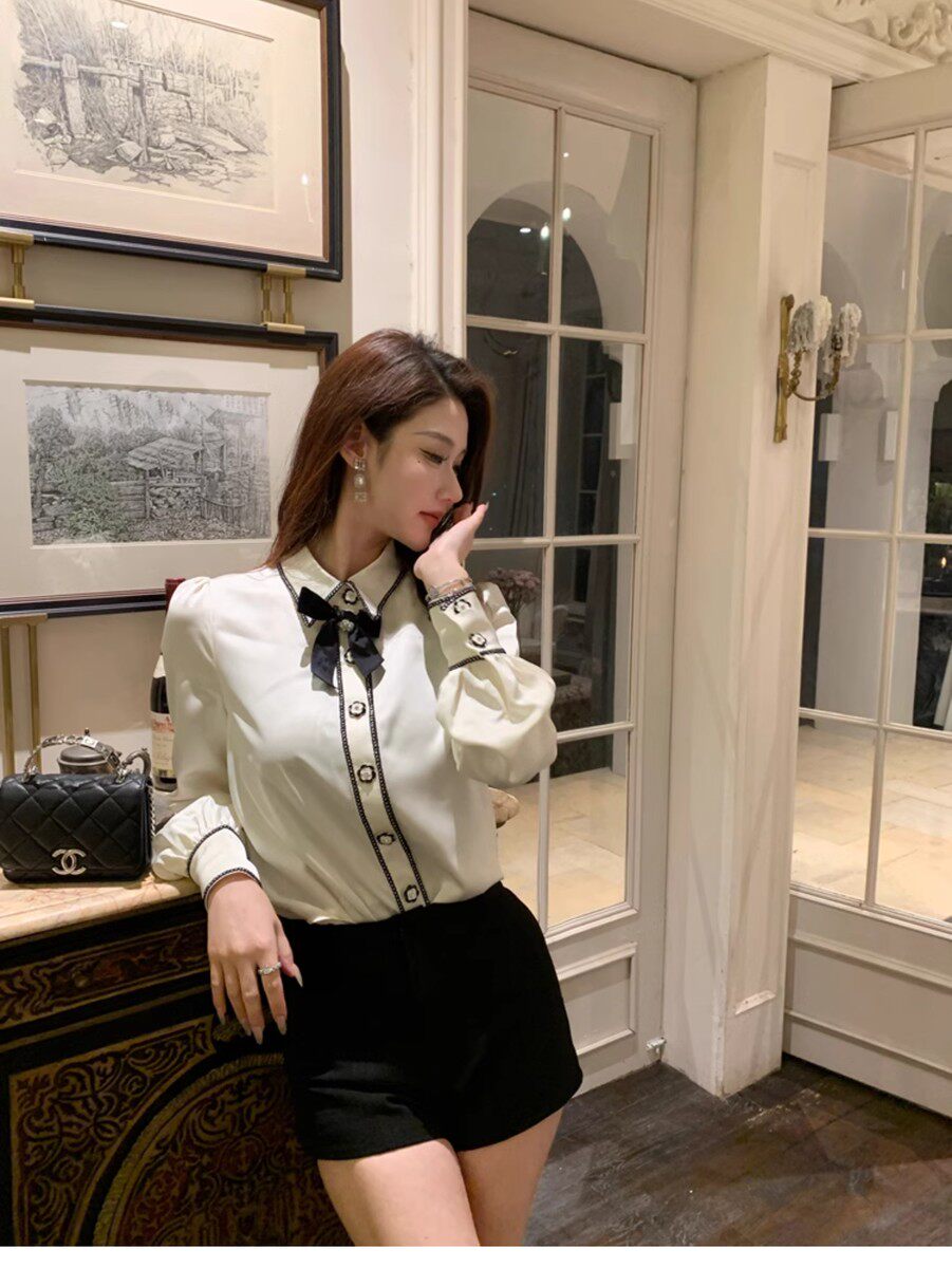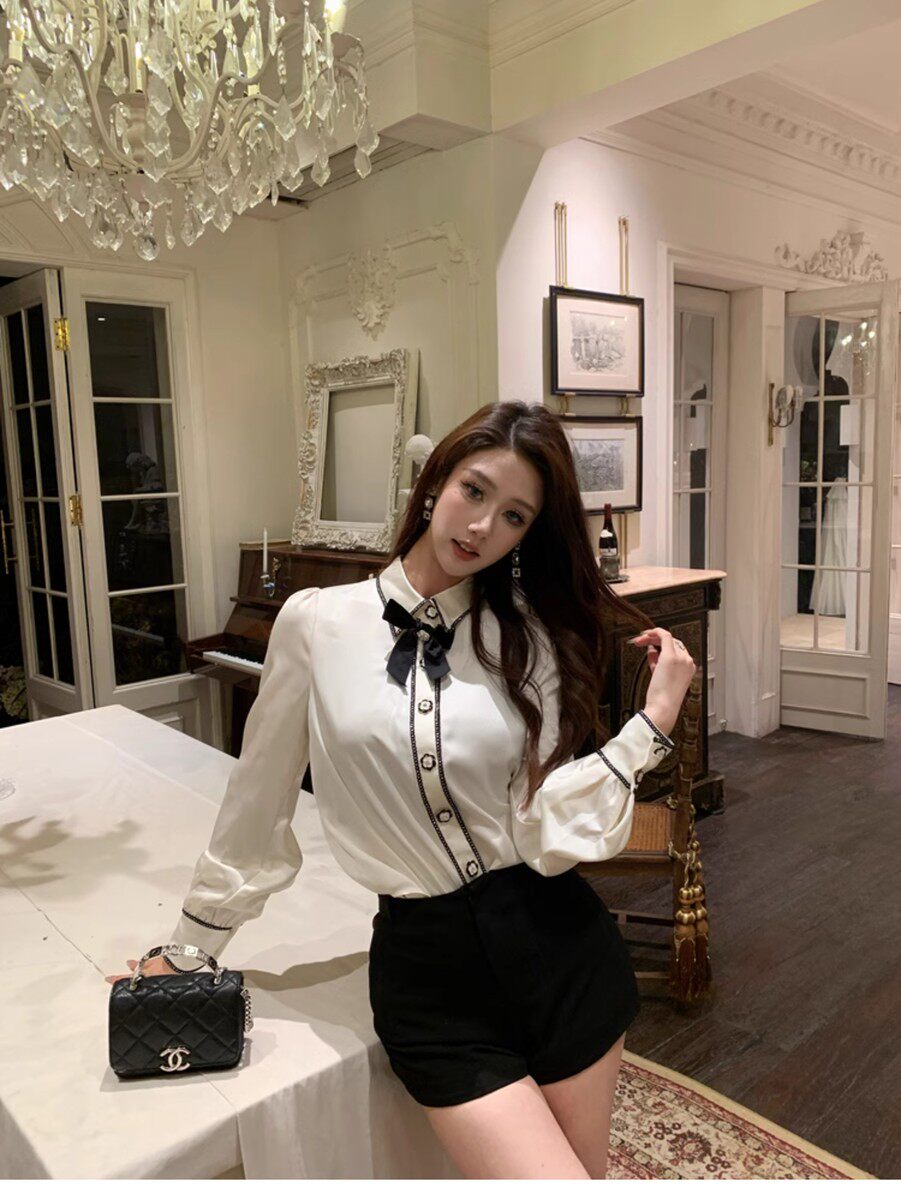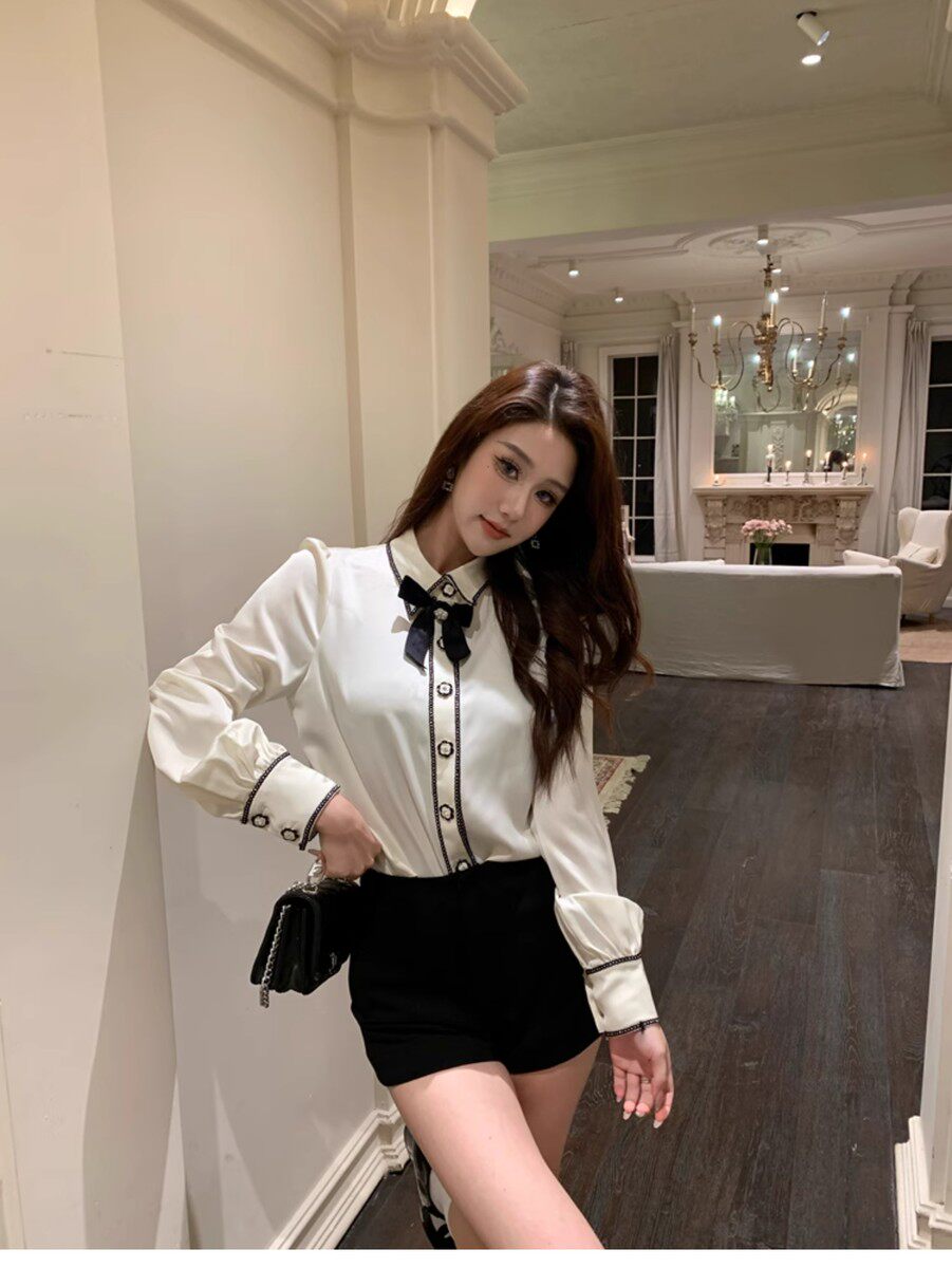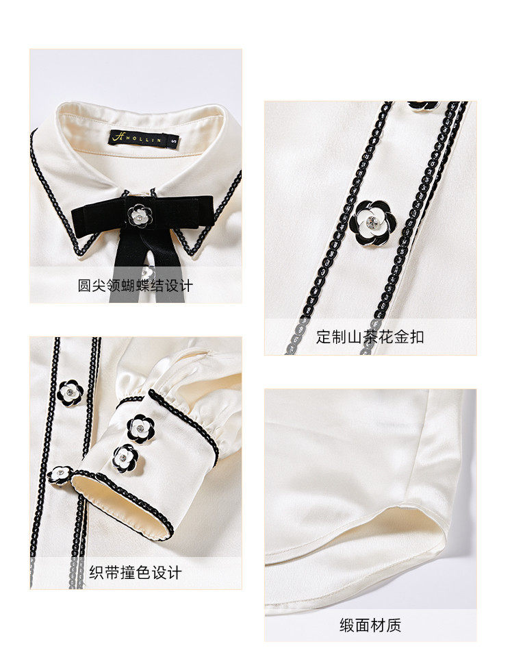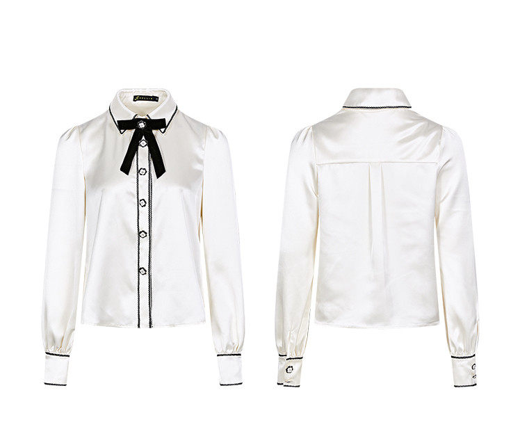 Hollin French-Style Bow Satin Shirt for Women, Spring and Autumn 2025 New Model, High-End Light Luxury Long-Sleeve Base Shirt