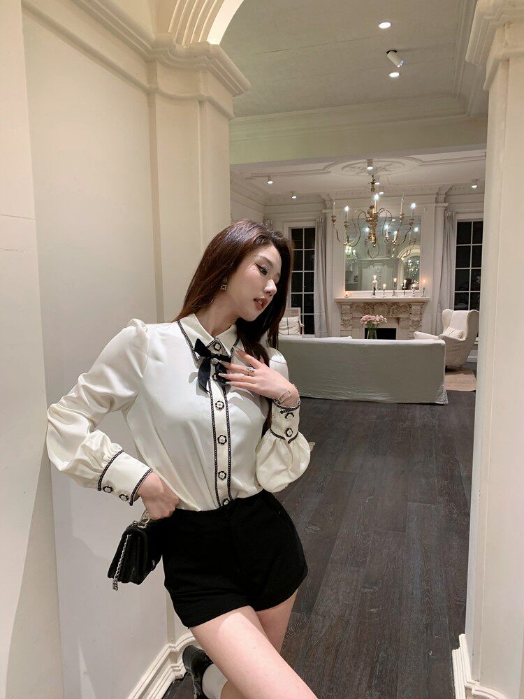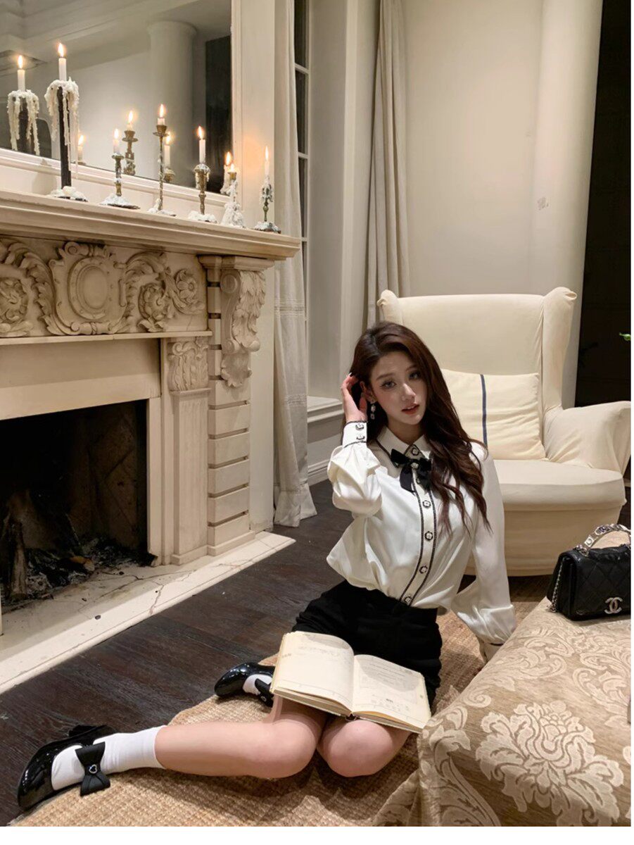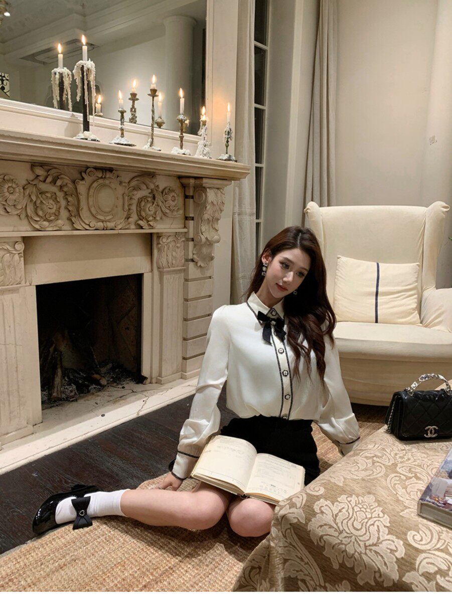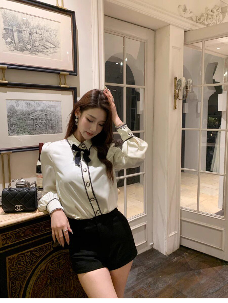 Hollin French-Style Bow Satin Shirt for Women, Spring and Autumn 2025 New Model, High-End Light Luxury Long-Sleeve Base Shirt