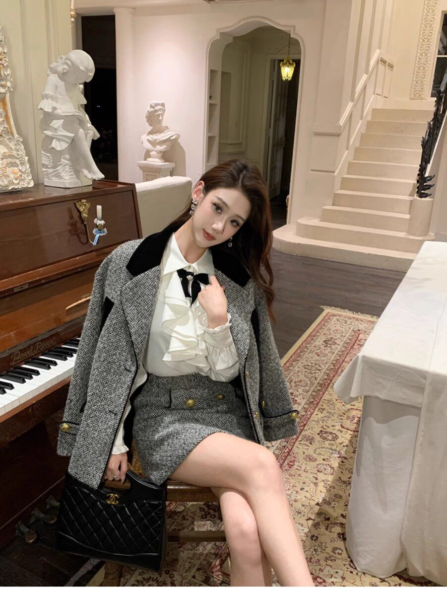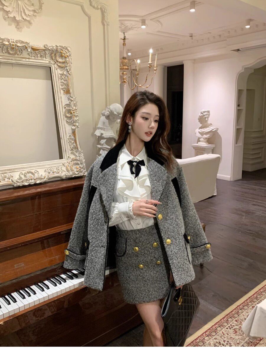 Hollinna Tweed-Style Suit Dress for Women, 2025 Autumn and Winter Collection, Complete Set for Petite Figures, High-End Two-Piece Set