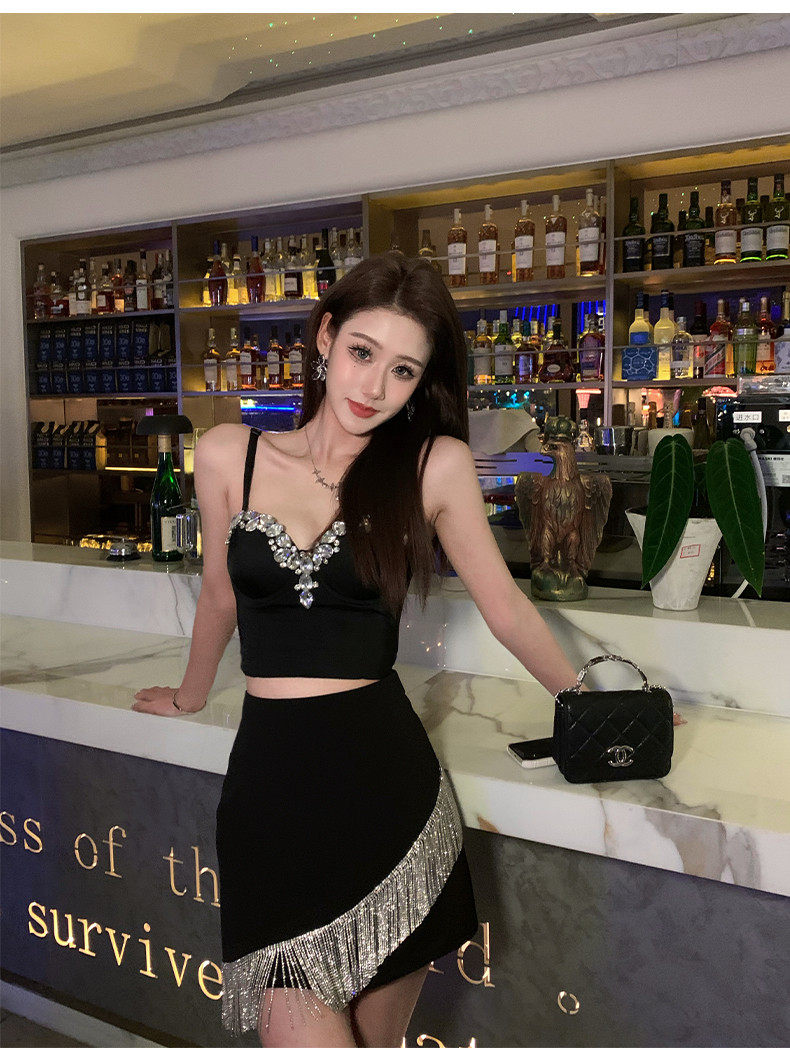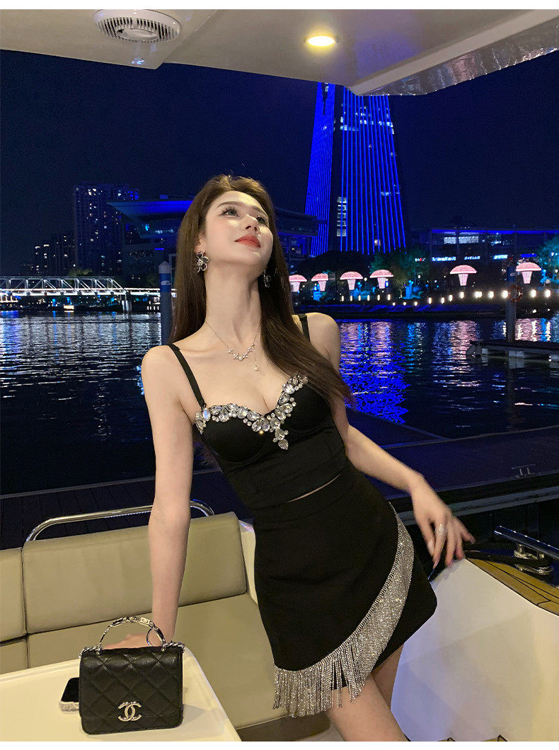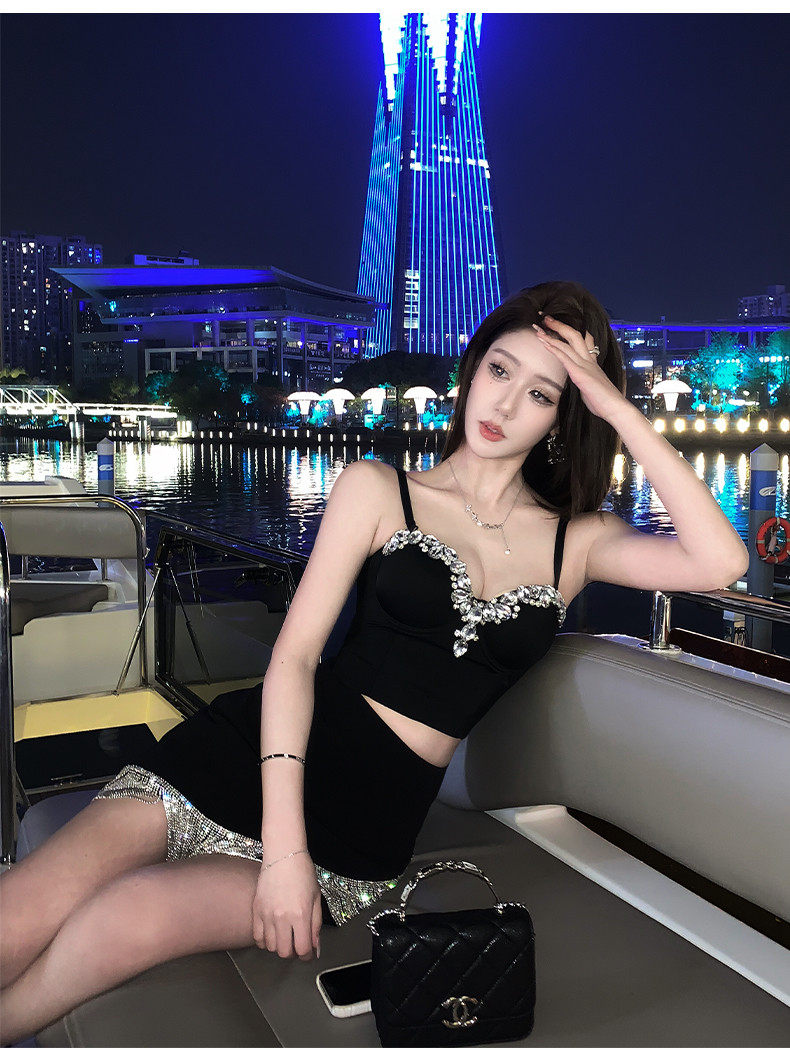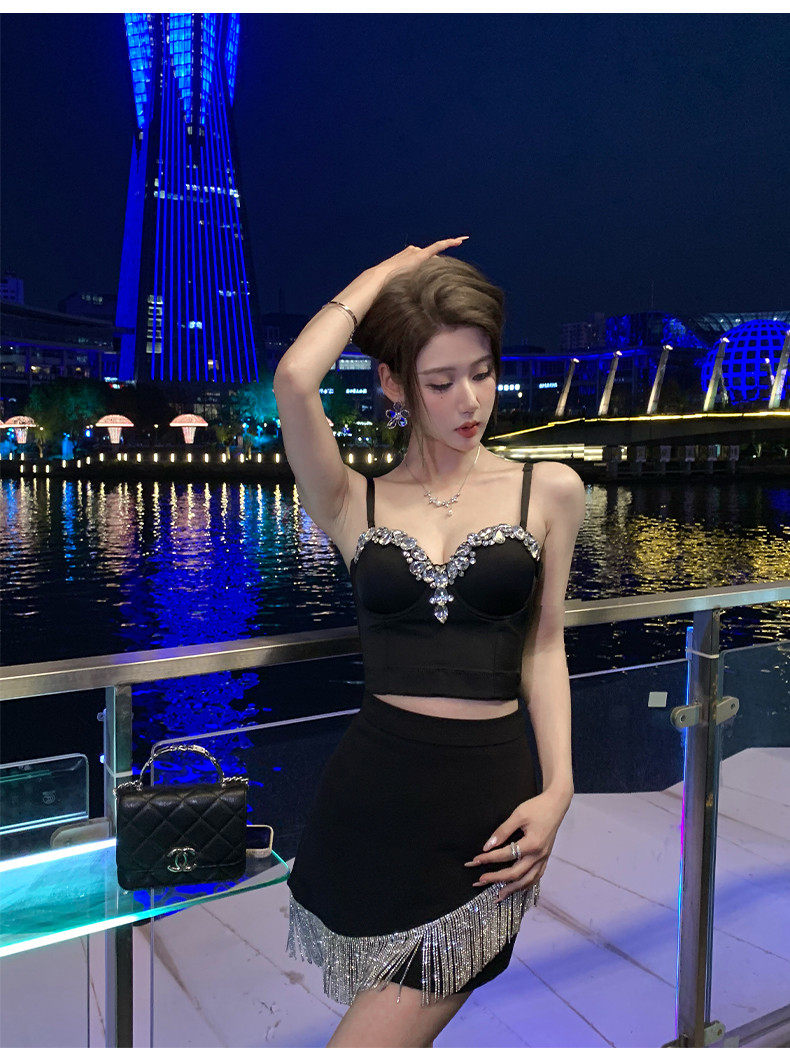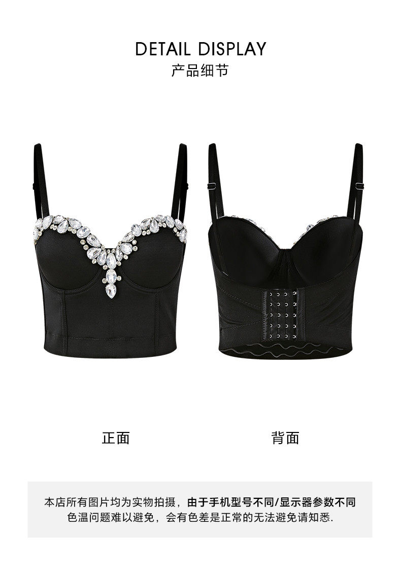 Hollin Handmade Rhinestone Strapless Tube Top for Women, with Chest Pads, High-End, Not Vulgar, Dopamine Fashion