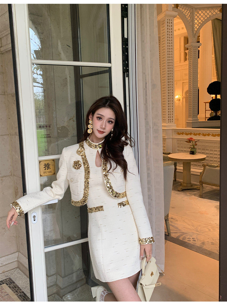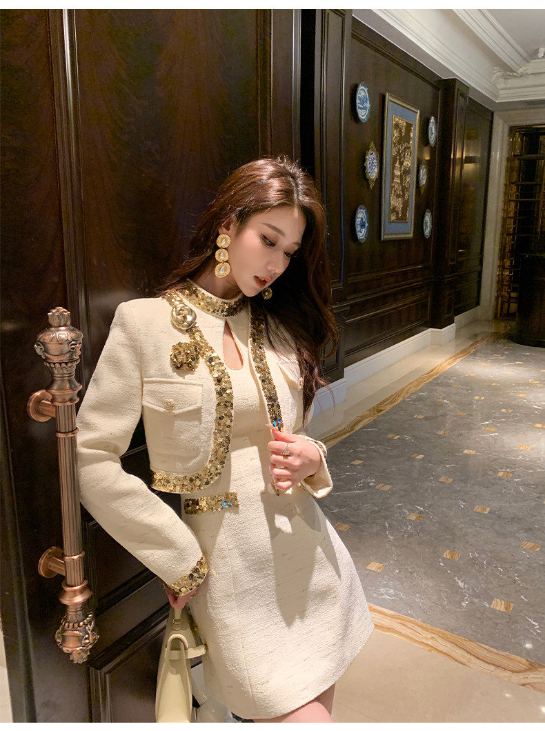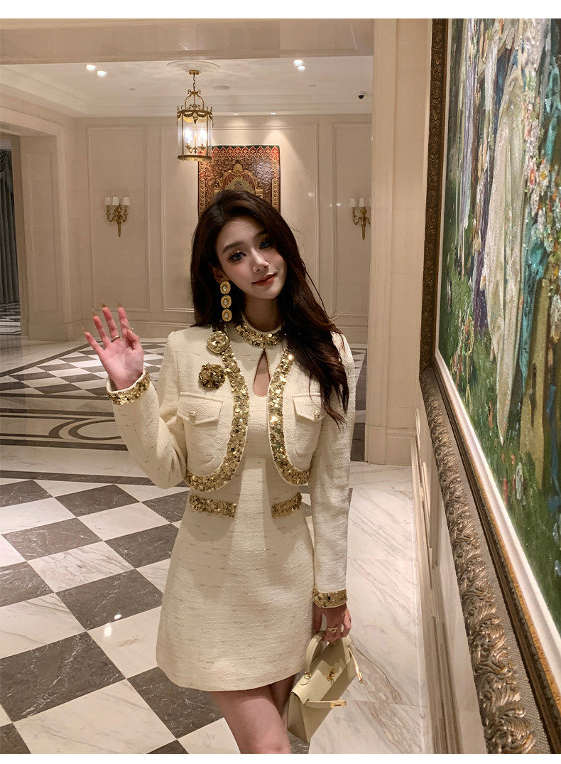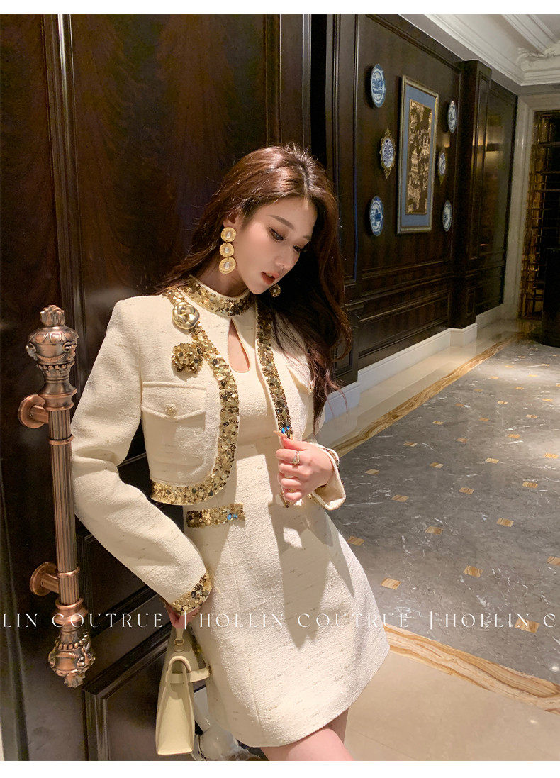Hollin Rich Girl Style Dress Set for Women, Spring and Autumn 2025 New Model, Light Luxury and High-End Two-Piece Set